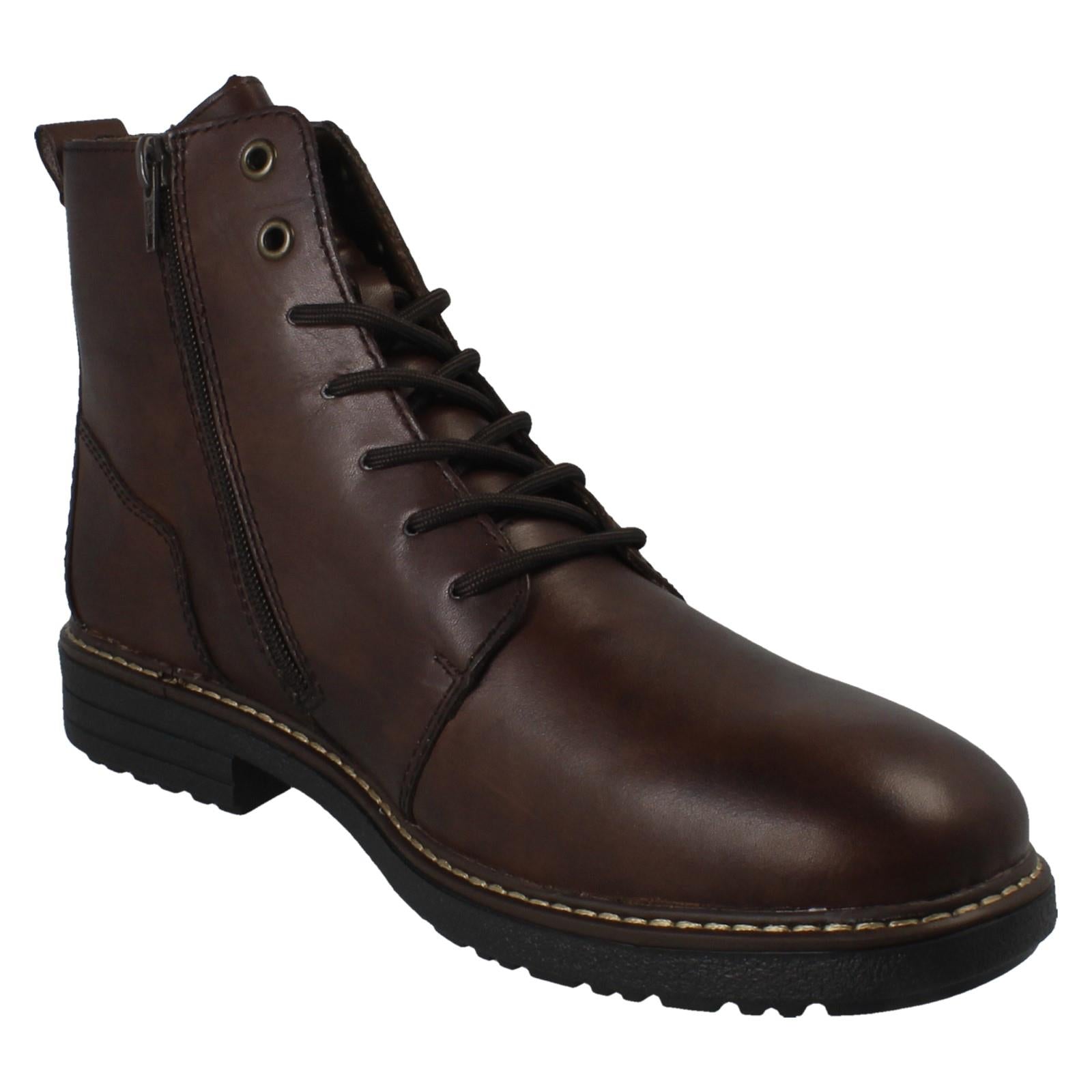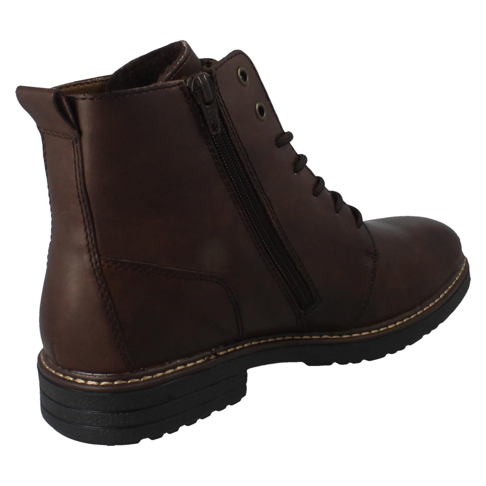 Rieker Combat Boots equip your everyday adventures. Zip up these fleece-lined, R-Tex ankle boots, crafted with a leather upper and textile lining, and conquer damp days without a second thought. The robust synthetic sole grounds your stride. Forget faffing with laces; just pull the zip and step into enduring comfort and warmth. These boots battle the weather, so you don't have to.