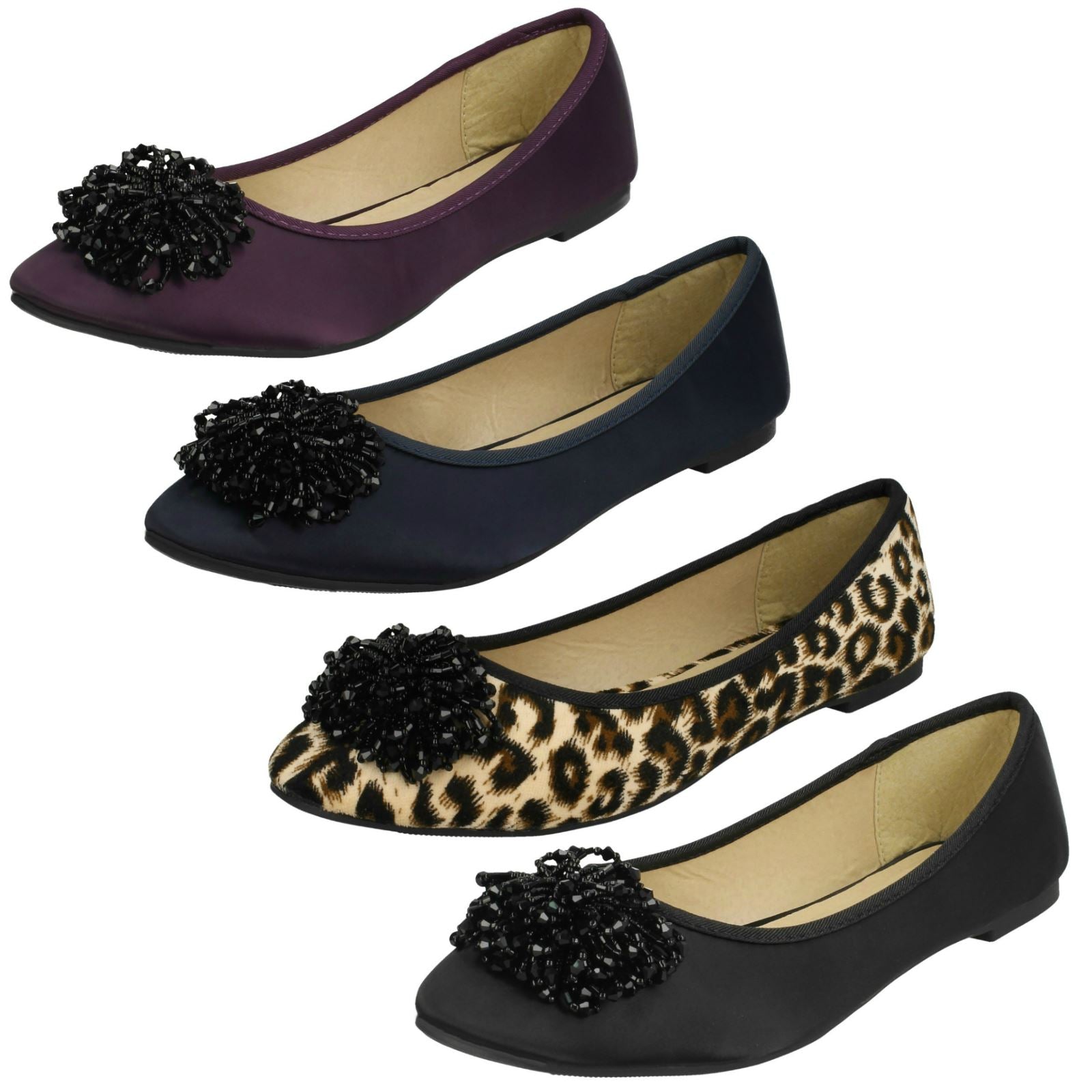 Glide through your day in absolute style with these SPOTON Ladies Casual Ballerinas. This flat is your secret weapon for effortless elegance, transforming any outfit from drab to dazzling. The luxurious satin upper and delicate beaded ruffle vamp ensure you don't just walk—you *float*. Slip them on and own every room.