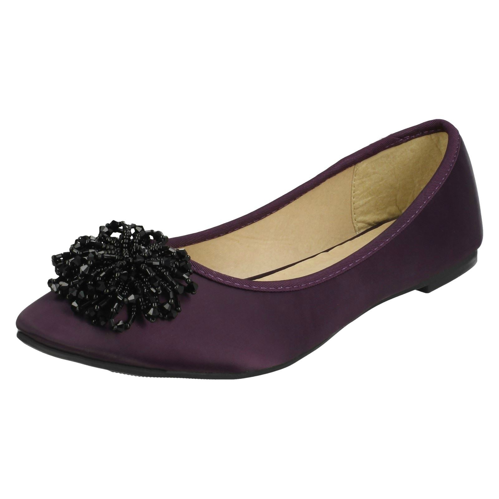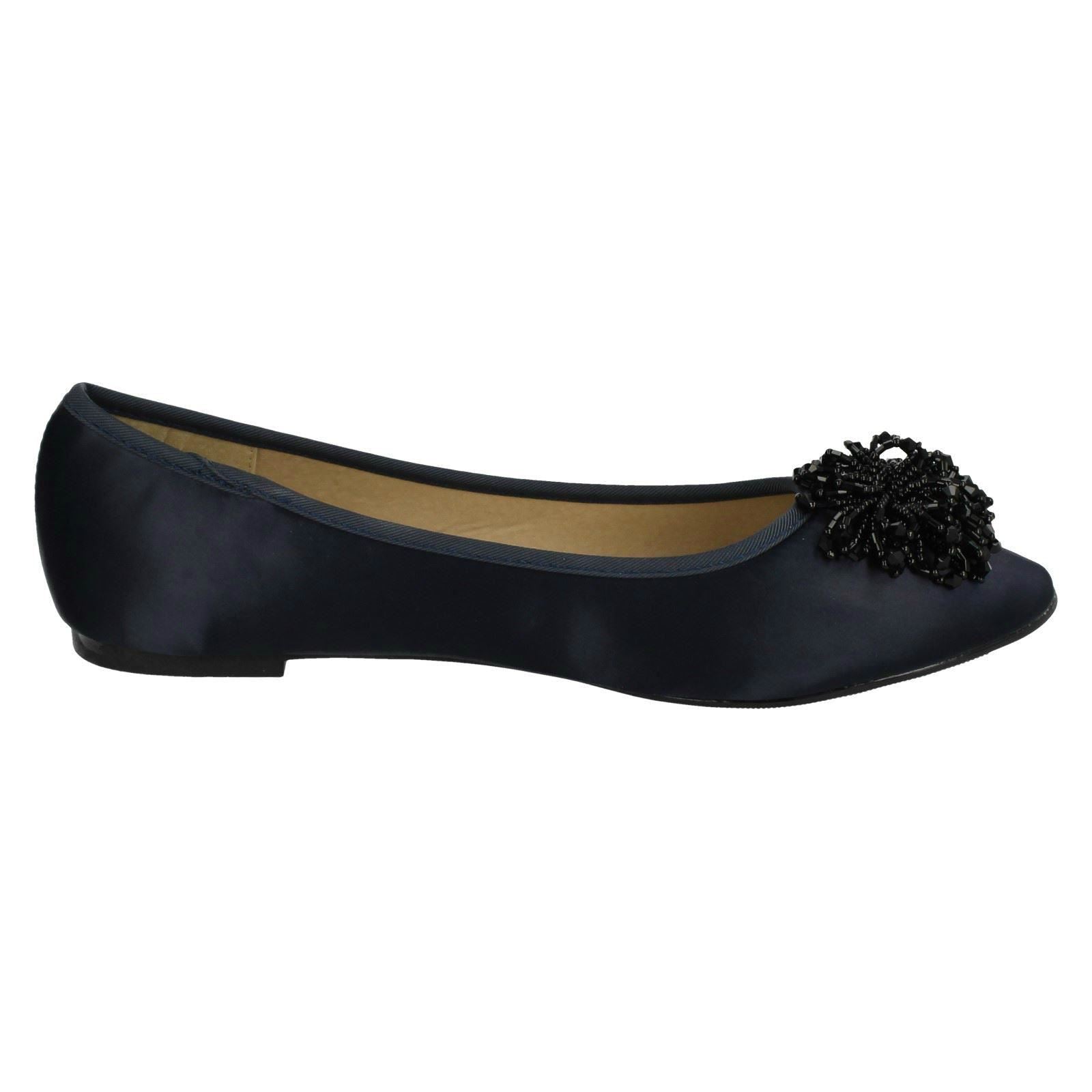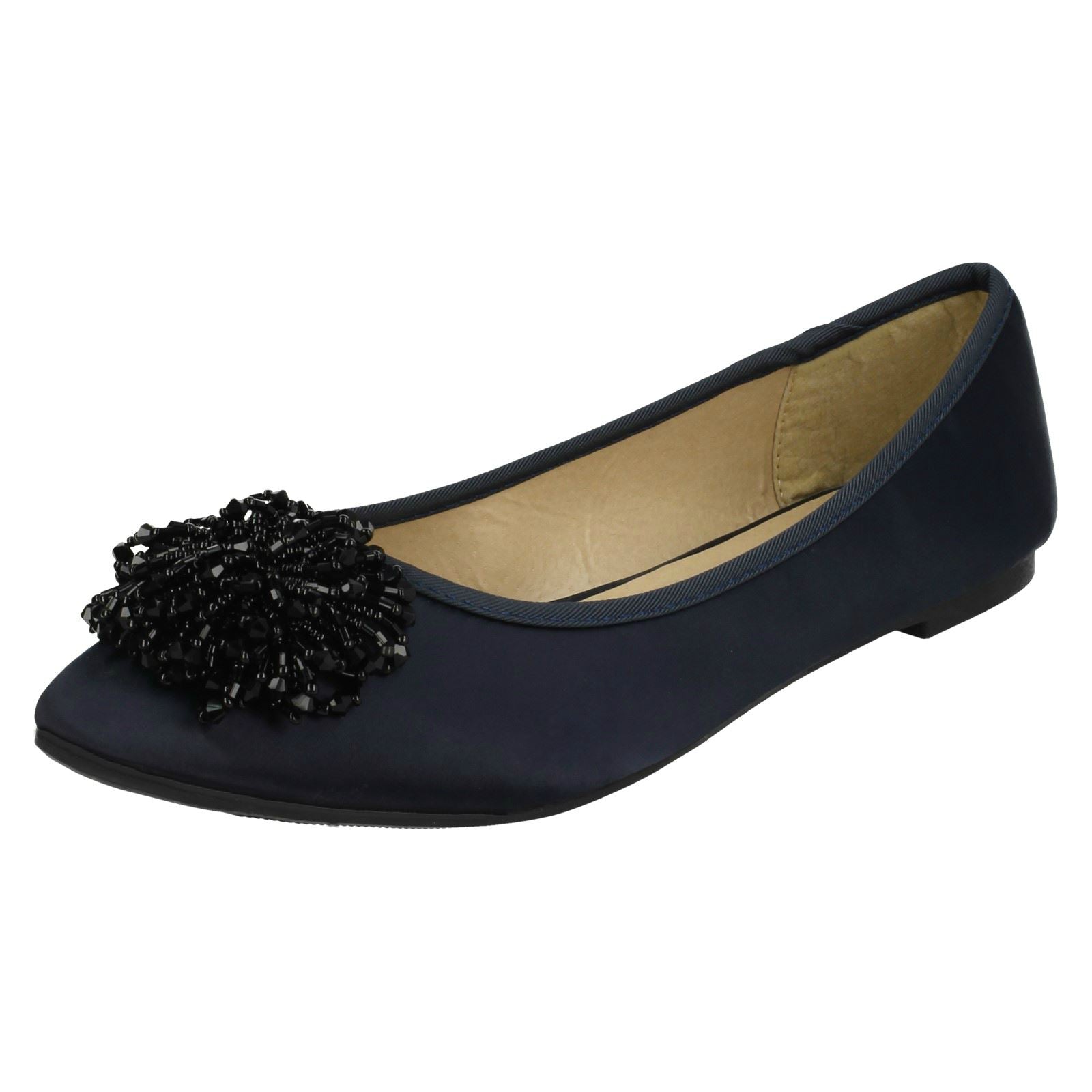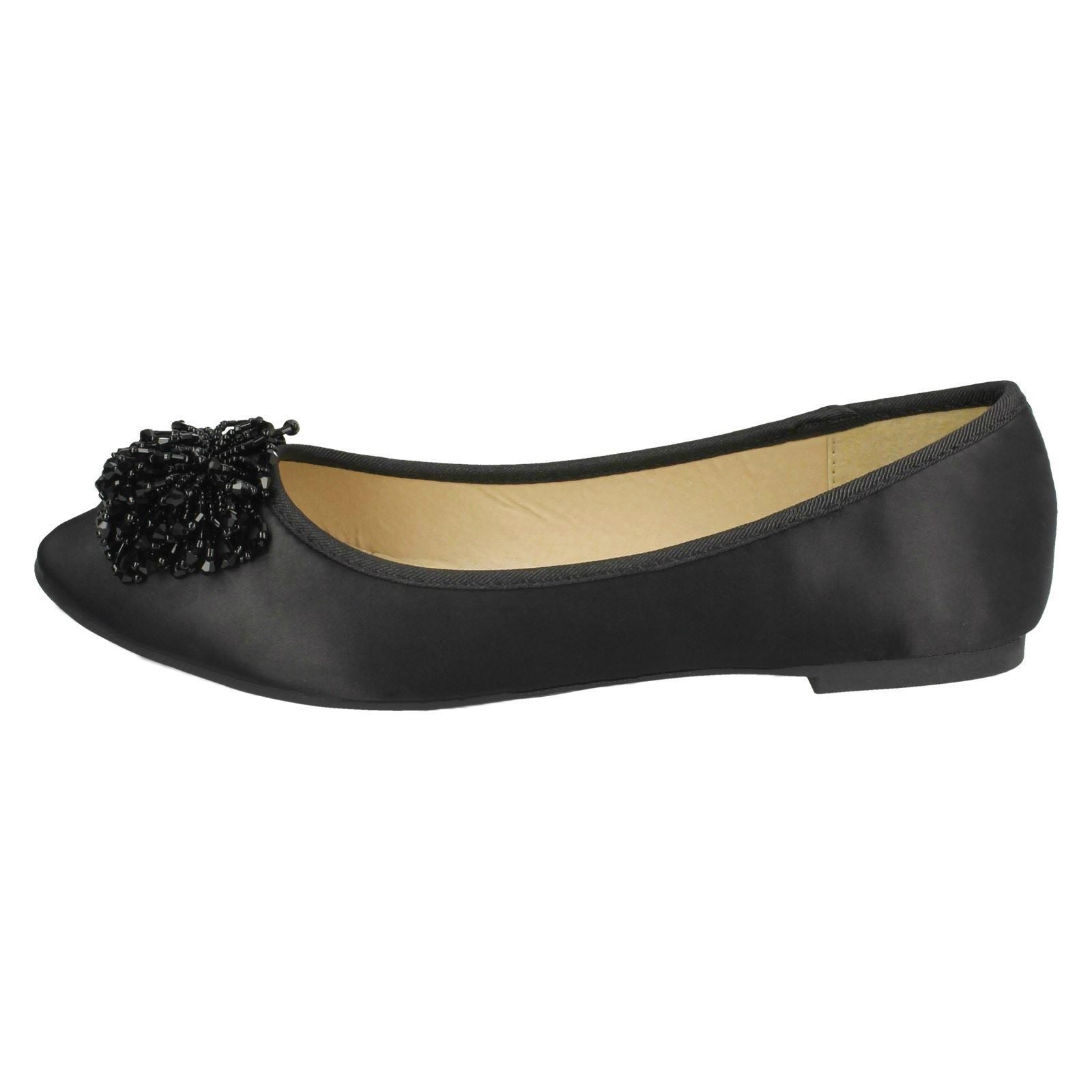 Ladies Spot On Beaded Ruffle Vamp Flat Ballerina