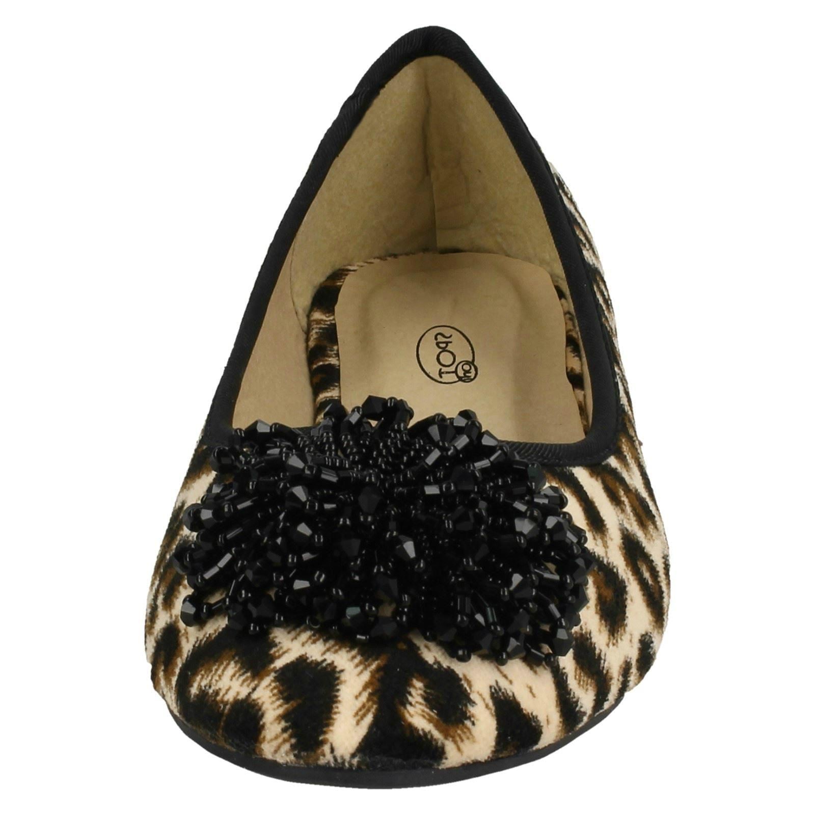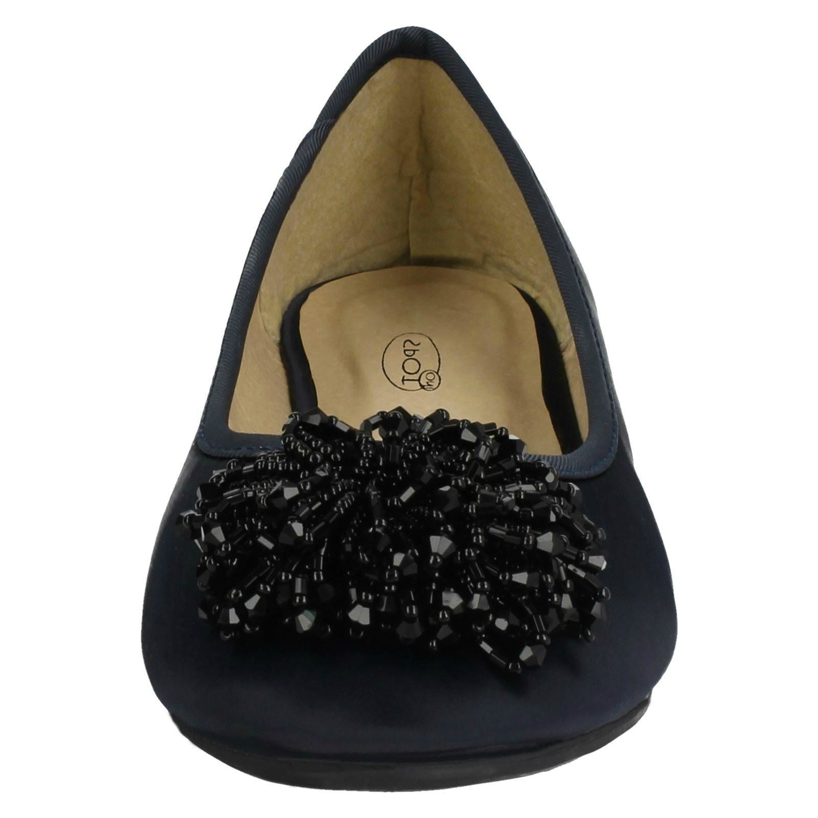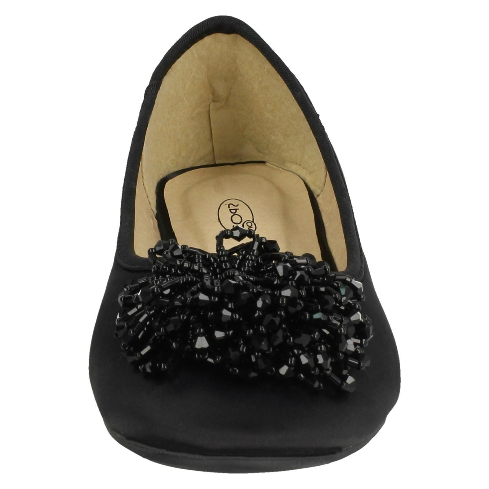 Ladies Spot On Beaded Ruffle Vamp Flat Ballerina