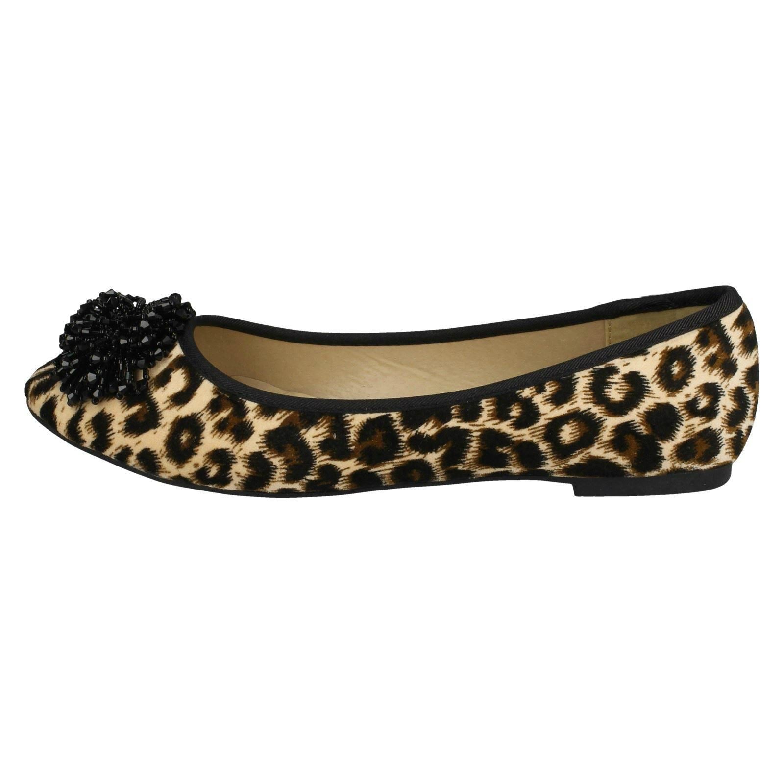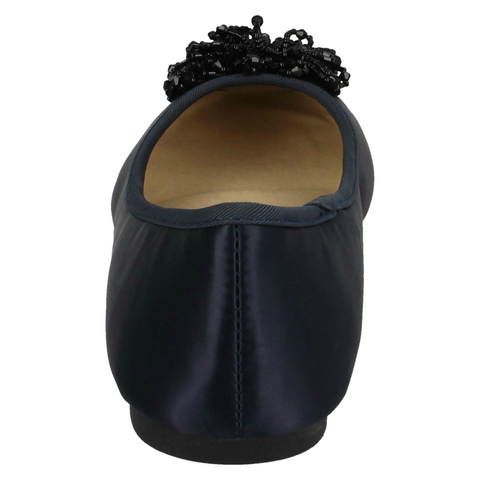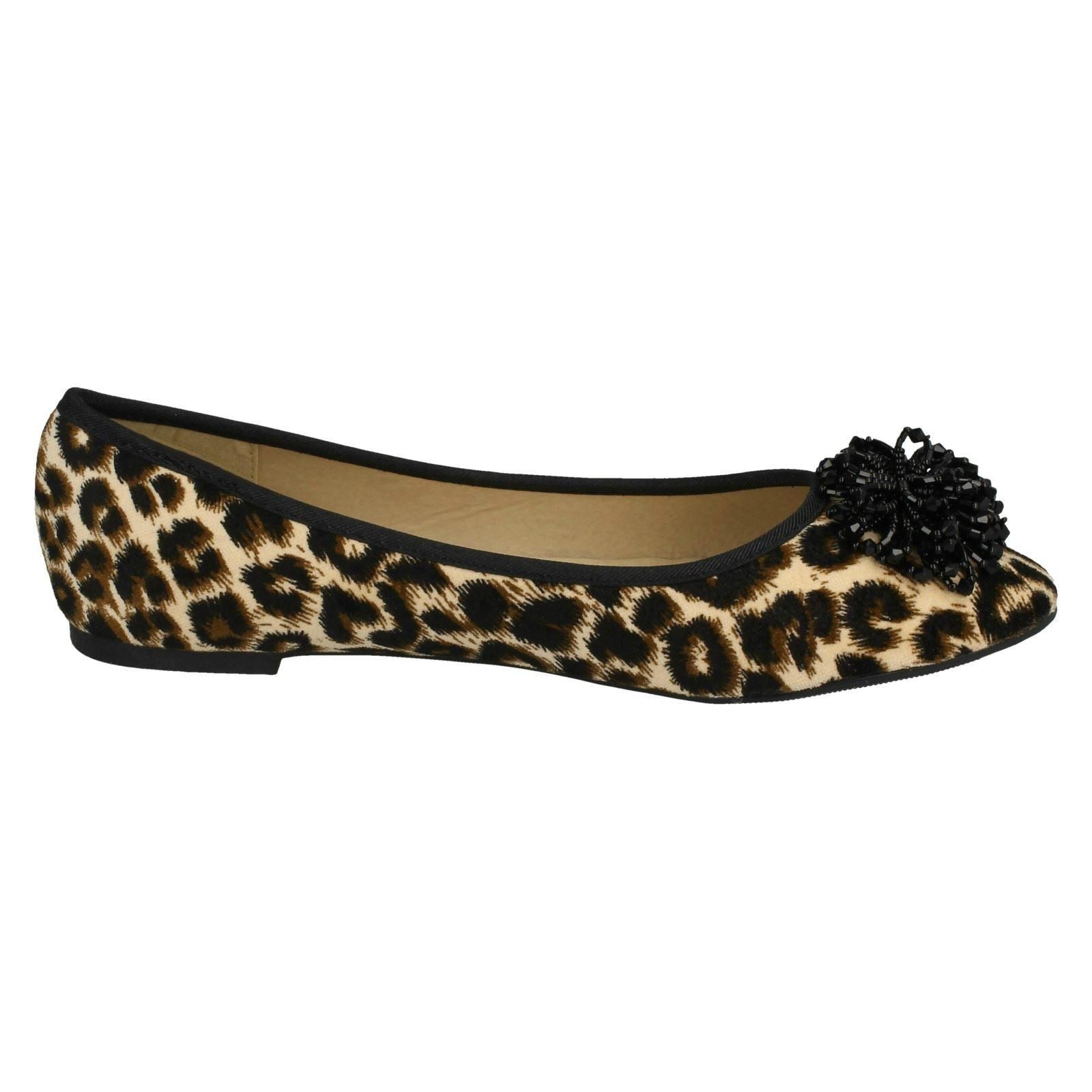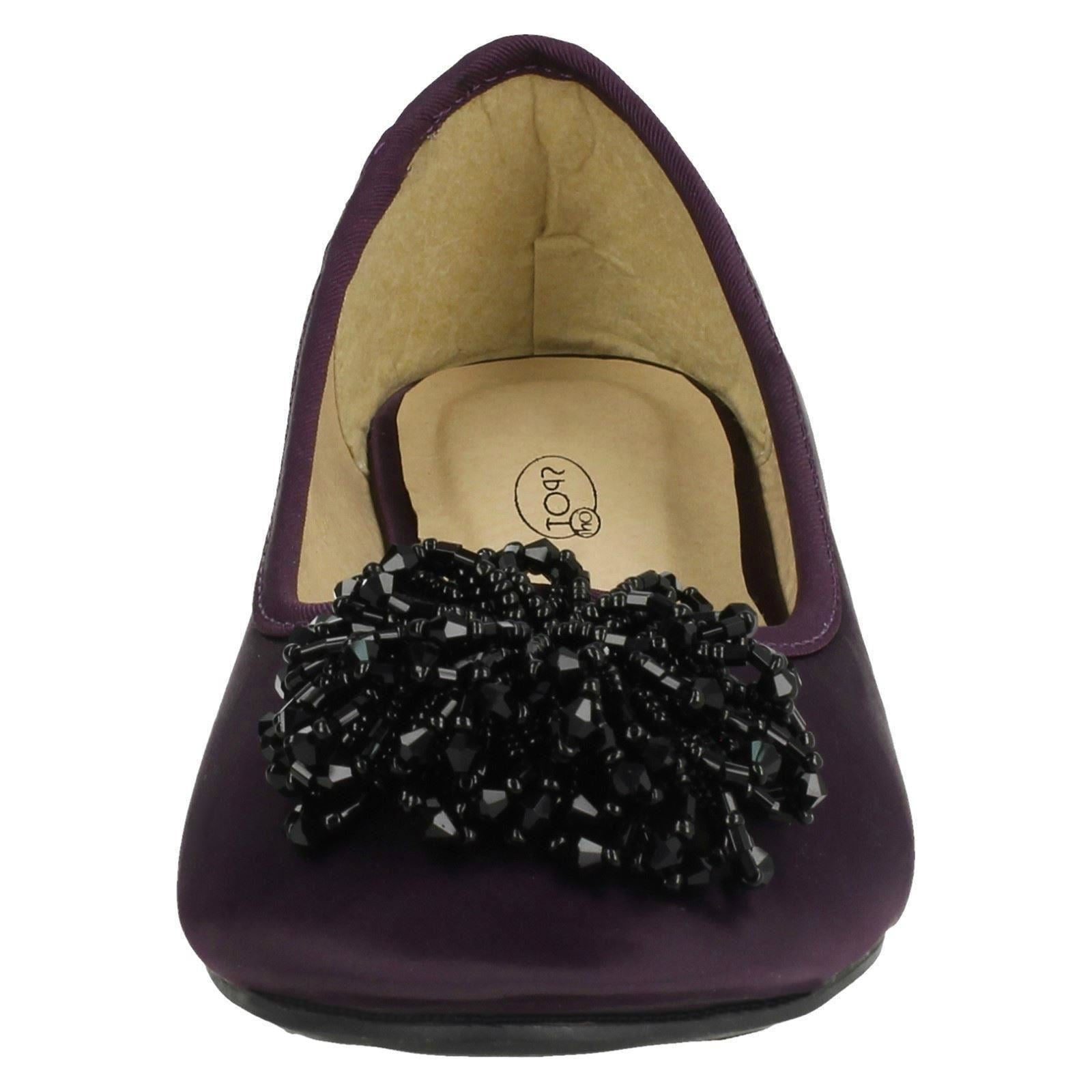 Ladies Spot On Beaded Ruffle Vamp Flat Ballerina