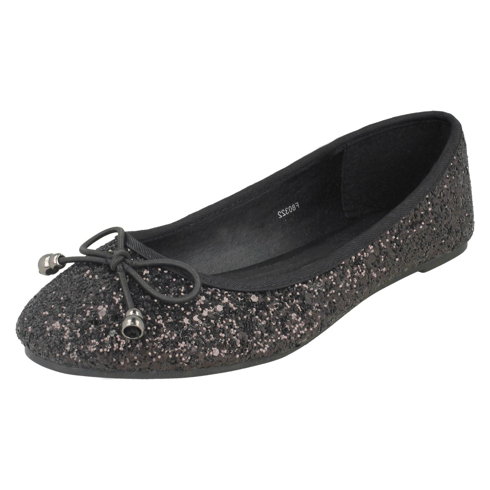 Ladies Spot On Glitter Ballerinas