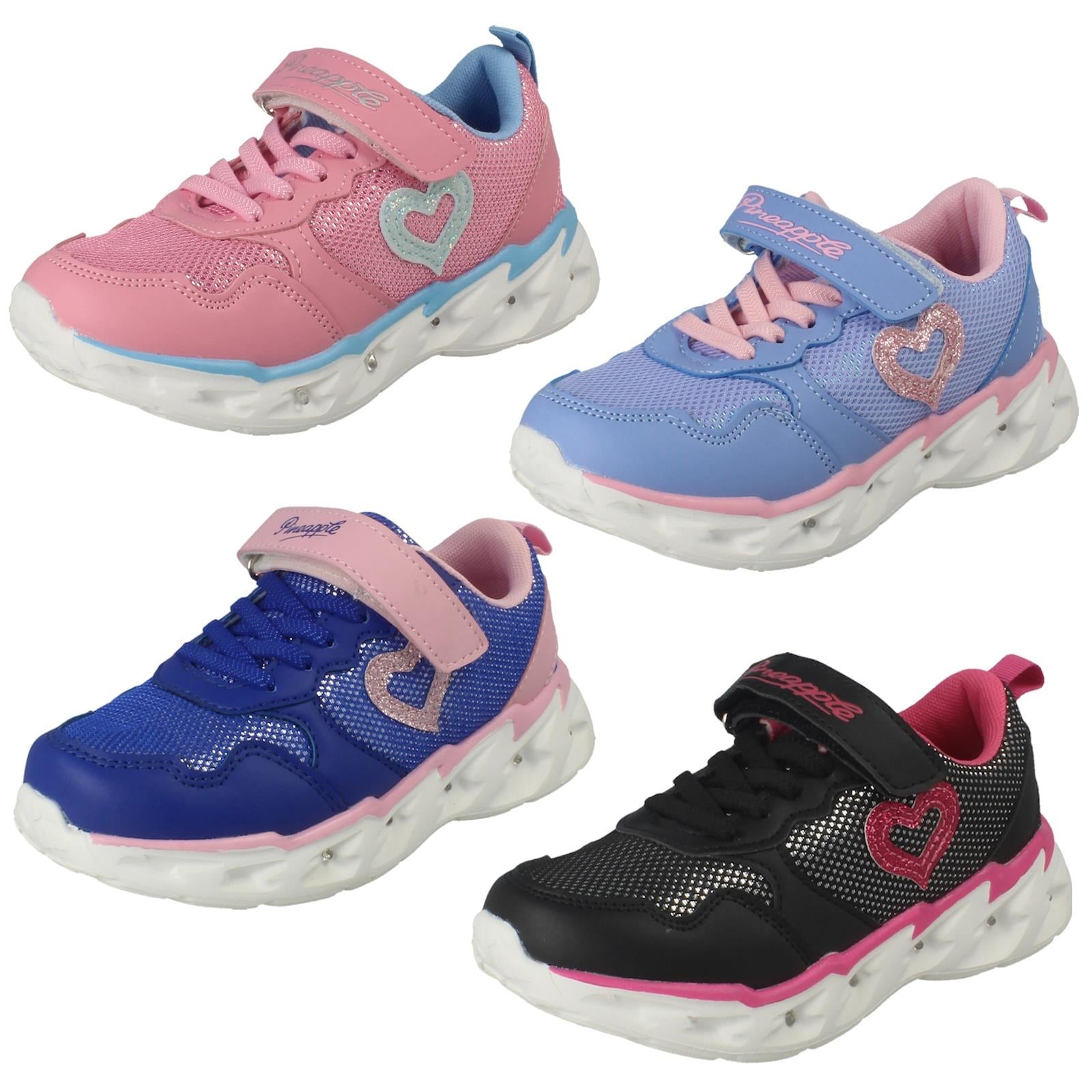 Pineapple girls' light up trainers transform everyday adventures into disco-ready fun! Watch her stride ignite with every step, feeling like a superstar. These casual shoes secure easily with hook and loop fastening, ready to spring into action. Say goodbye to dull footwear; hello to dazzling play and unbeatable comfort.