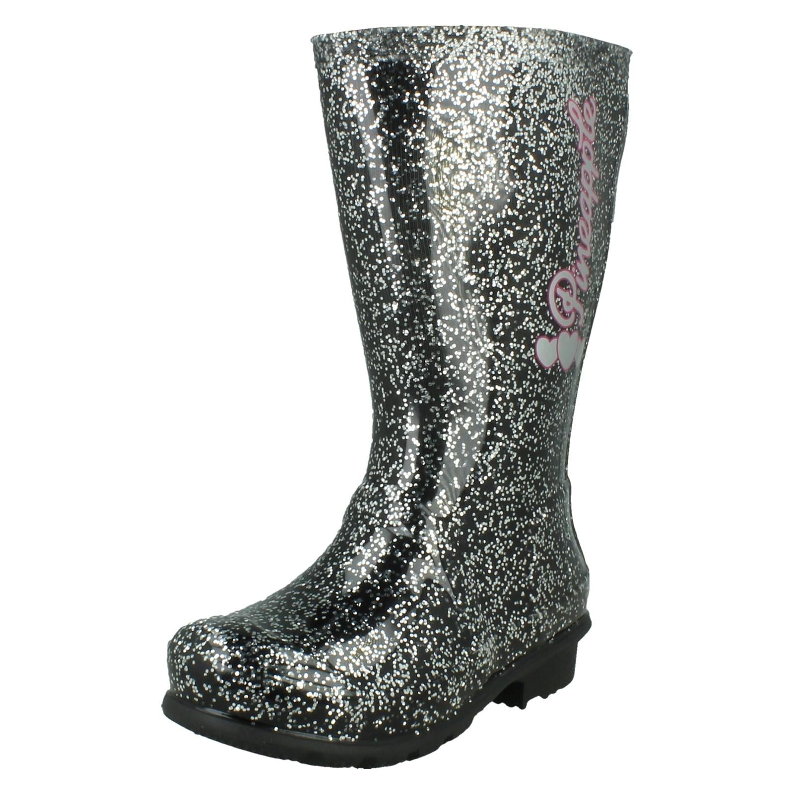 Girls Pineapple Wellington Boots With Glitter Detailing X1275