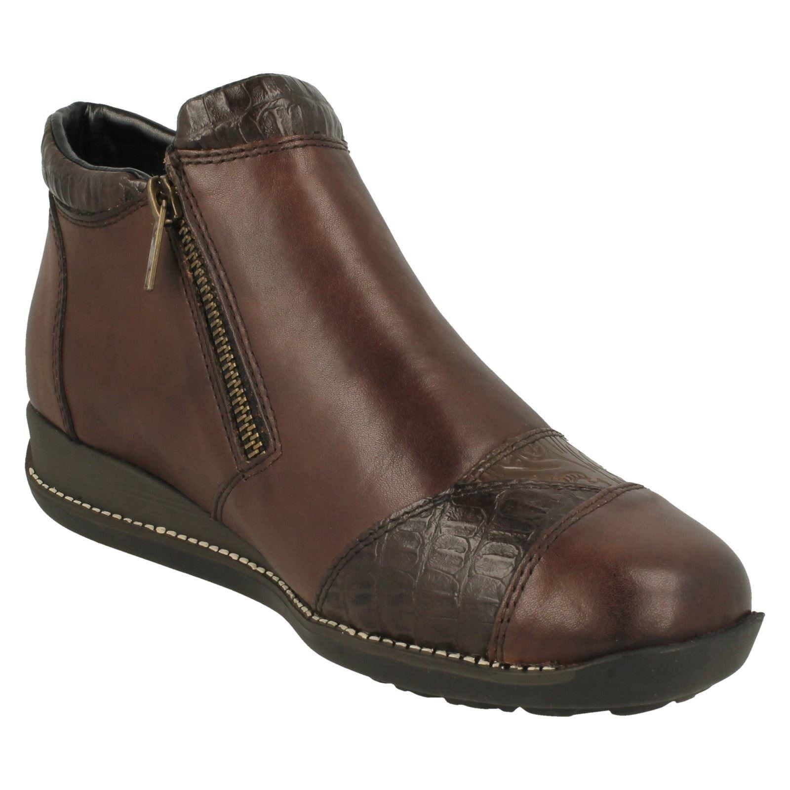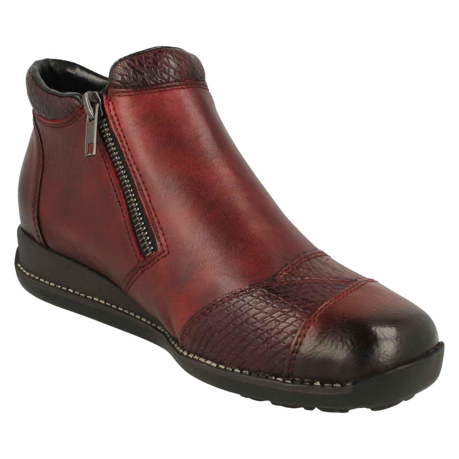Rieker delivers effortless style with these wedge-heeled ankle boots. Crafted from buttery leather, they banish dull dressing instantly. Zip into comfort, feeling the soft textile lining embrace your feet. The chic floral detail elevates your everyday look, proving you never have to sacrifice flair for blissful ease. Stroll confidently; these boots empower your every pavement adventure.