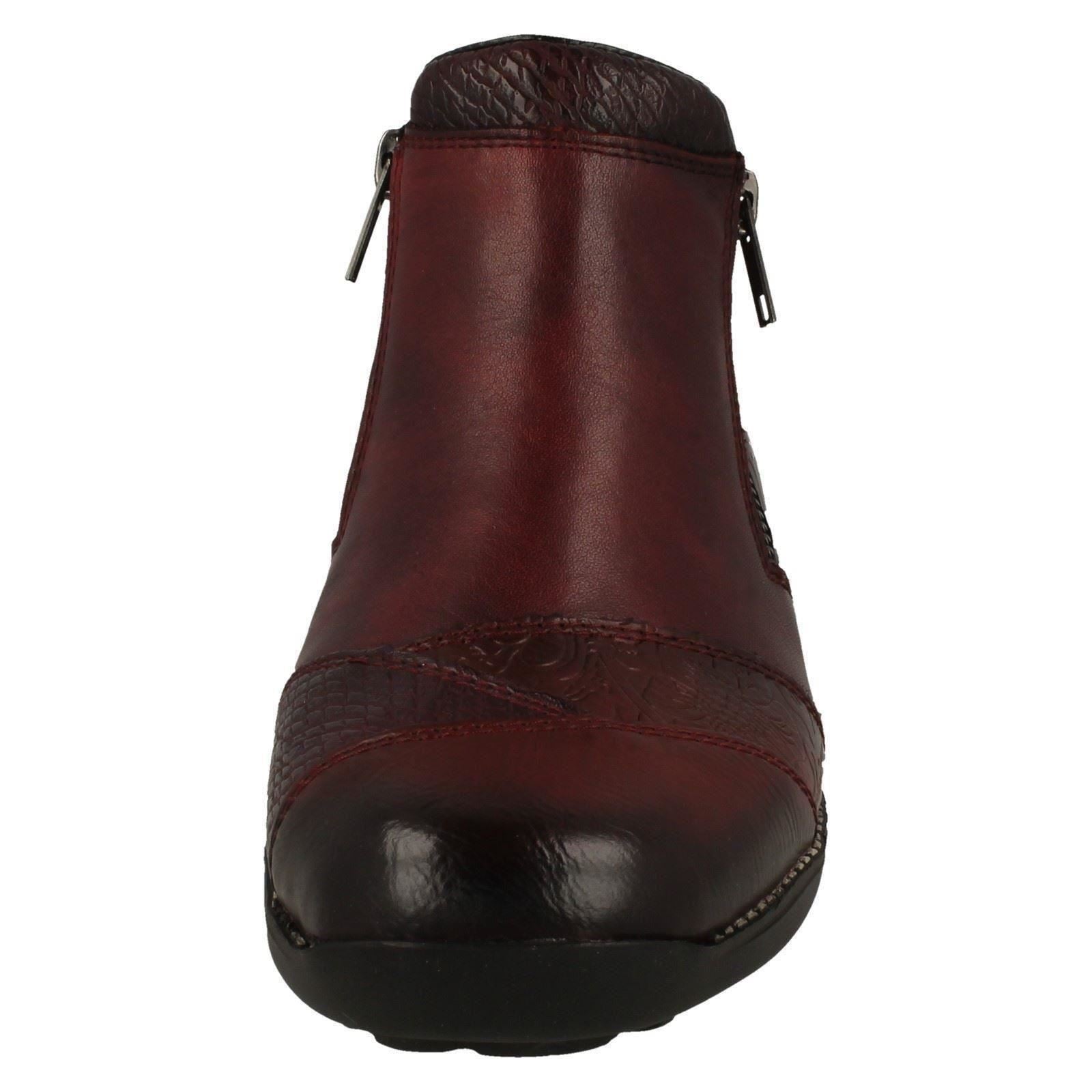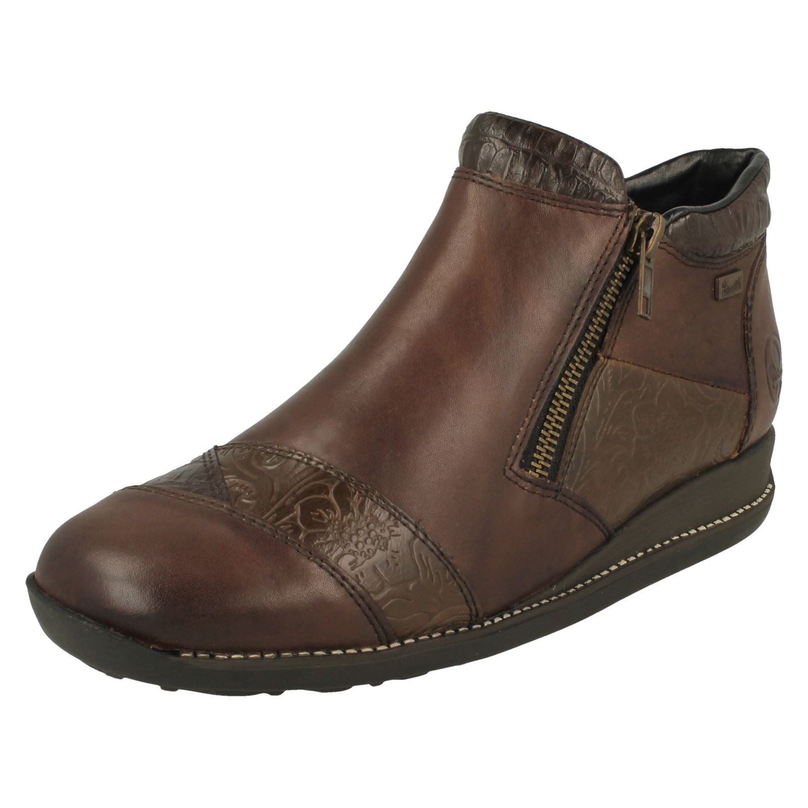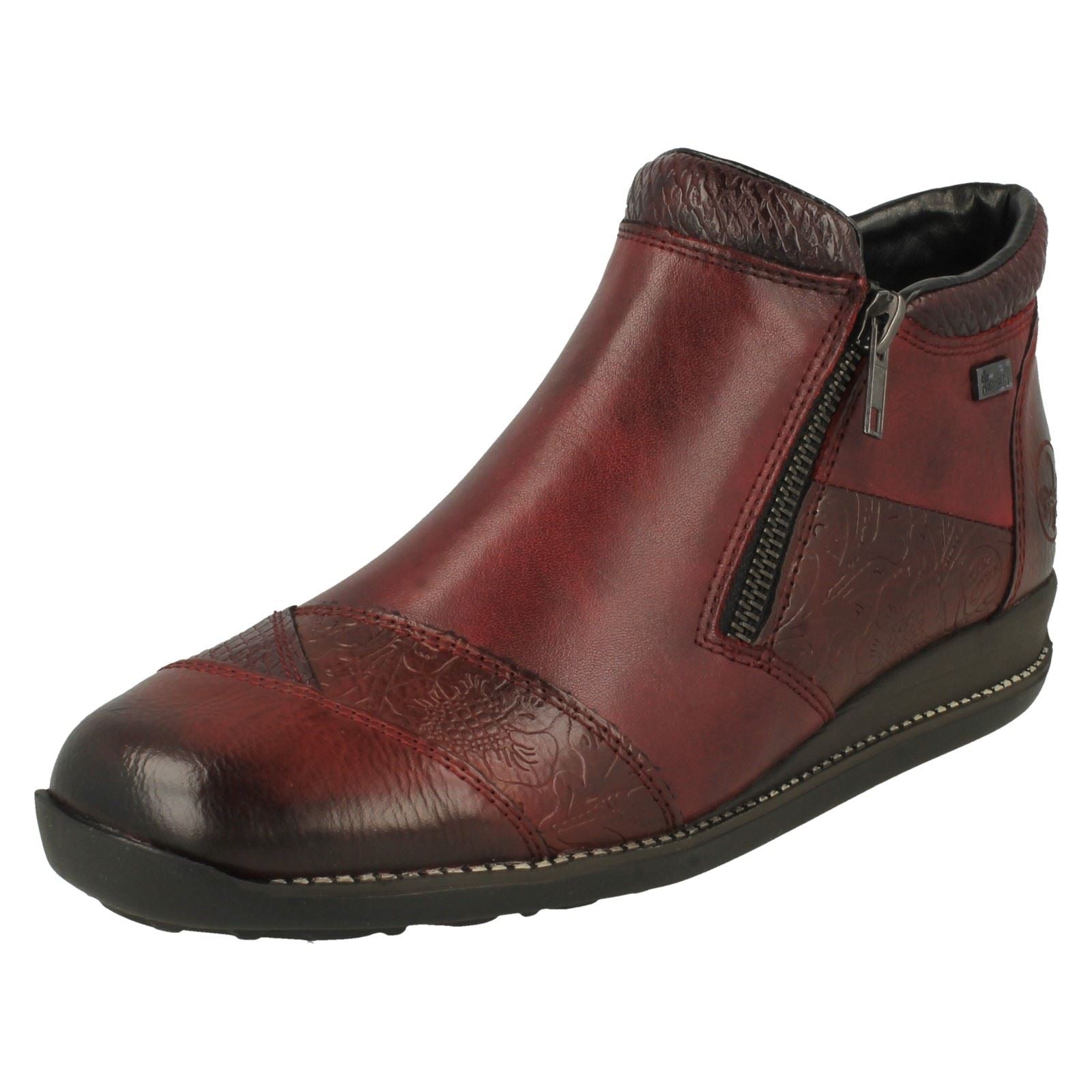 Ladies Rieker Floral Detailed Wedge Heeled Ankle Boots 44281
