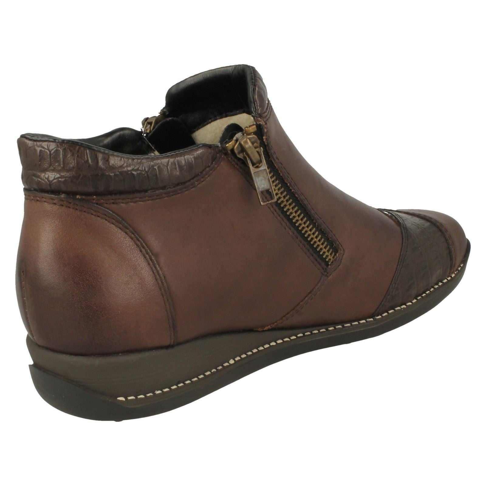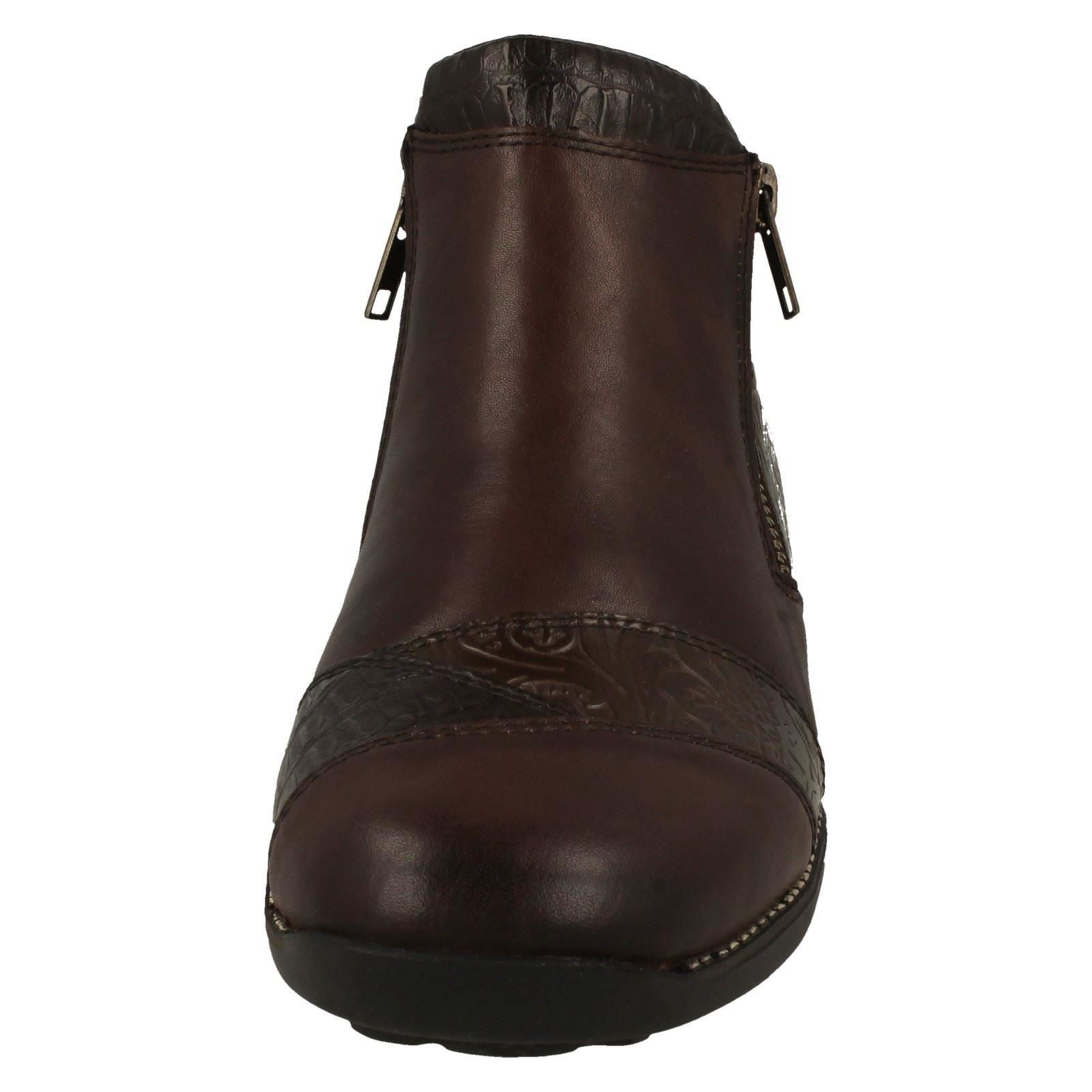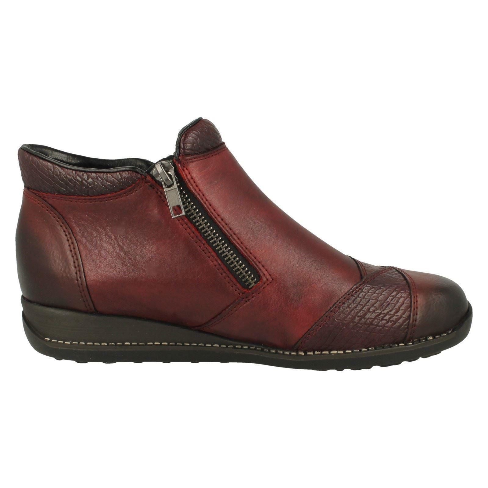 Ladies Rieker Floral Detailed Wedge Heeled Ankle Boots 44281