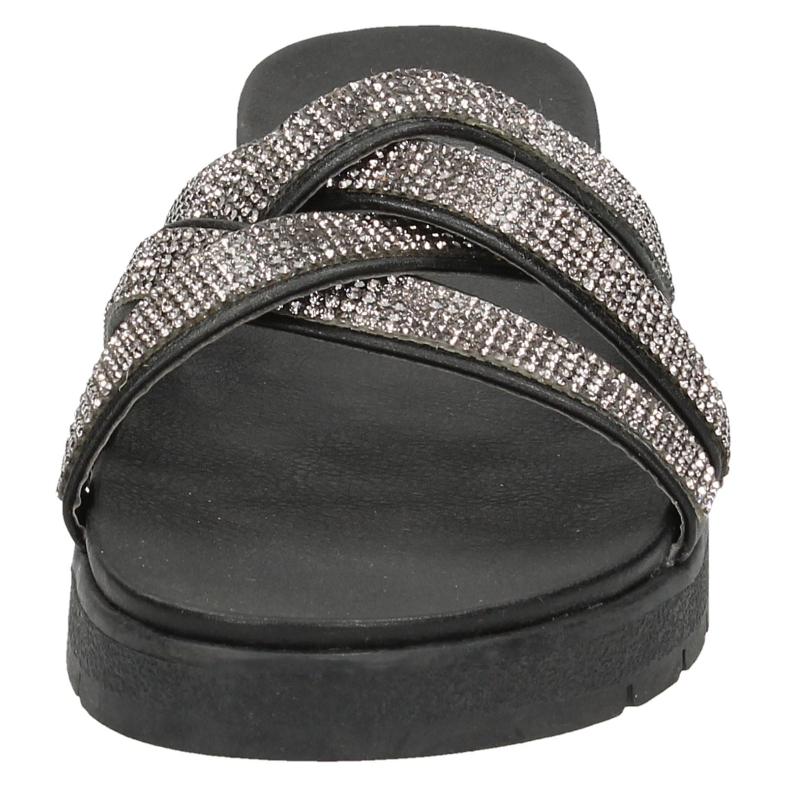 Savannah Ladies Flat Sole Cross Strap Mules elevate your summer style instantly. Slip into effortless glamour with these essential slip on sandals. The dazzling diamante design catches the light as you stroll, turning pavement into your personal catwalk. Crafted for comfort, feel weightless and fabulous from dawn till dusk. Perfect for every occasion where comfort meets captivating style.