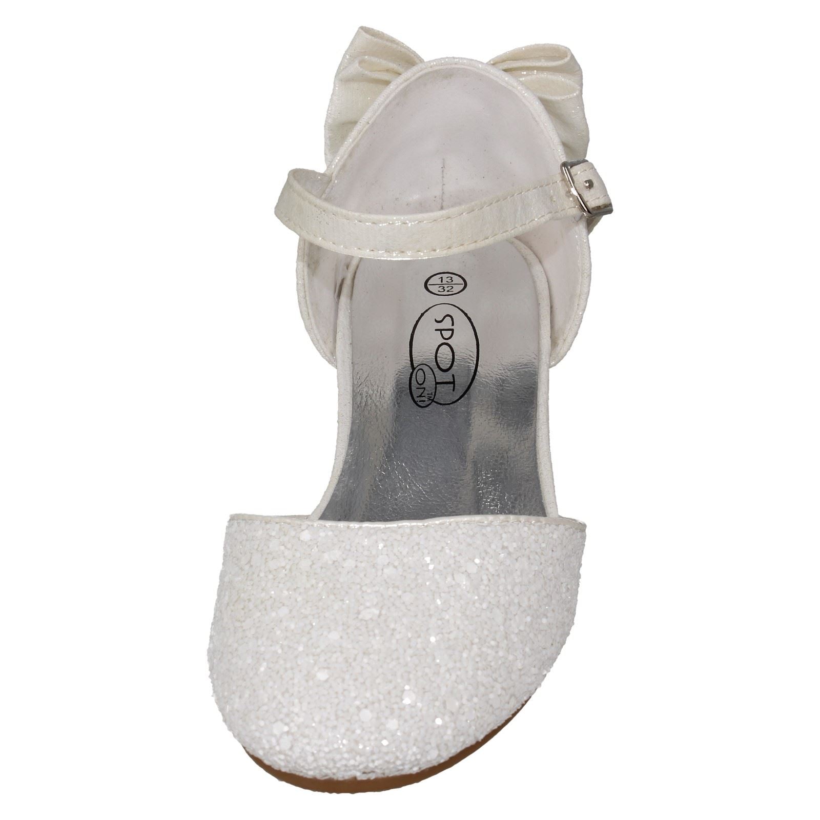 Spot On heels let her own the dance floor. Watch her dazzle in these ankle strap party shoes. The glitter upper catches every light, promising unforgettable fun. A simple buckle fastening secures her steps so she can twirl and celebrate without a wobble. Lined and soled for all-night comfort, these heels elevate her party look from lovely to legendary.