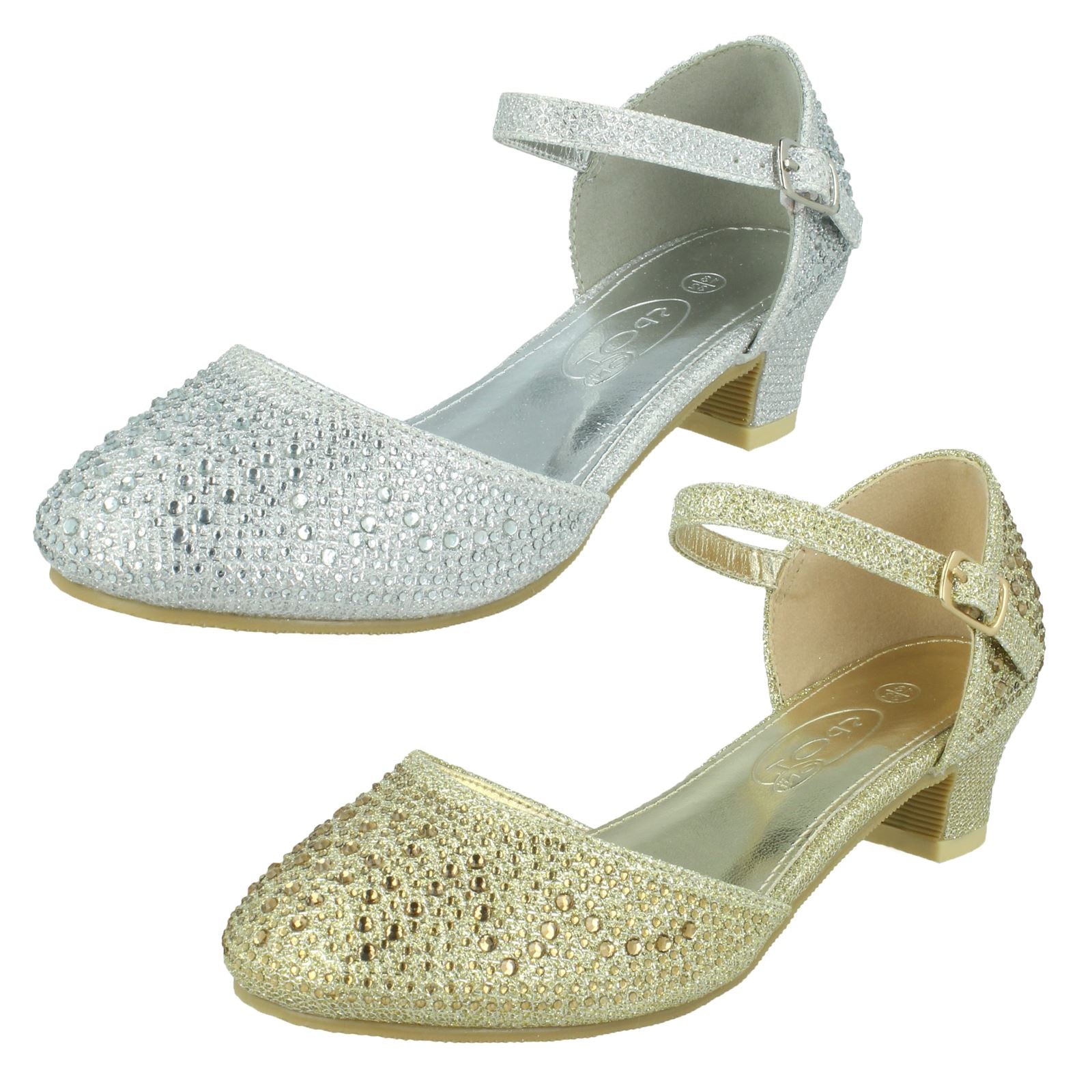 Girls Spot On Buckle Ankle Strap Glitter Shoes H3084