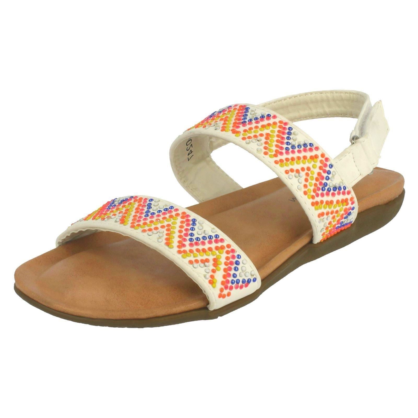 Girls Spot On Flat Aztec Slingback Sandals