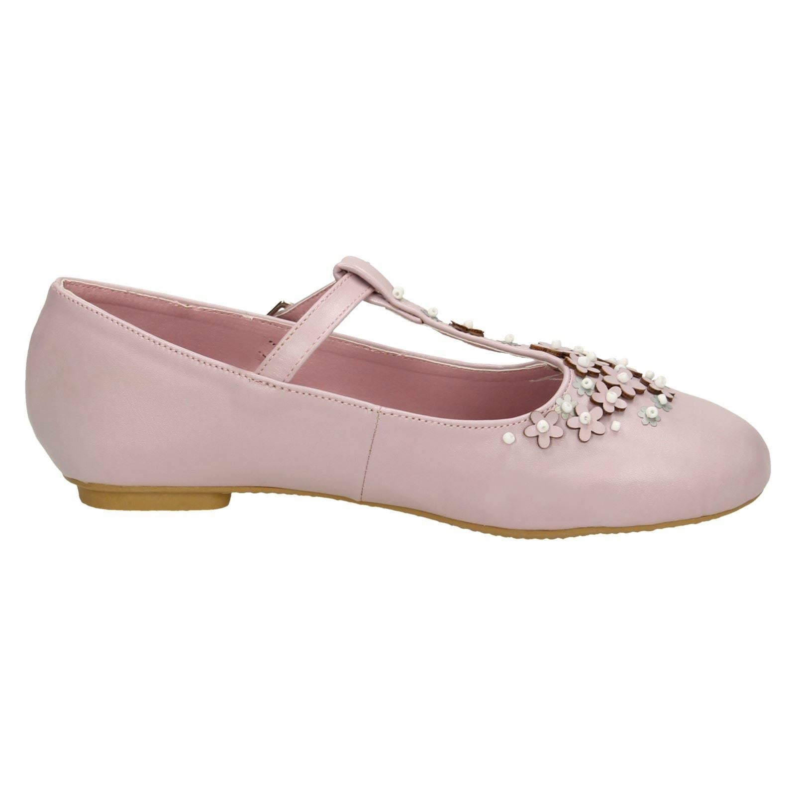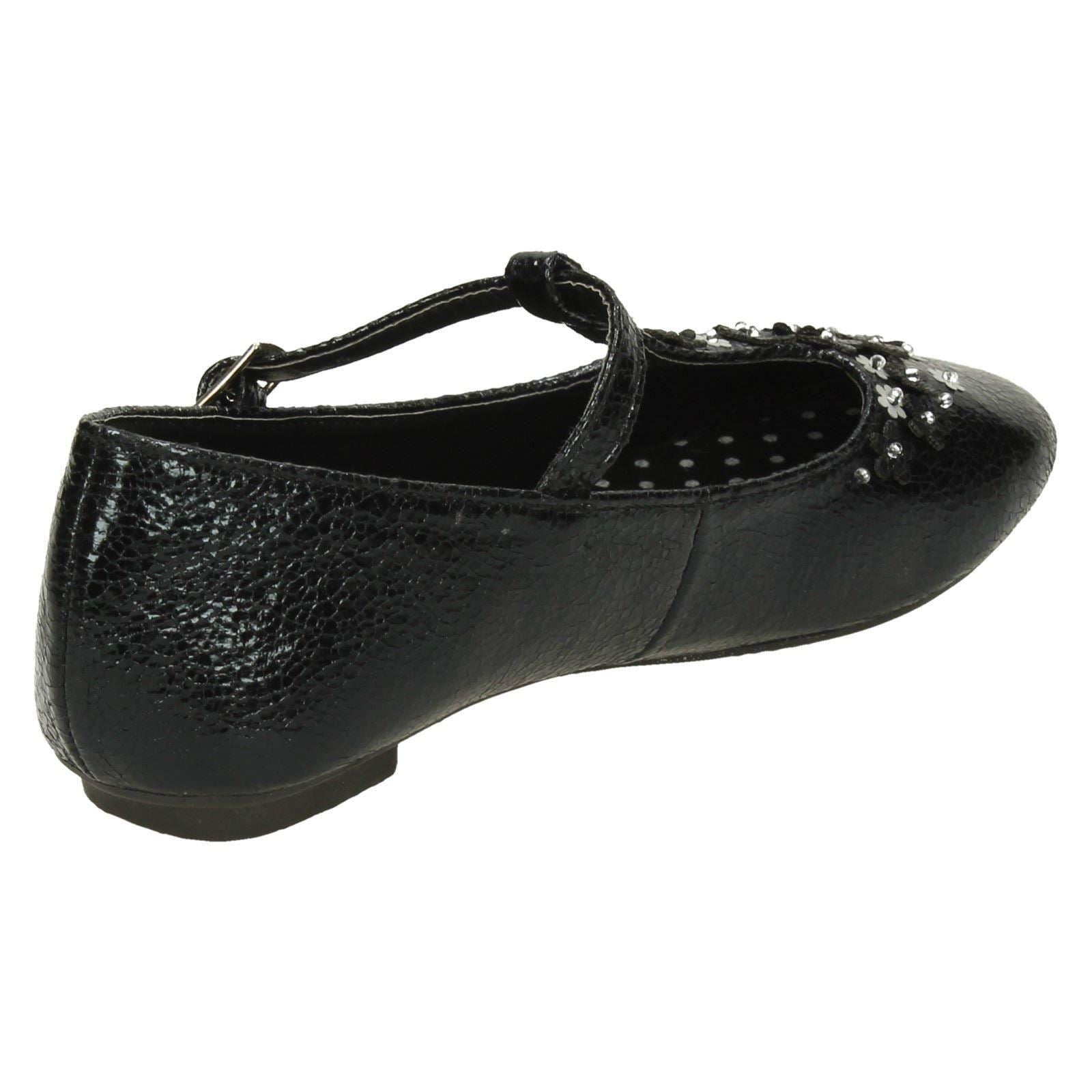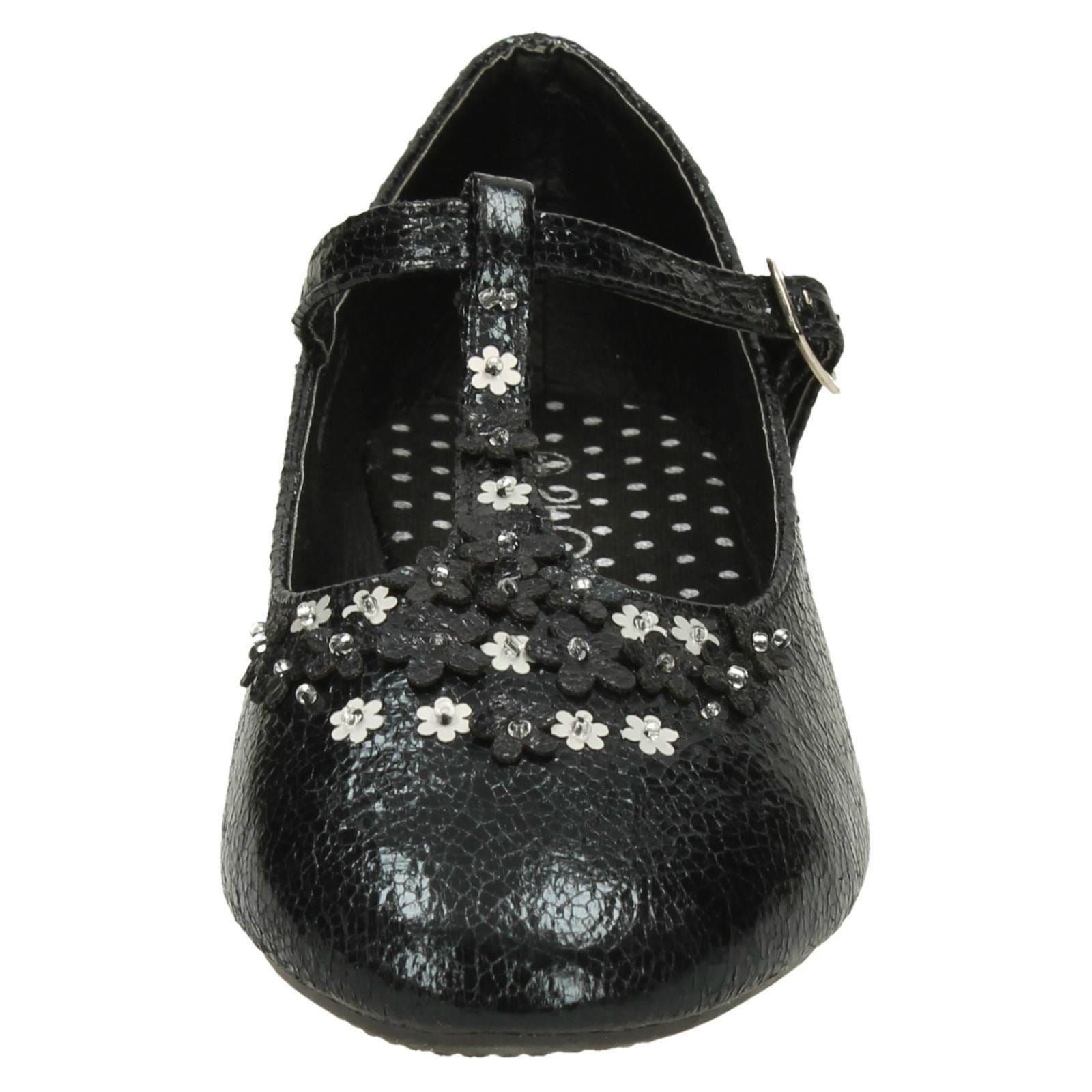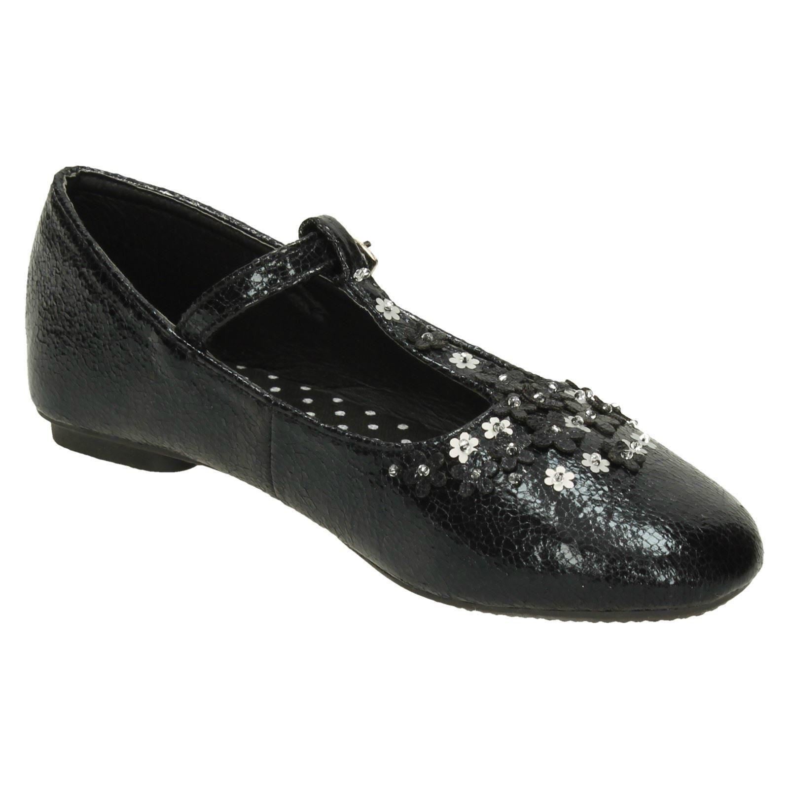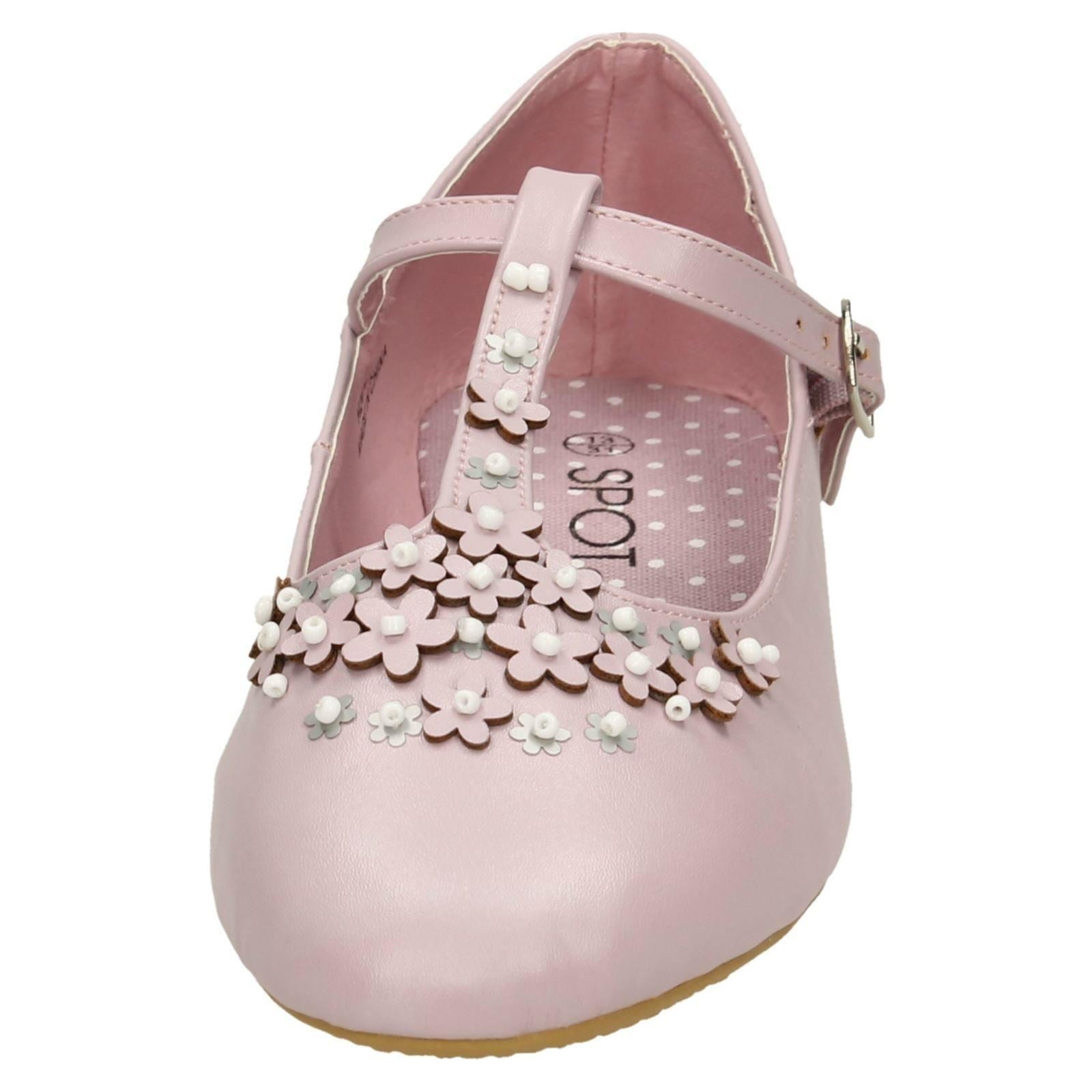 Girls Spot On Flat T-Bar Flower Trim Shoes