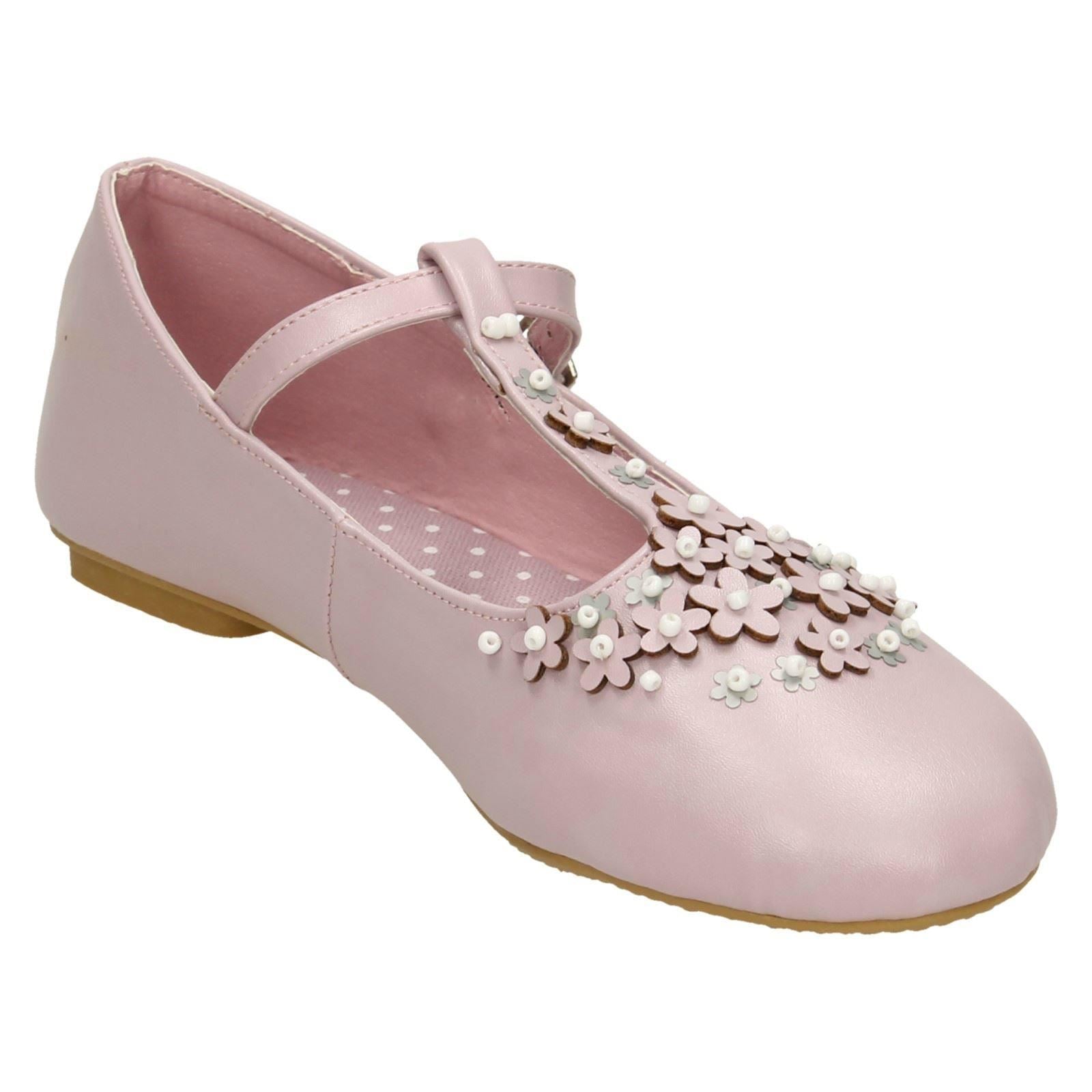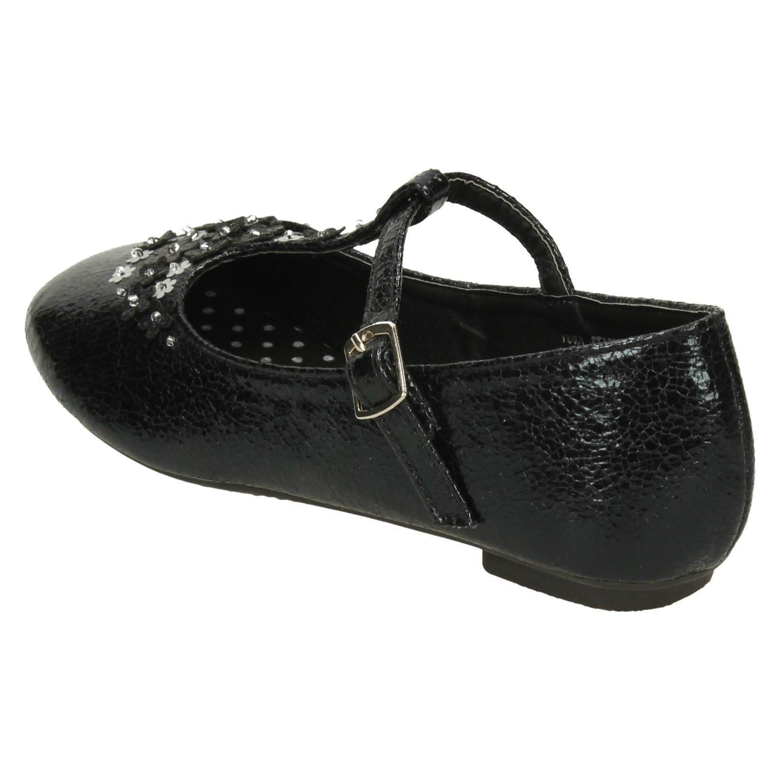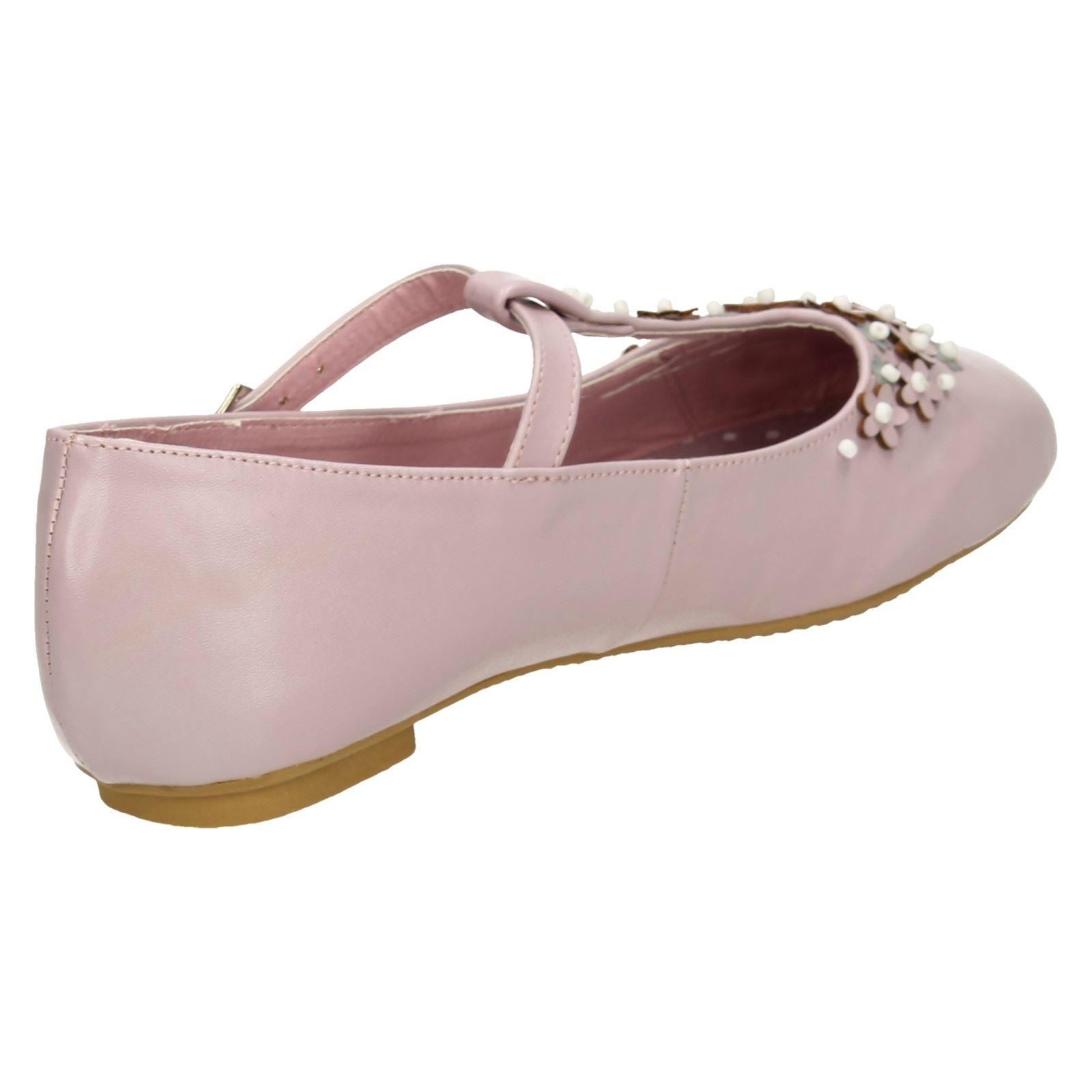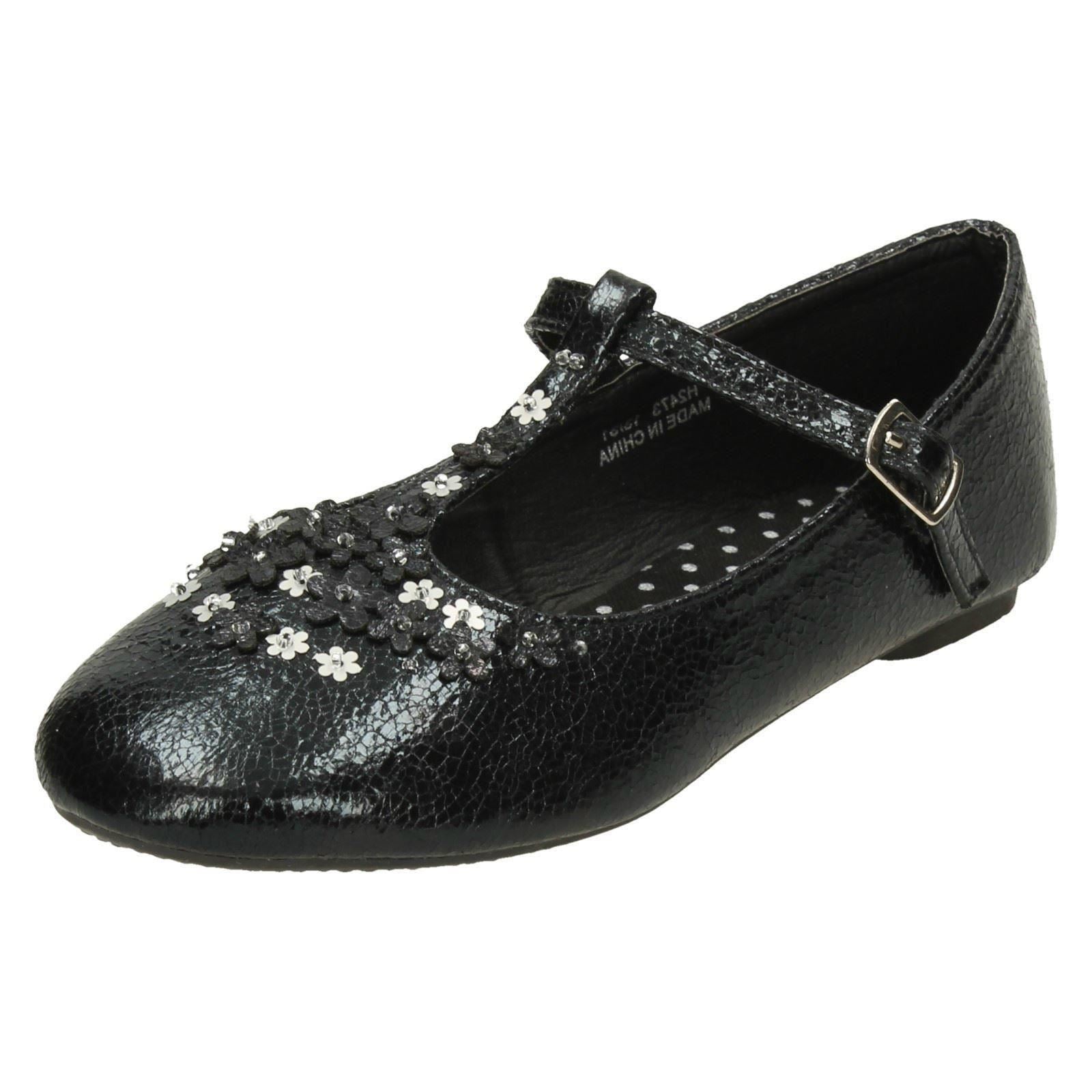Girls Spot On Flat T-Bar Flower Trim Shoes