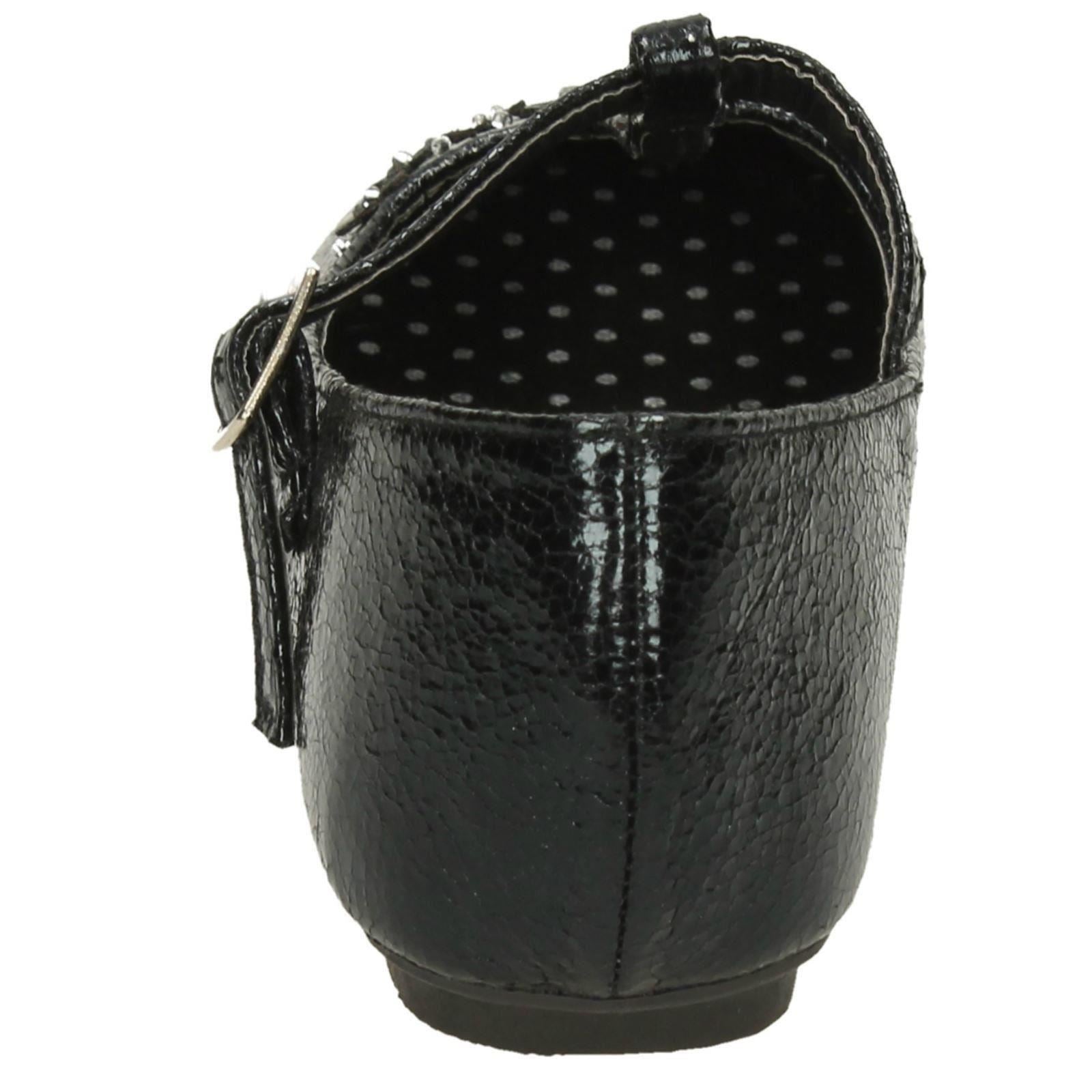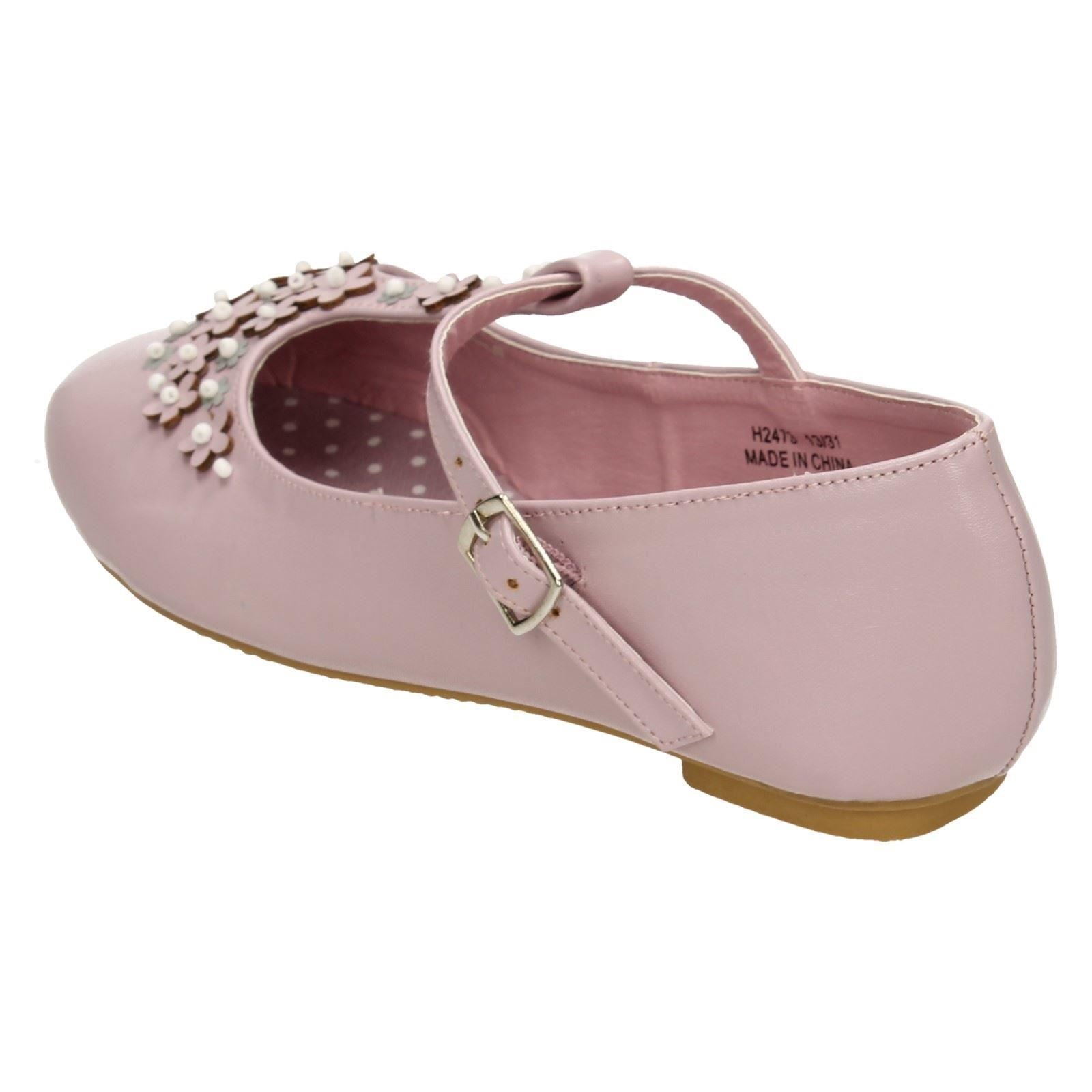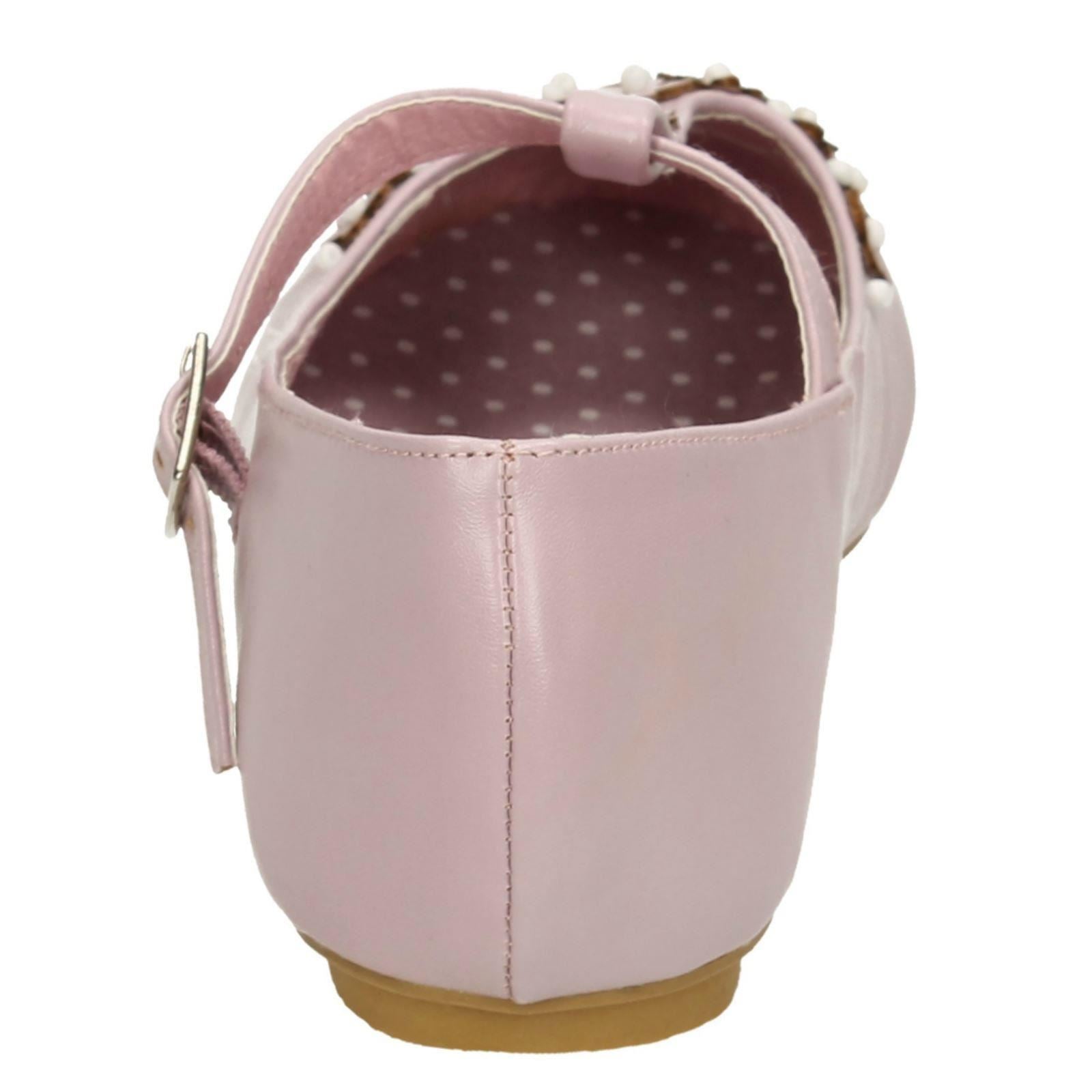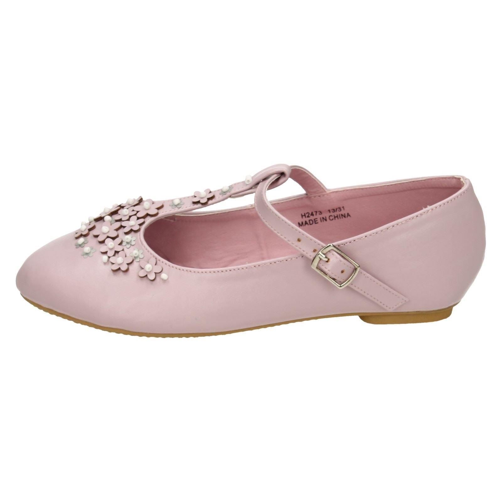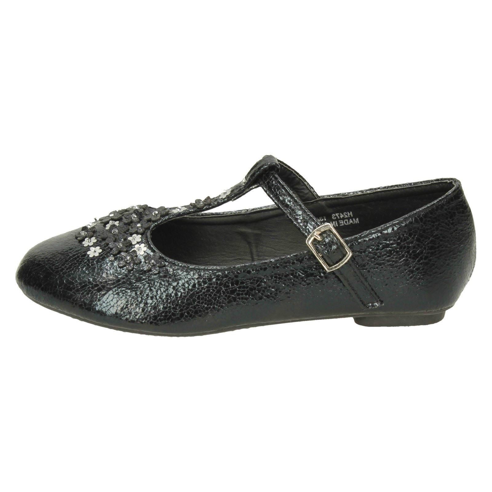 Girls Spot On Flat T-Bar Flower Trim Shoes