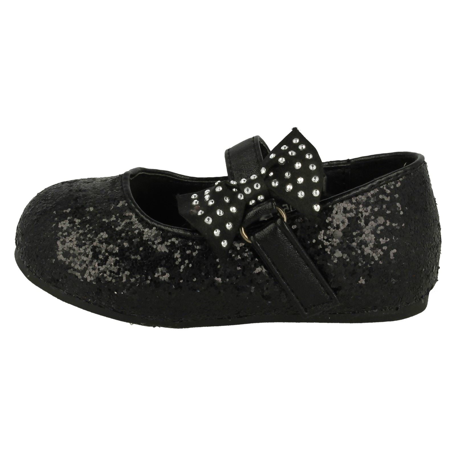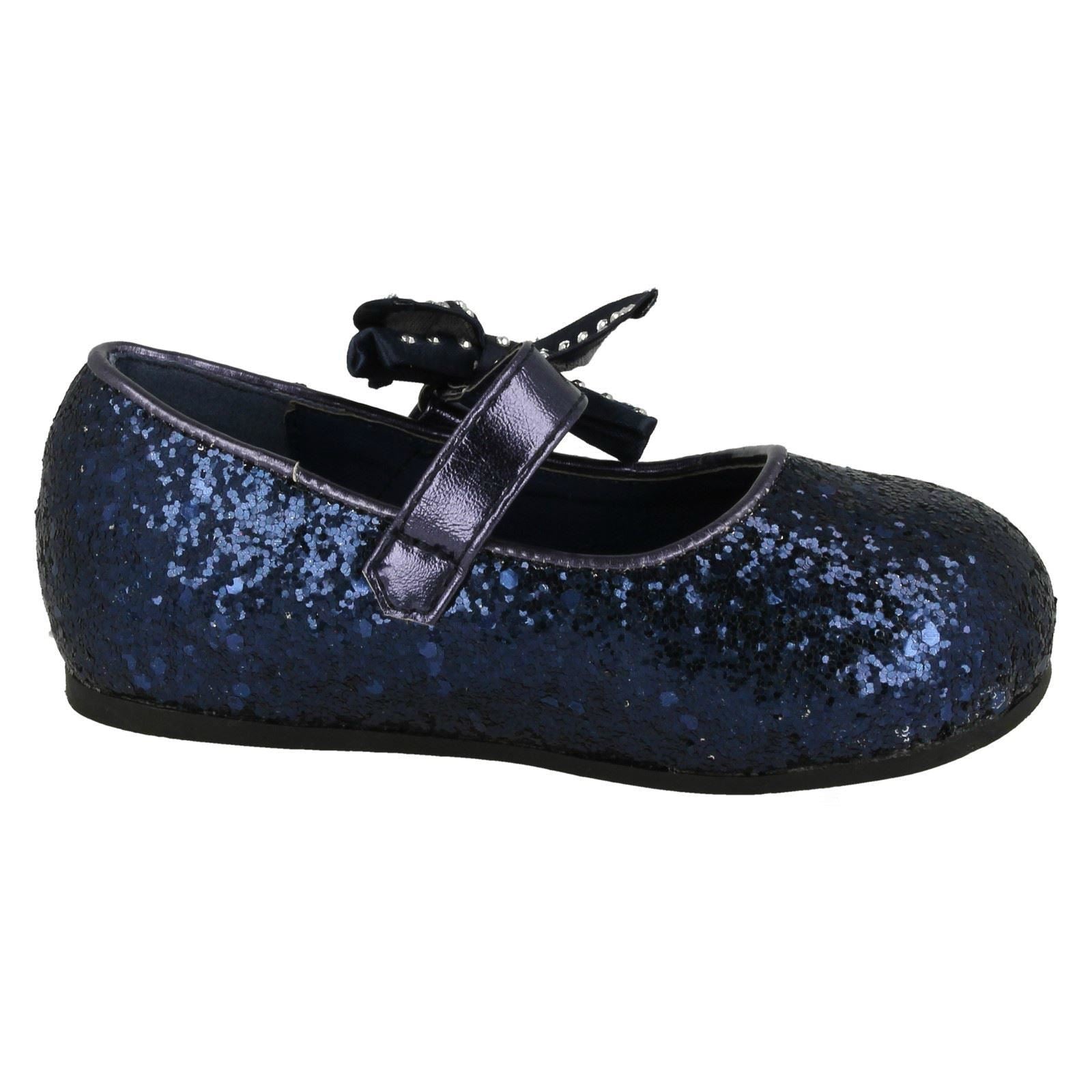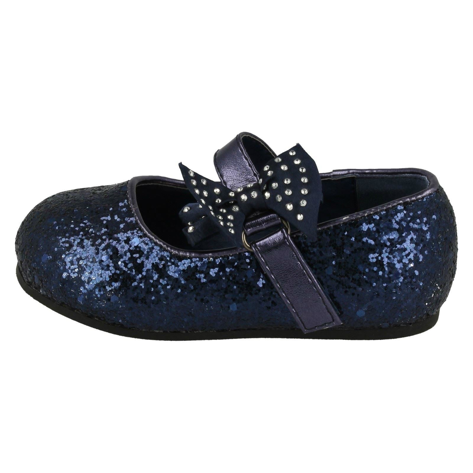 Girls Spot On Glitter Bow Detail Party Flats
