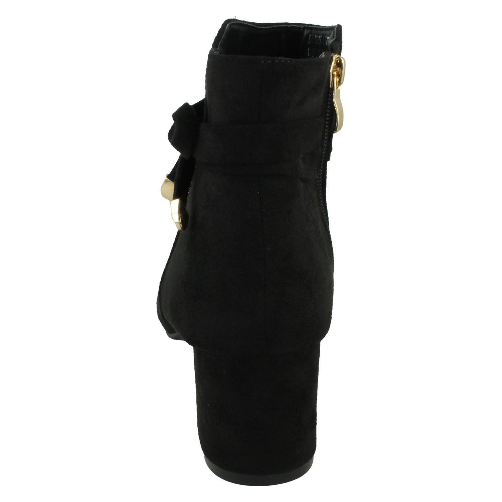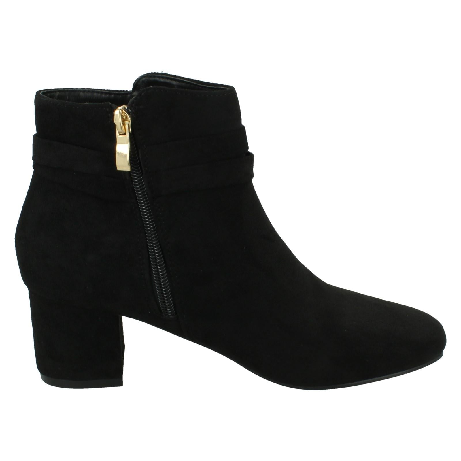 Ladies Block Heel Wide Fit Ankle Boots with Size Tie and Inside Zip F51235