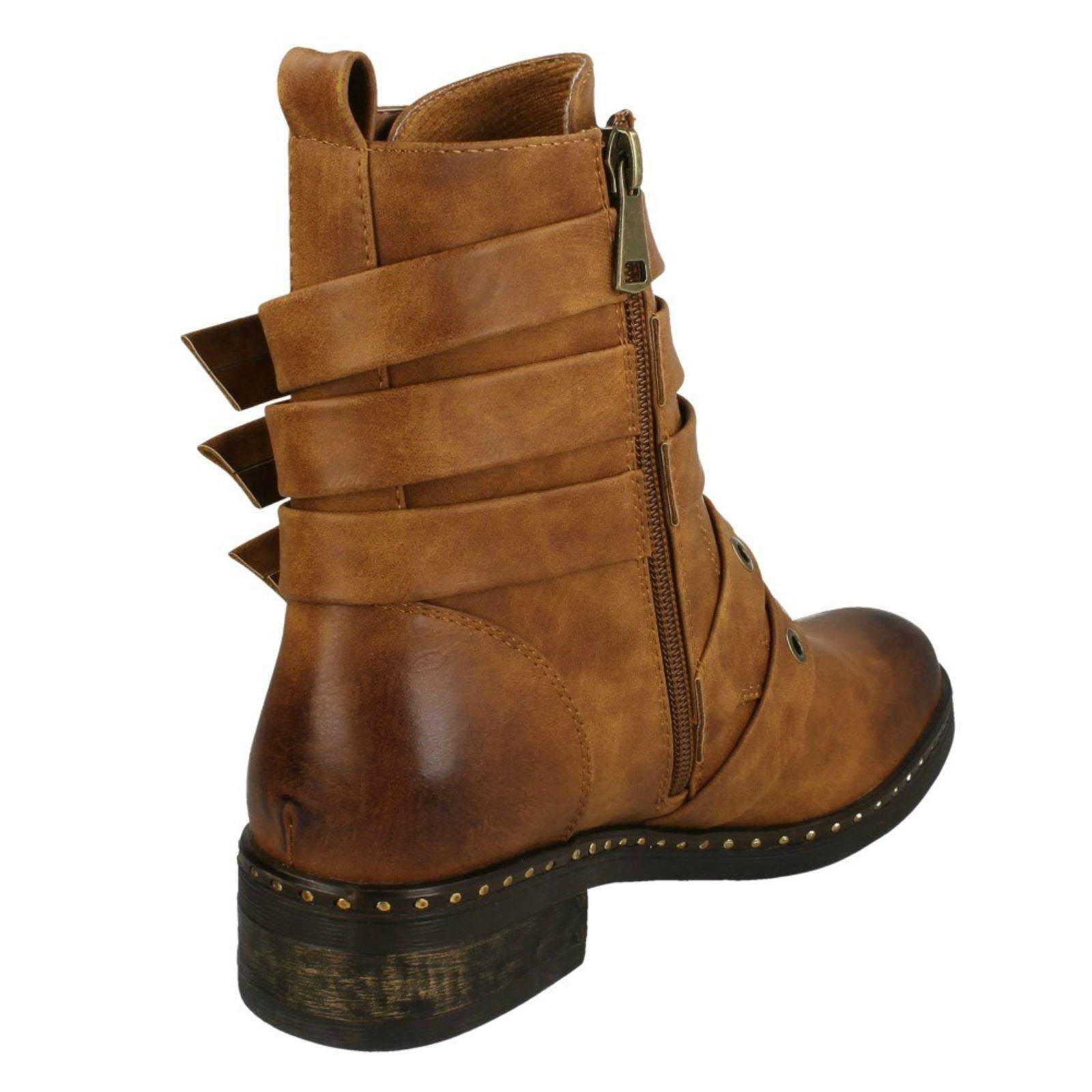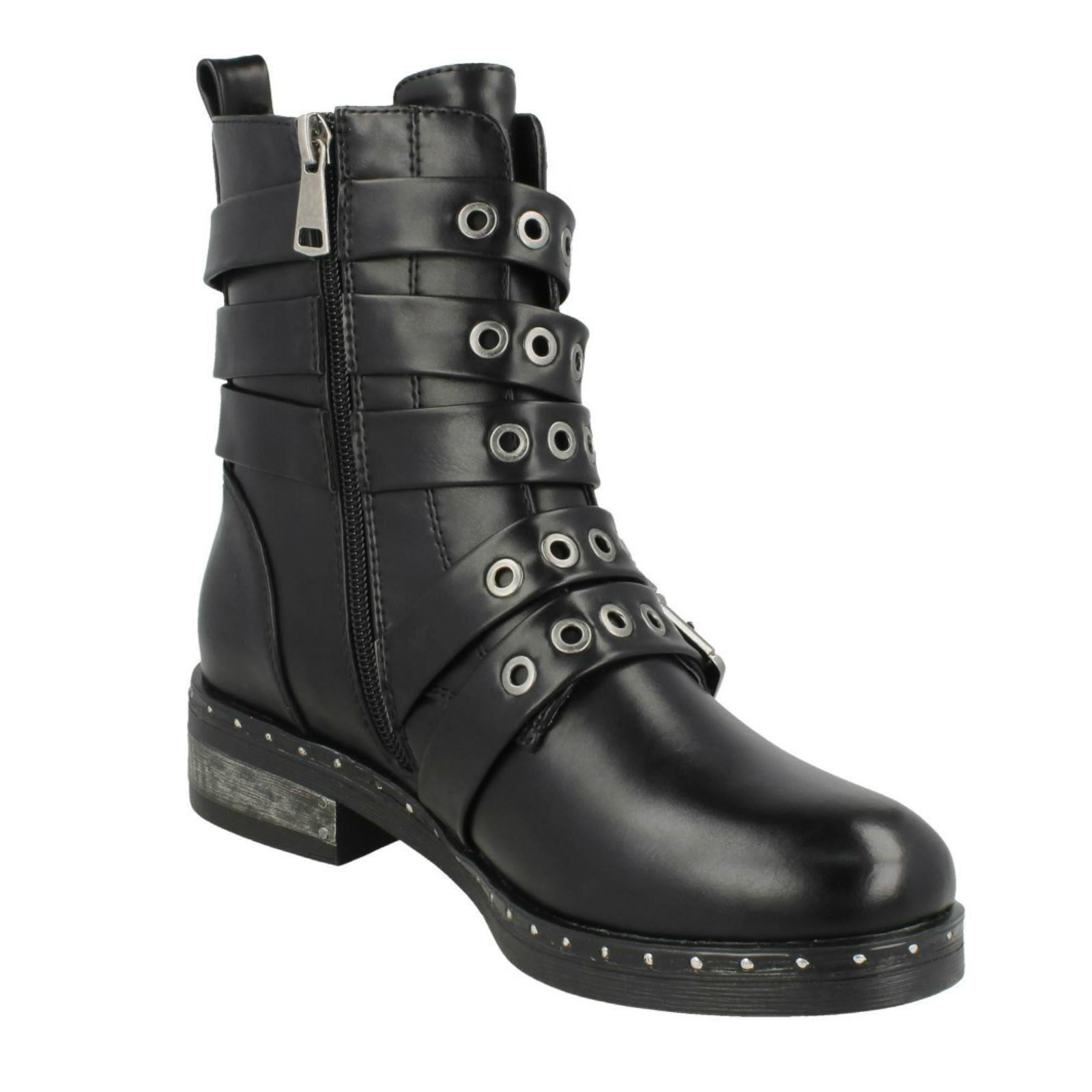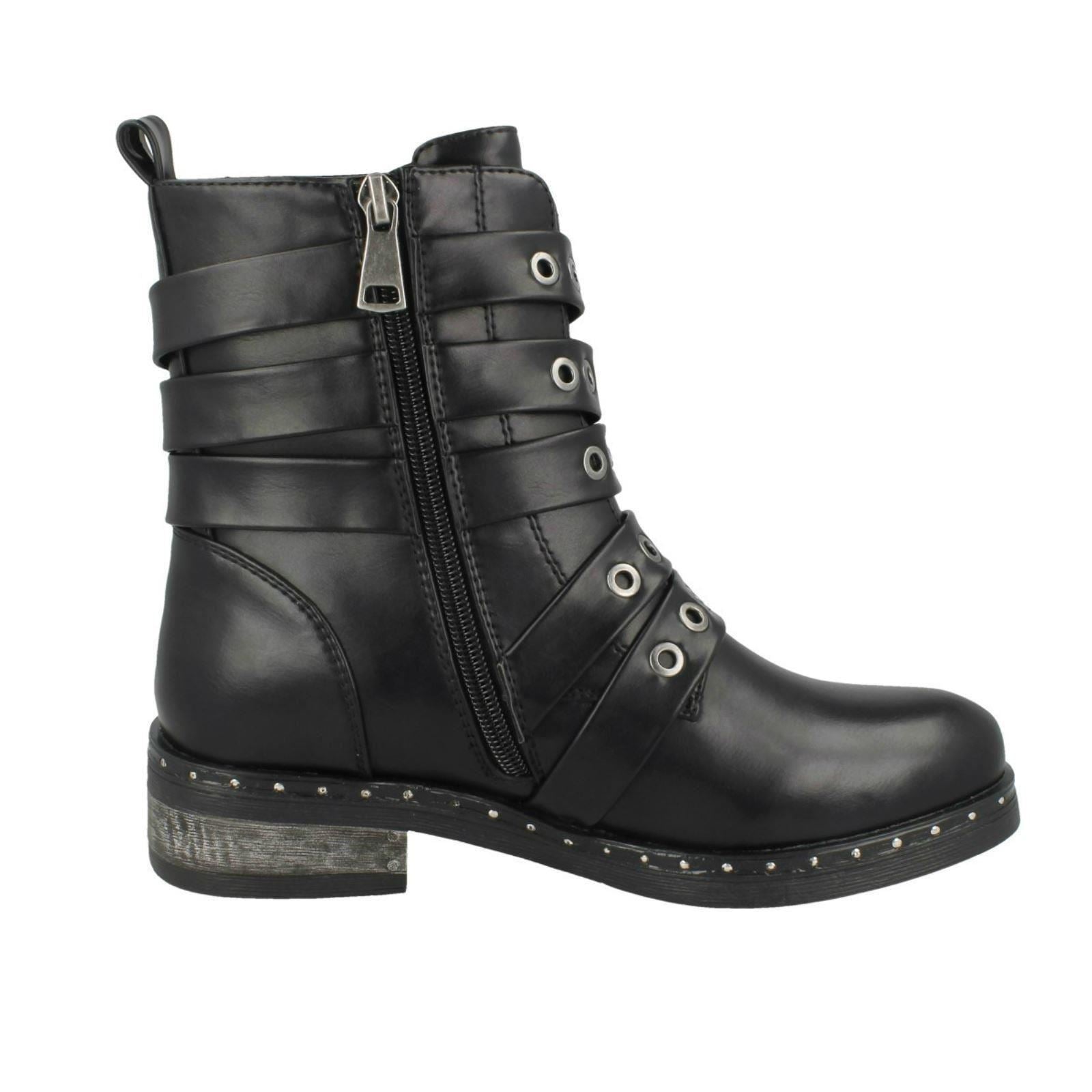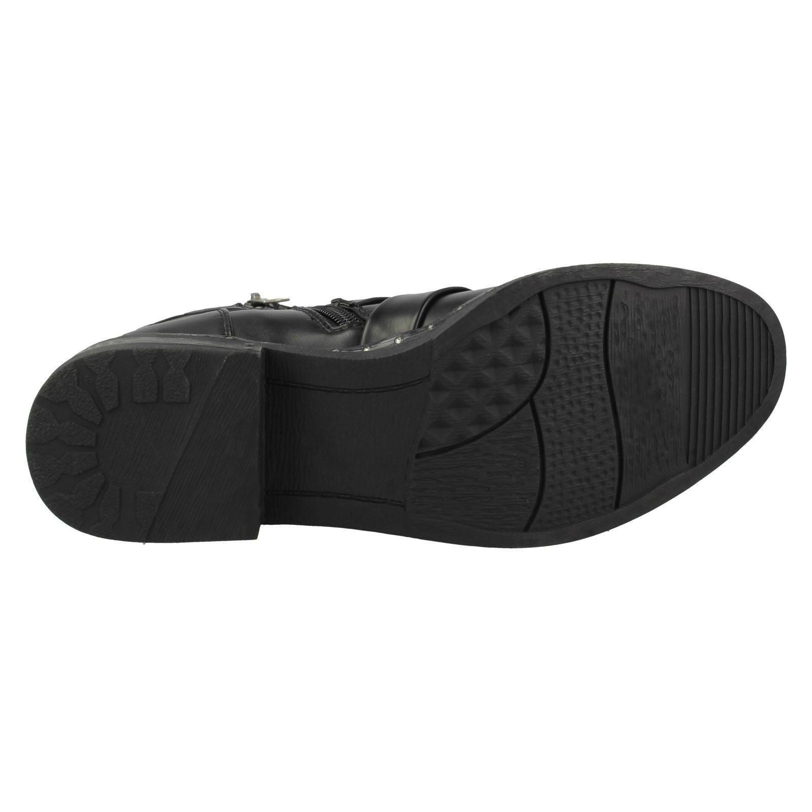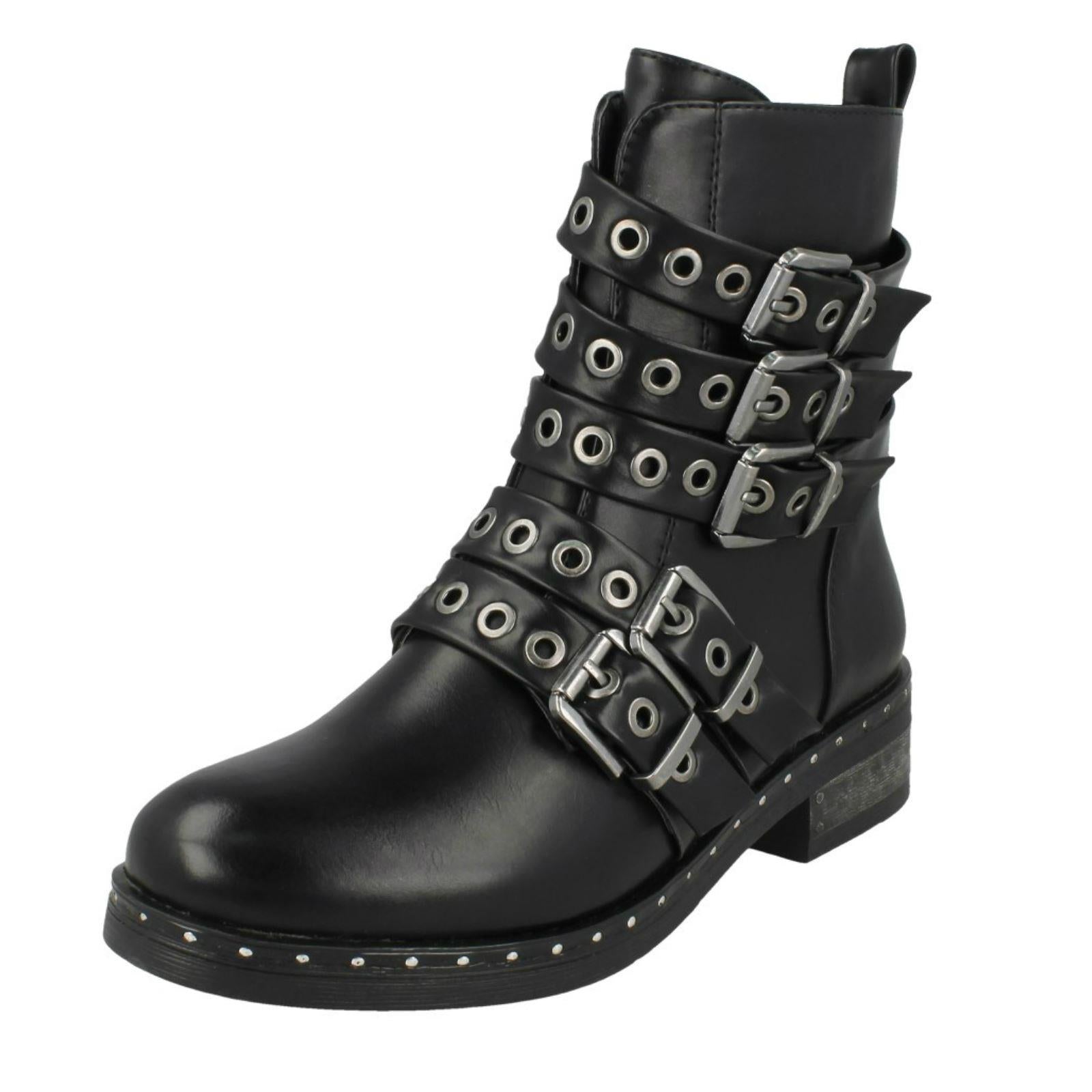 Ladies Spot On Biker Boots With Buckle Detail F4410