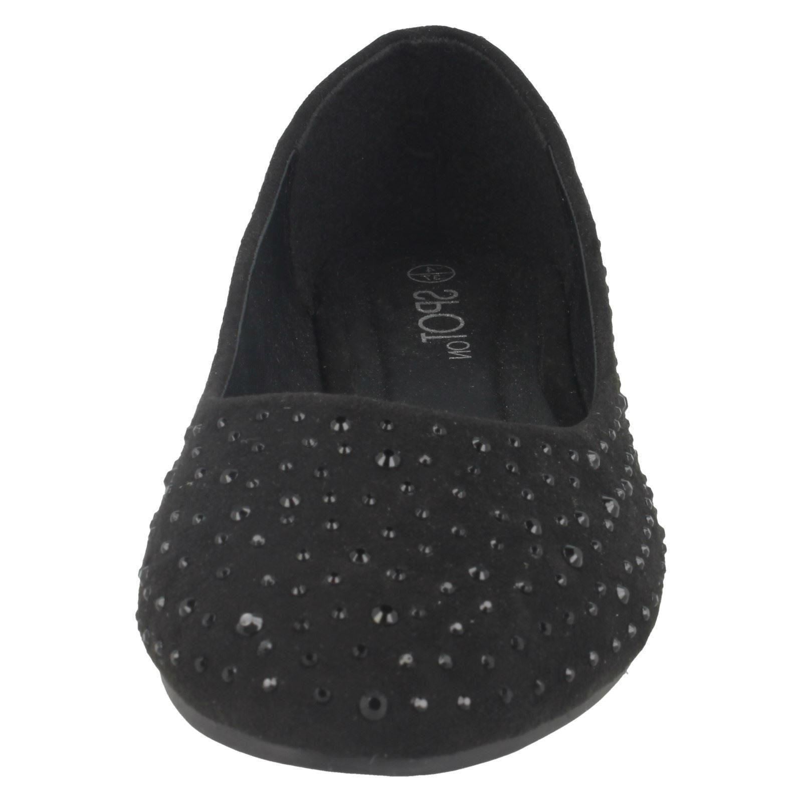 Ladies Spot On Flat Diamante Ballerinas