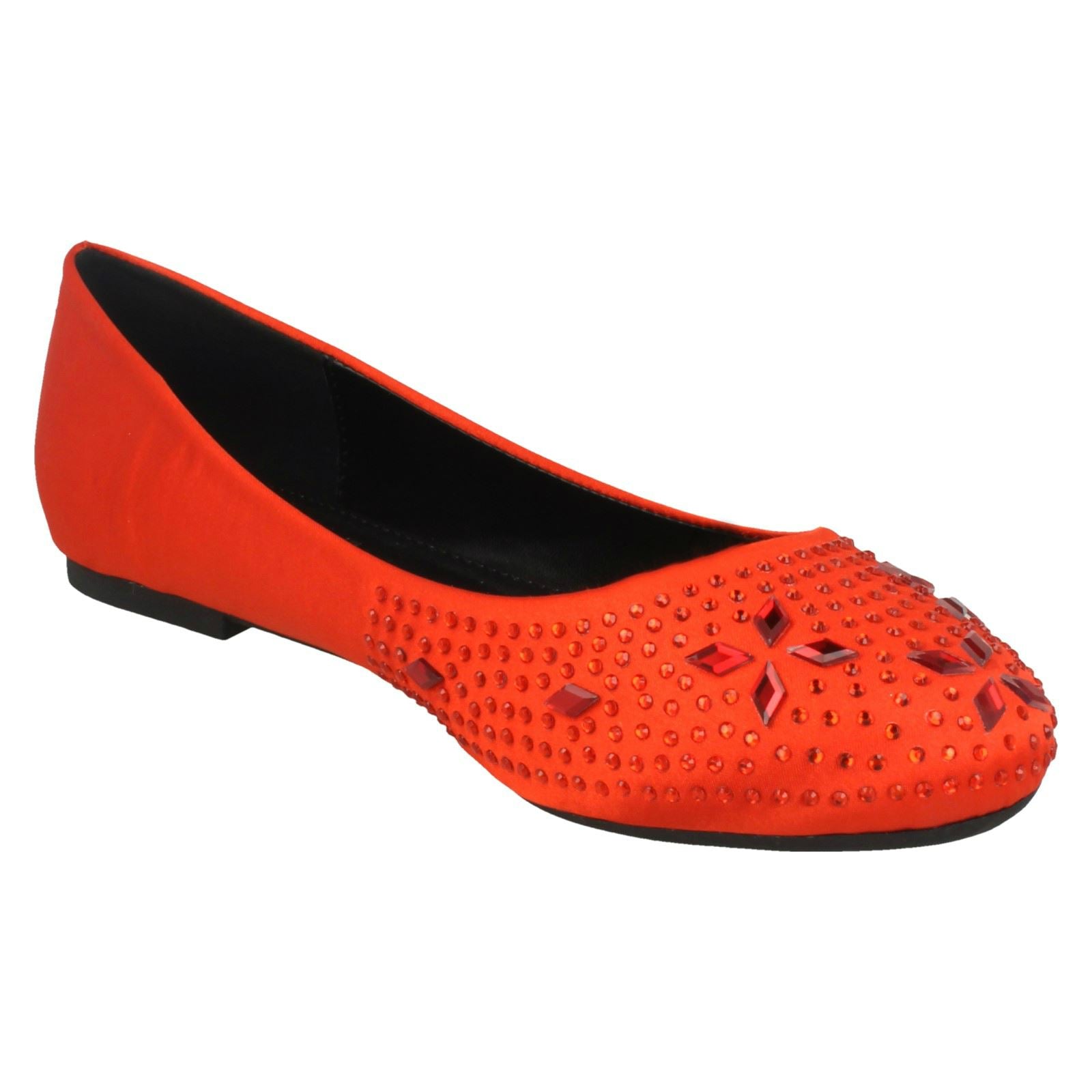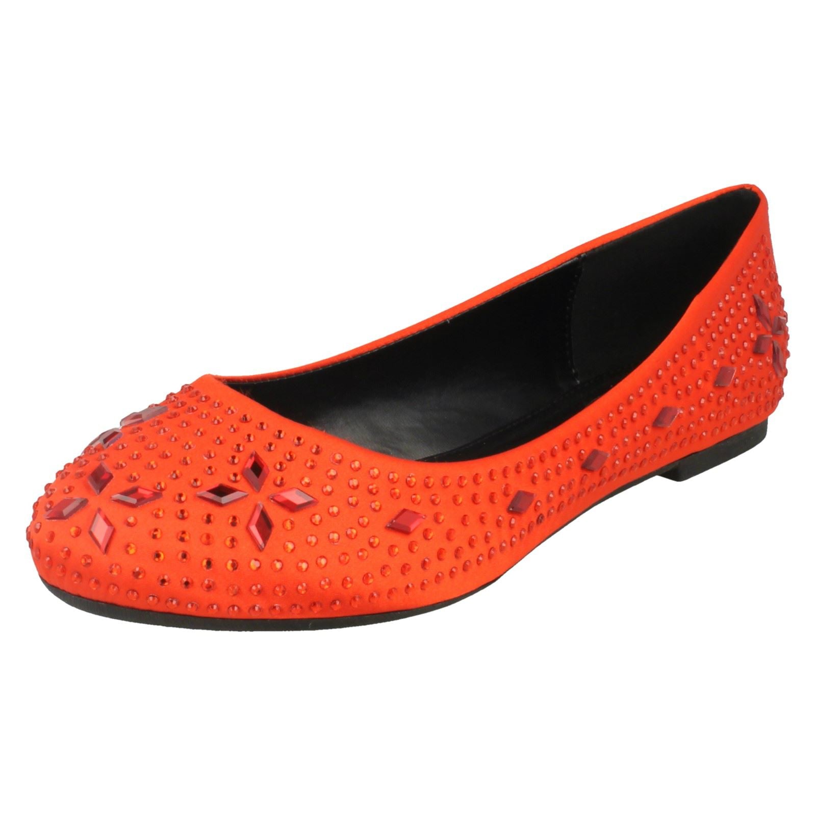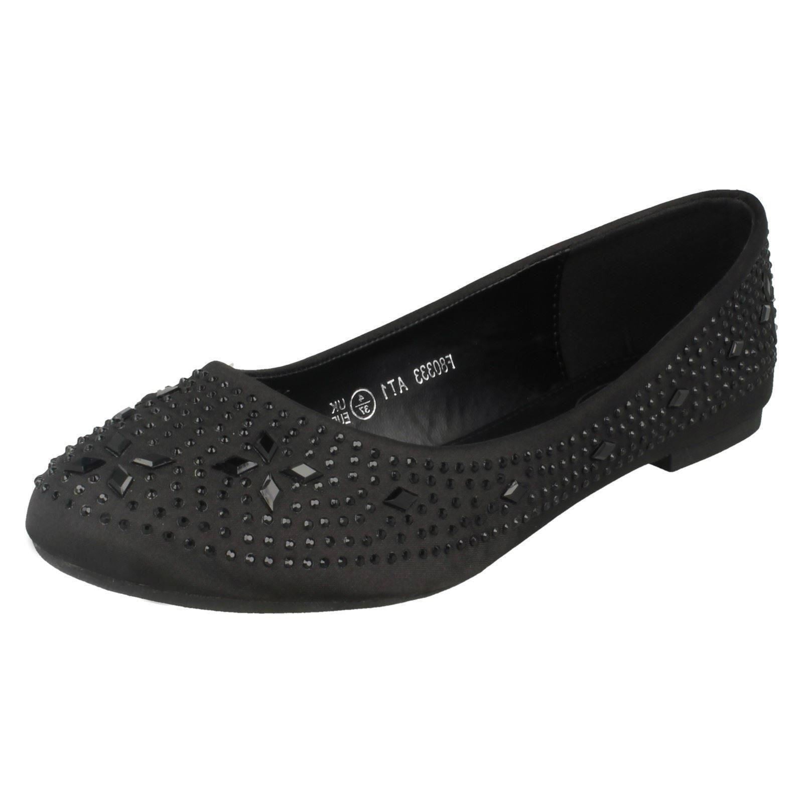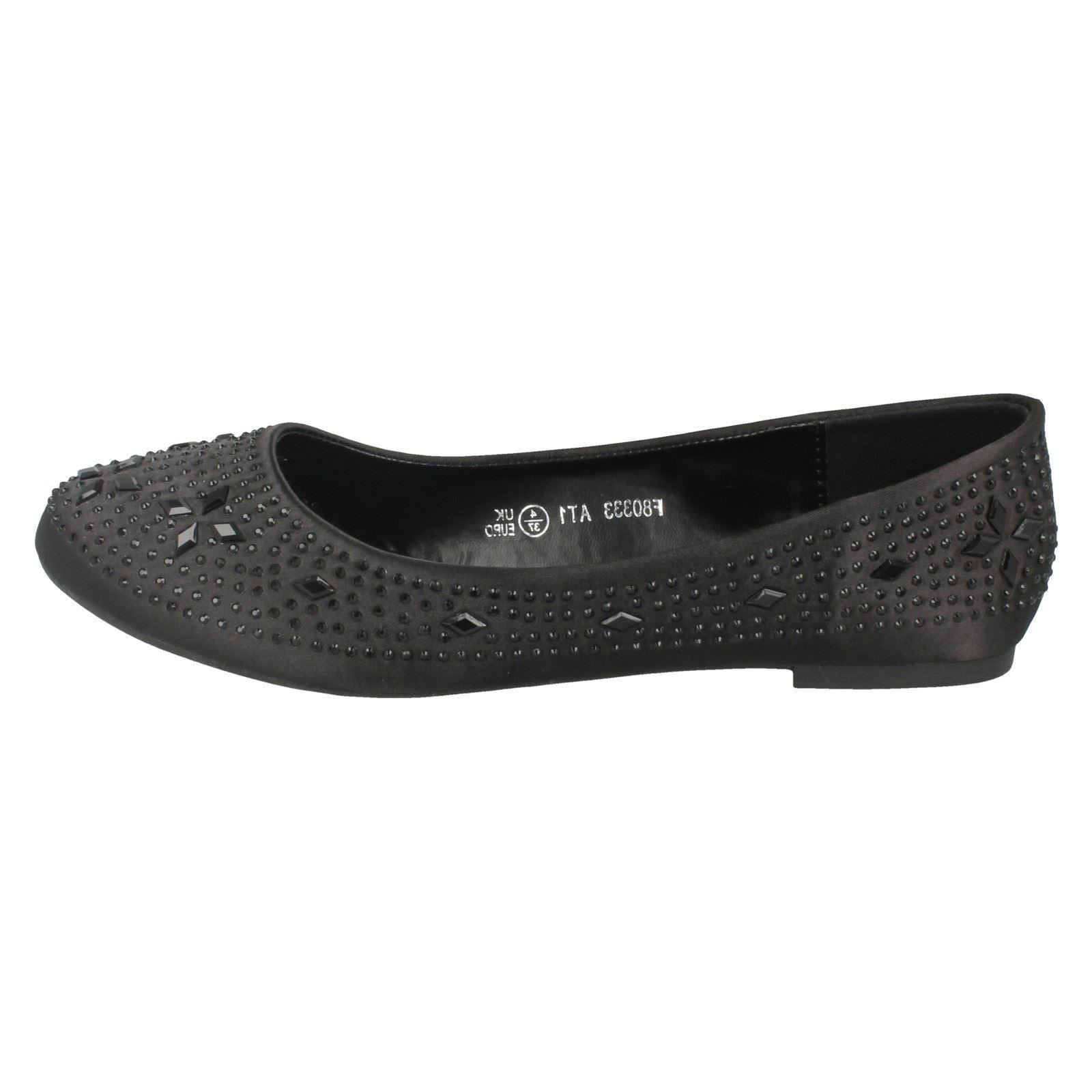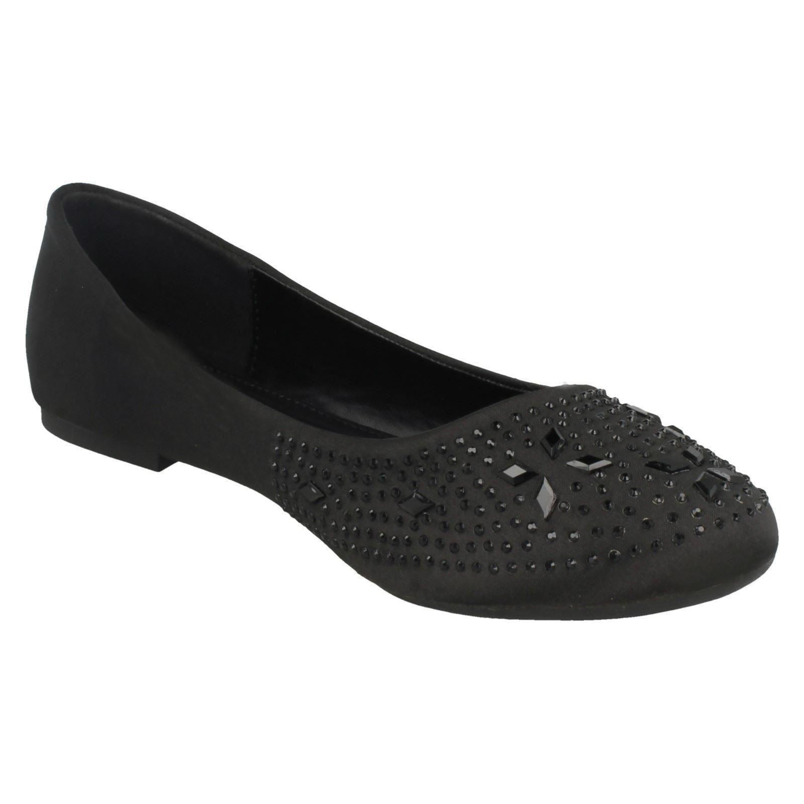 Ladies Spot On Flat Diamante Ballerinas
