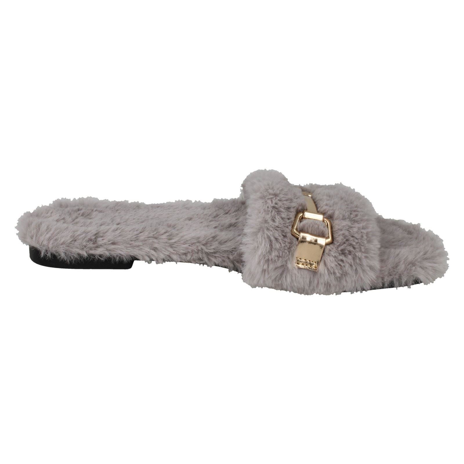 Ladies Spot On Flat Fur Mule Sliders F00139