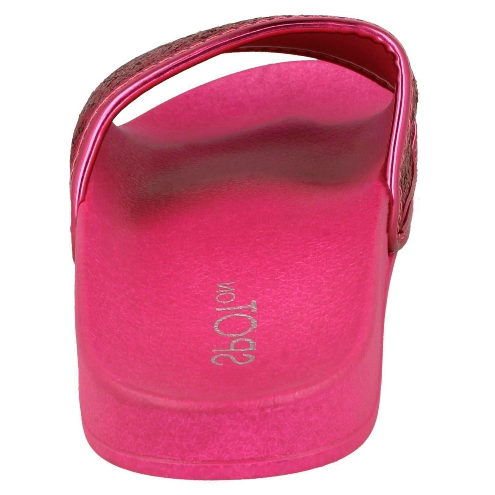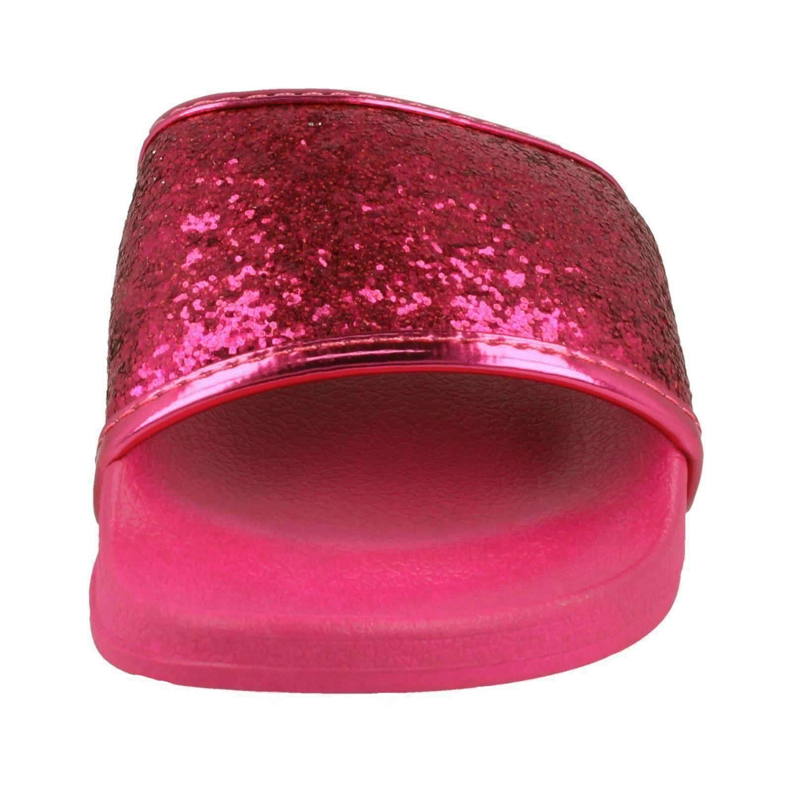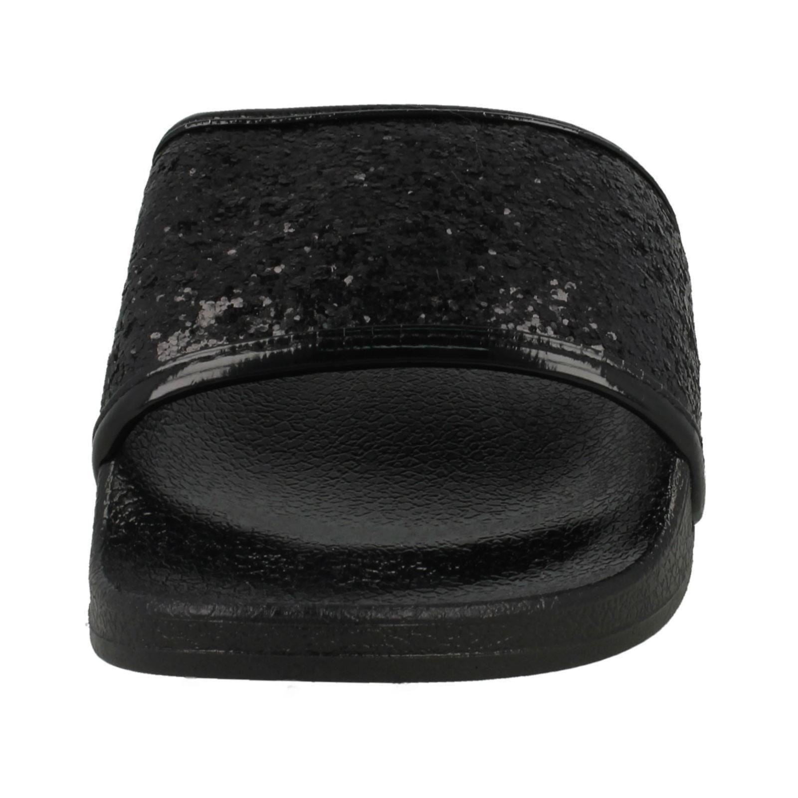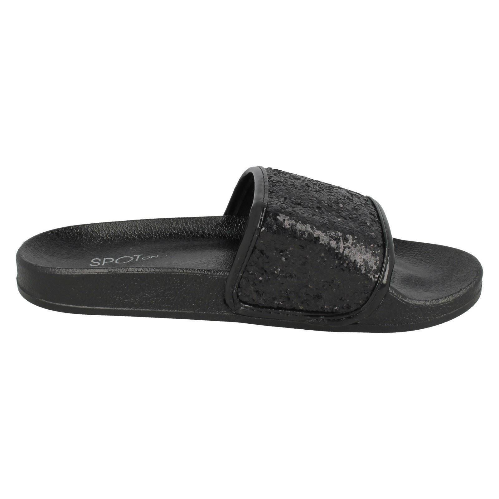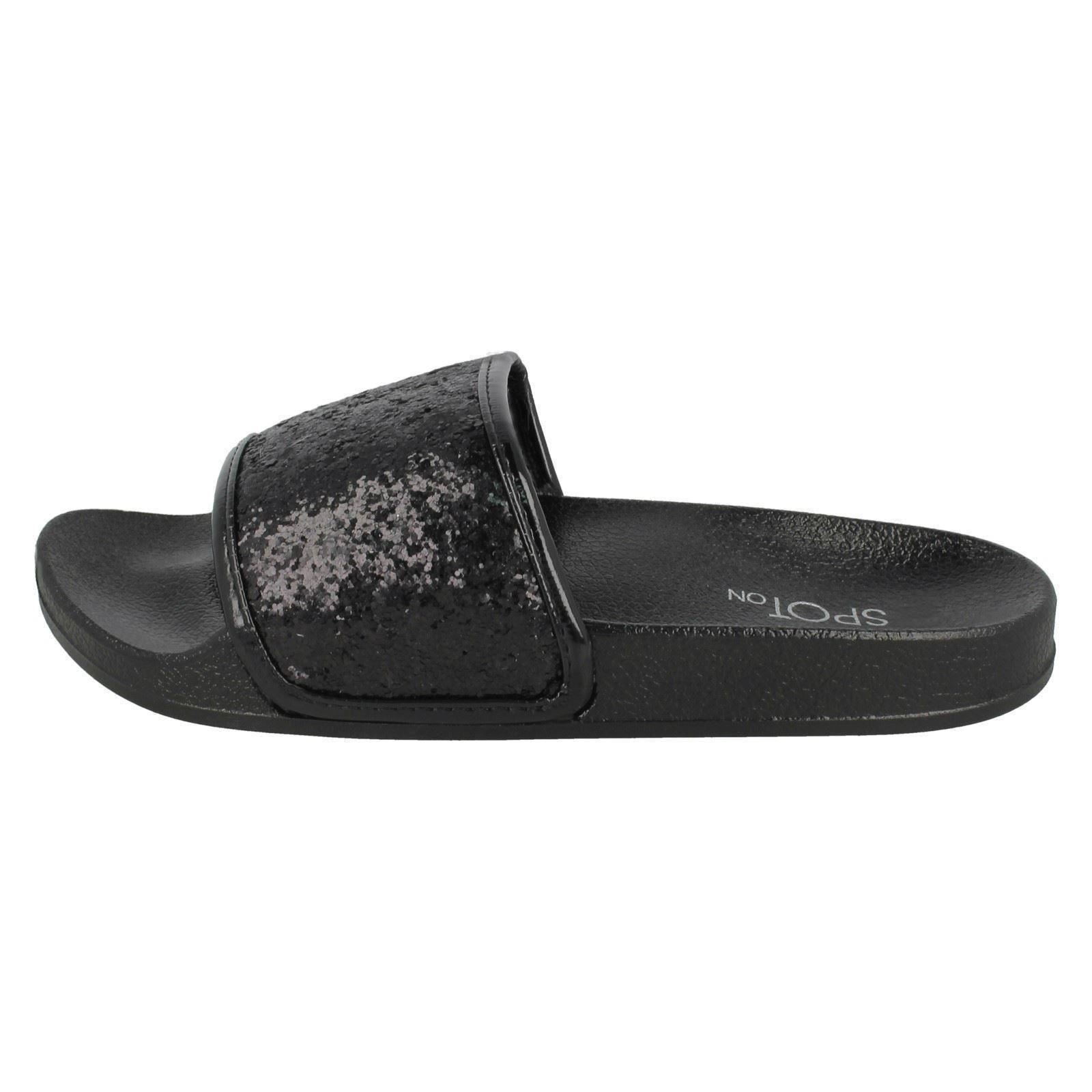 Ladies Spot On Flat Glitter Vamp Sliders