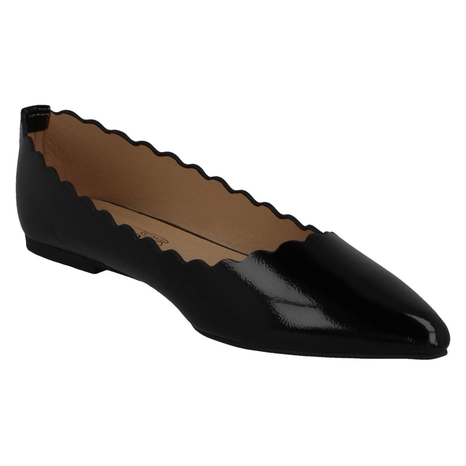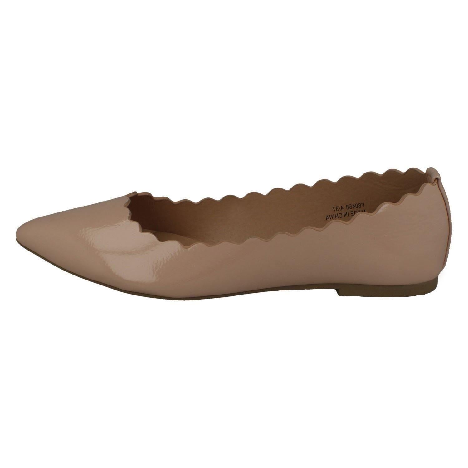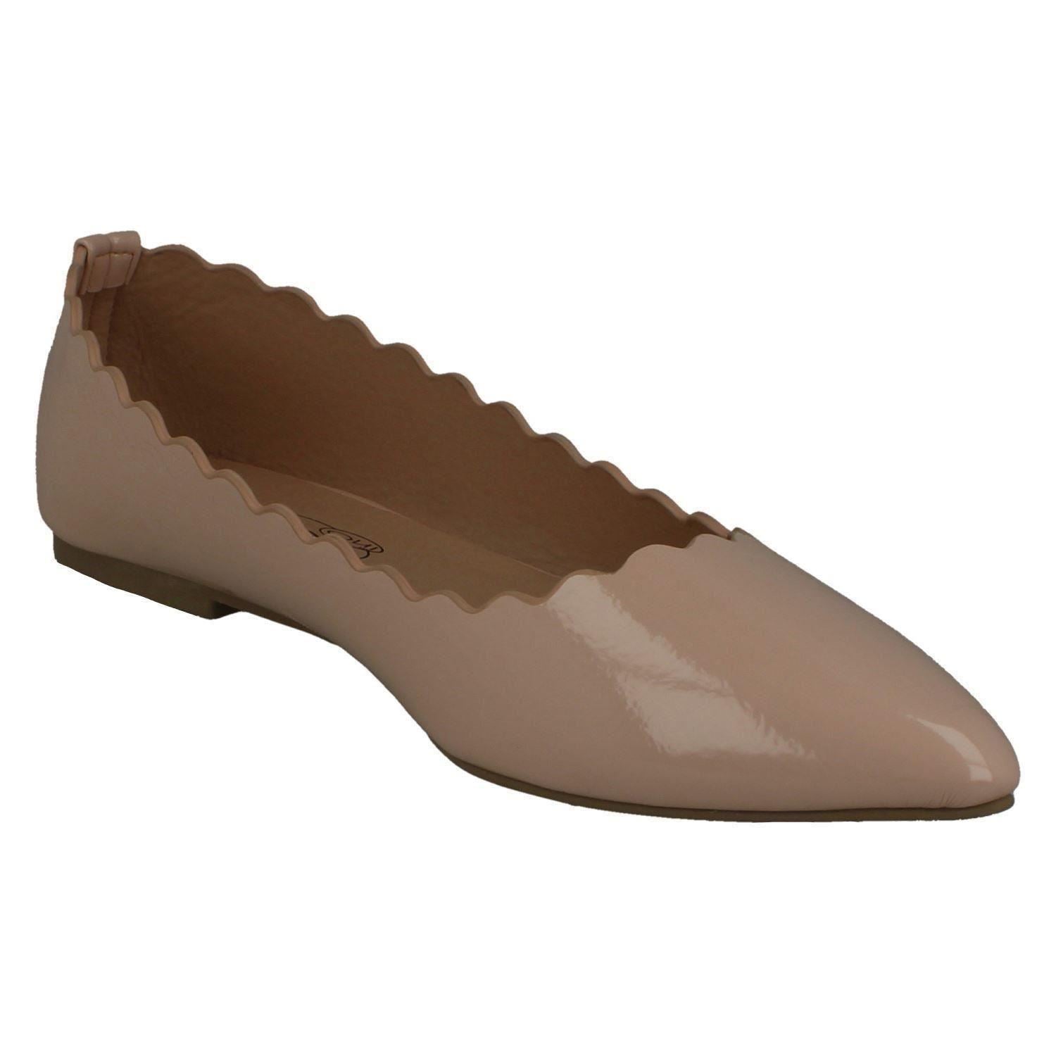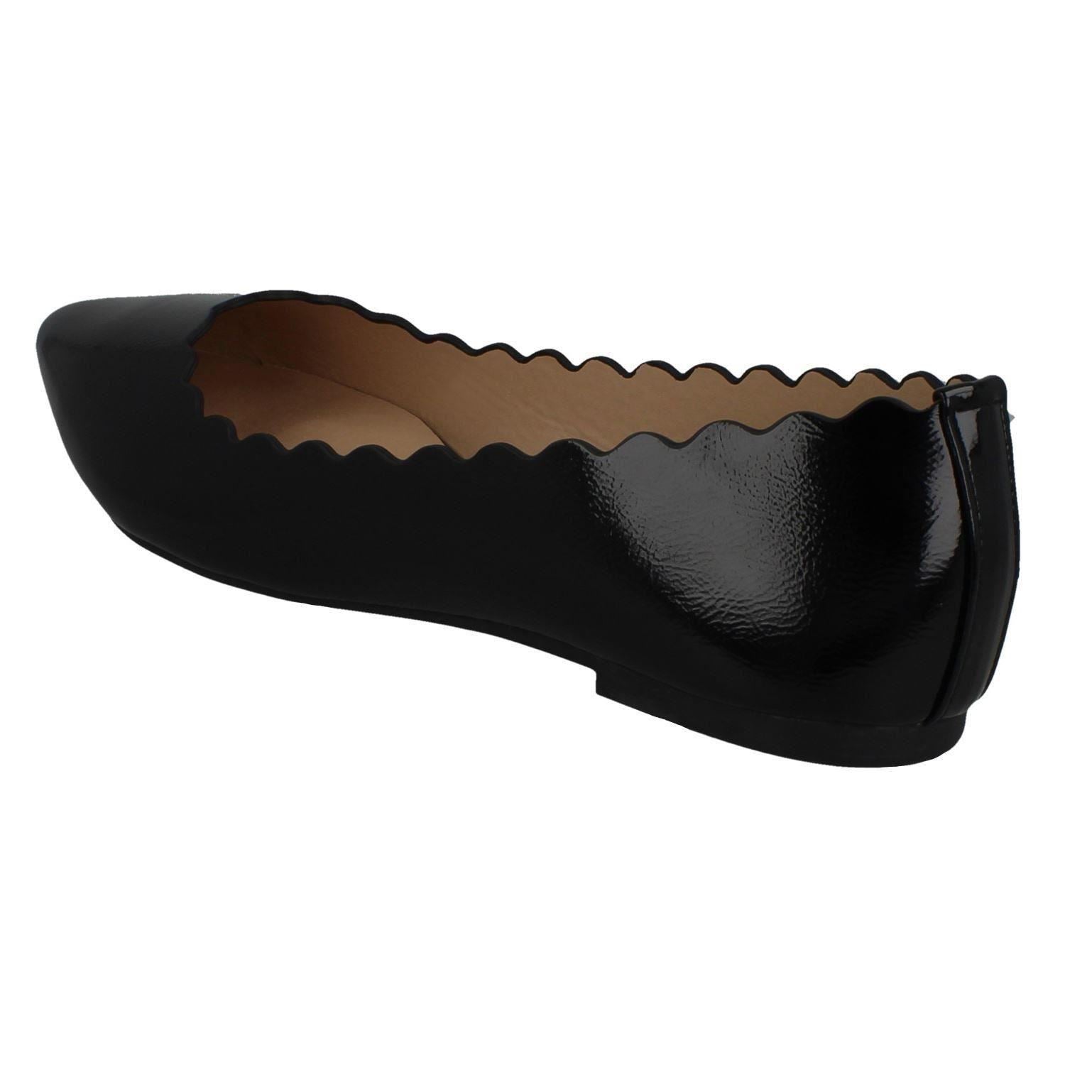 Spot On Ladies flats: Elevate your workday strut with these pointed-toe ballerinas that command attention without demanding effort. Slip into sleek synthetic patent comfort and conquer your to-do list feeling effortlessly chic. They don't just dress up an outfit; they power your confidence, making every stride a statement. Your new secret weapon for polished style.