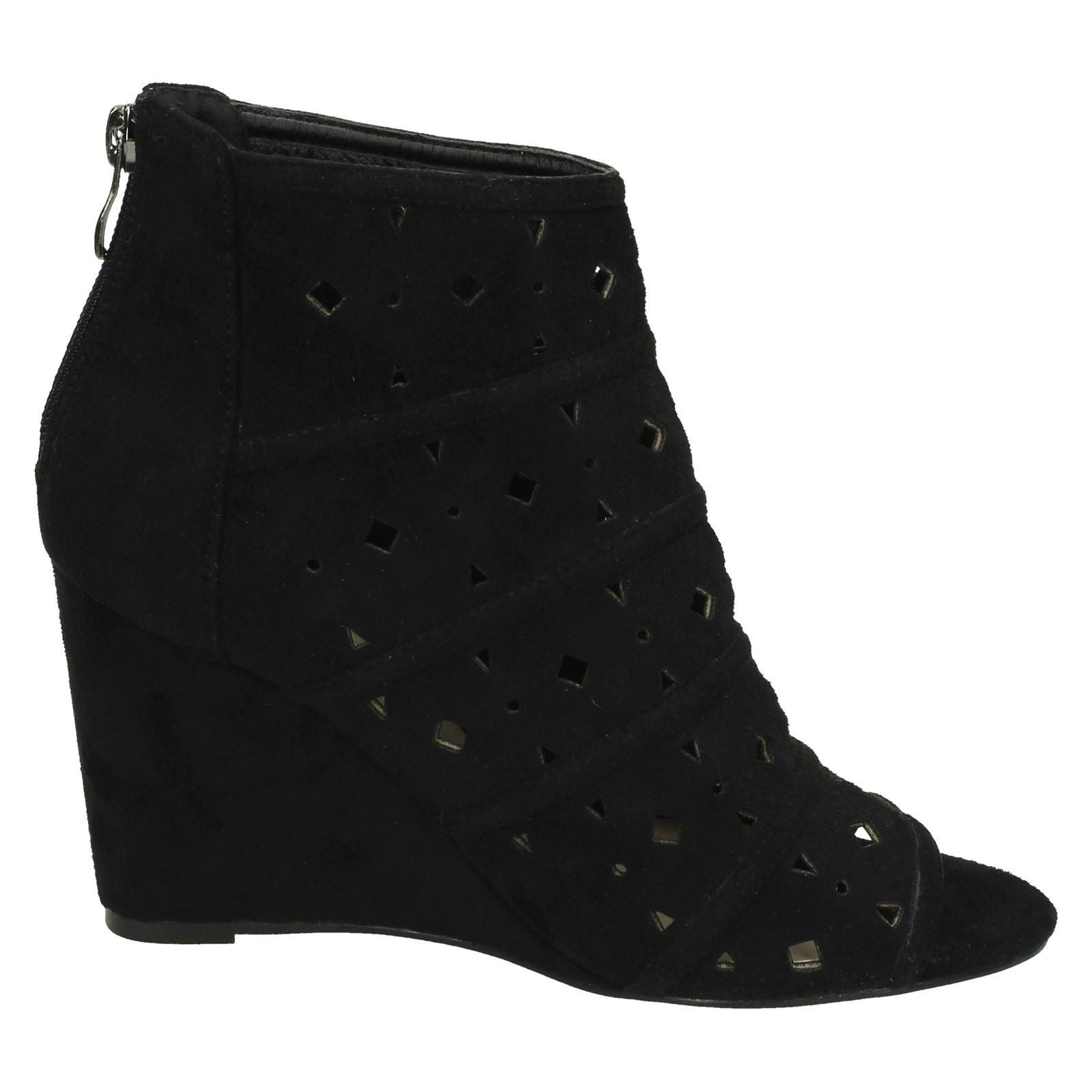 Ladies Spot On High Wedge Peeptoe Ankle Boots