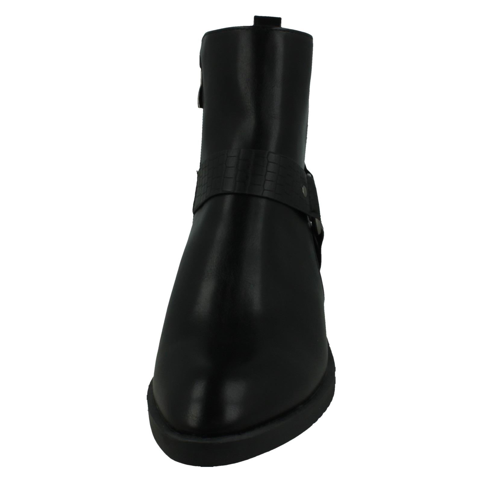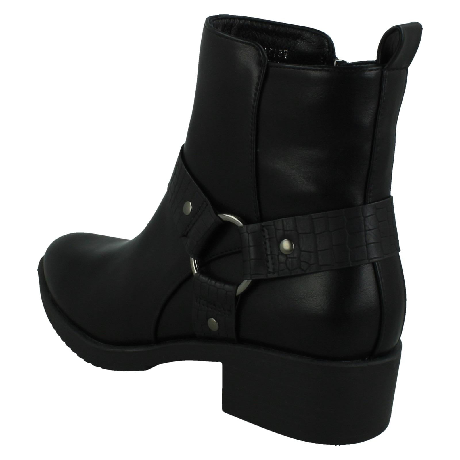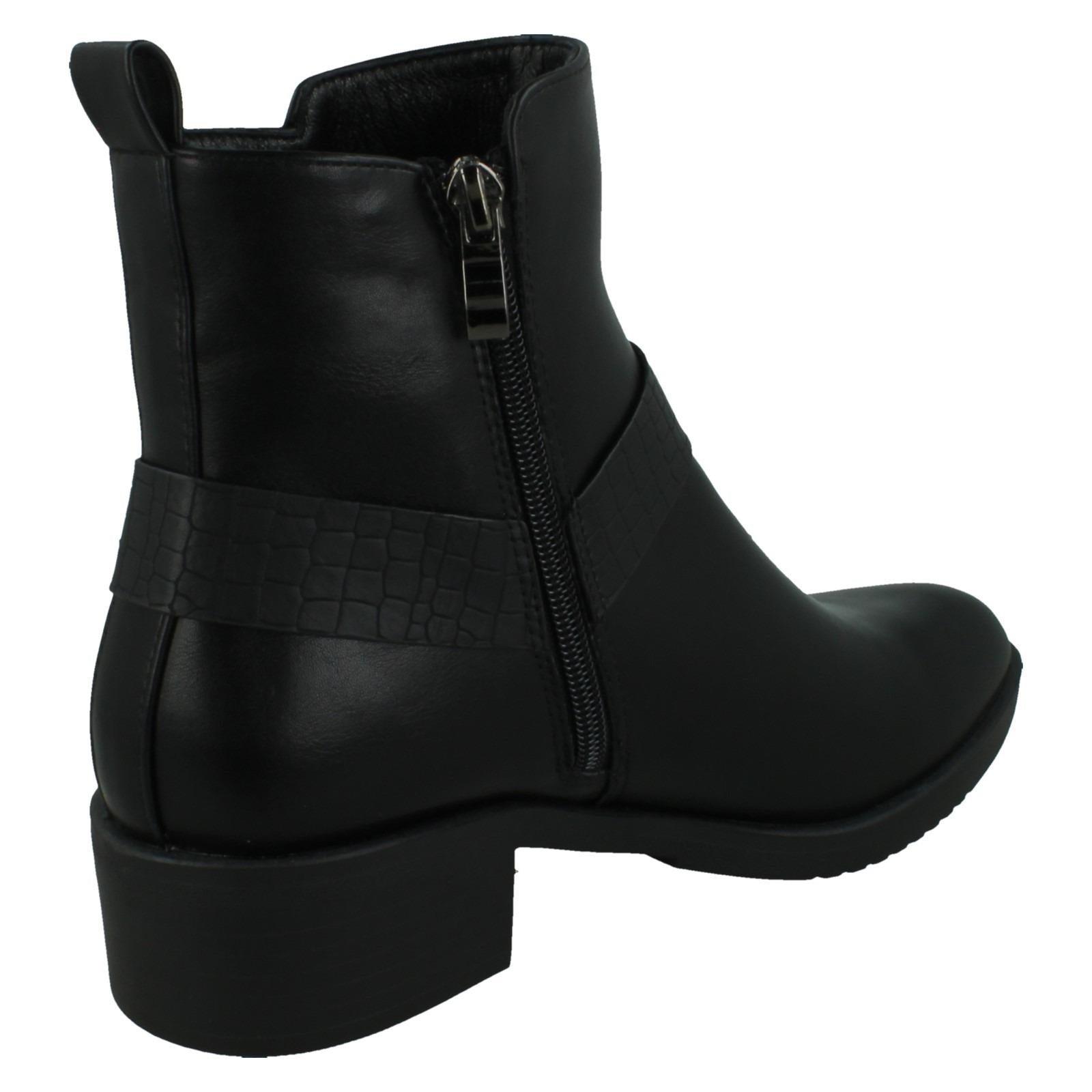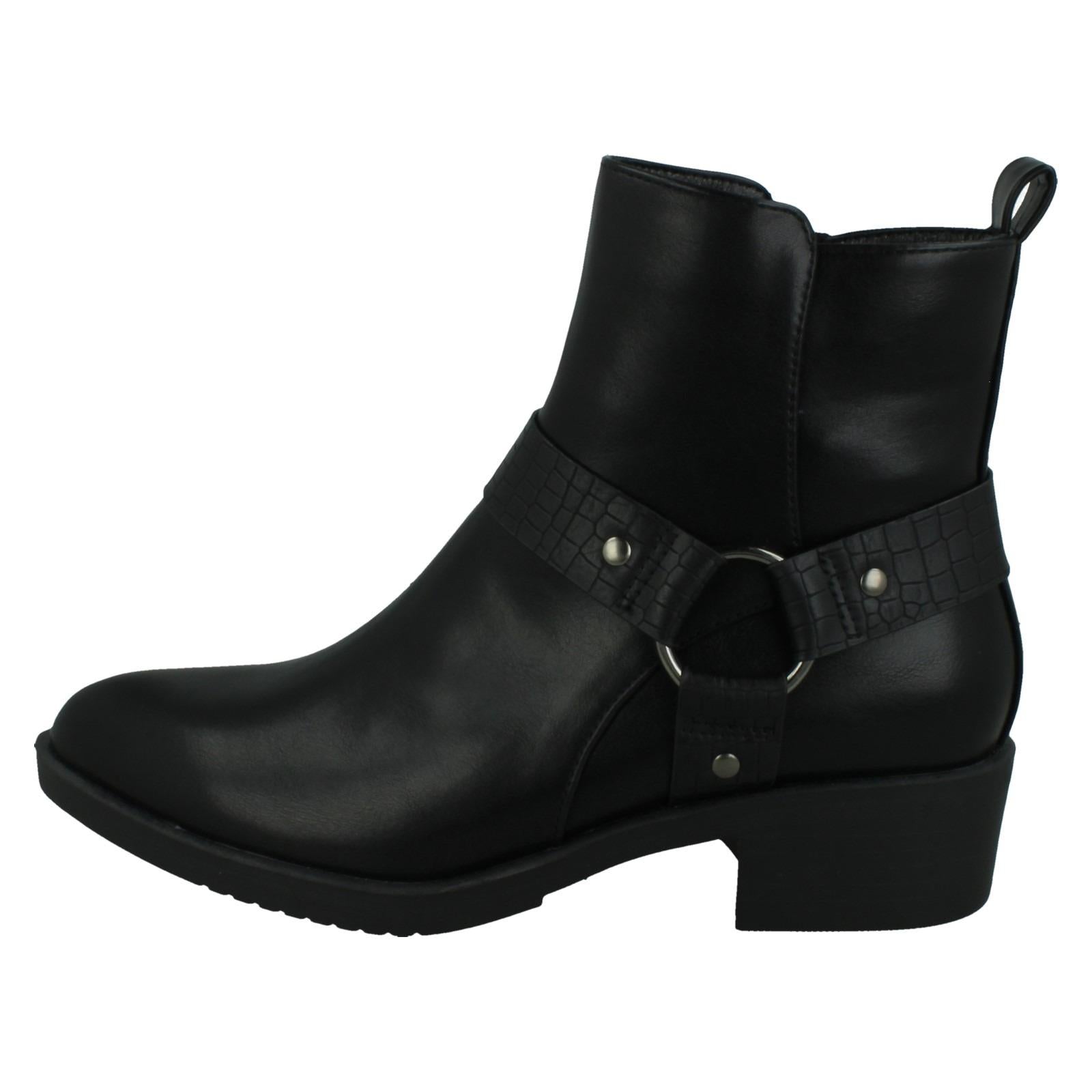 Ladies Spot On Low Ankle Boots with Ring Trim Strap F51240