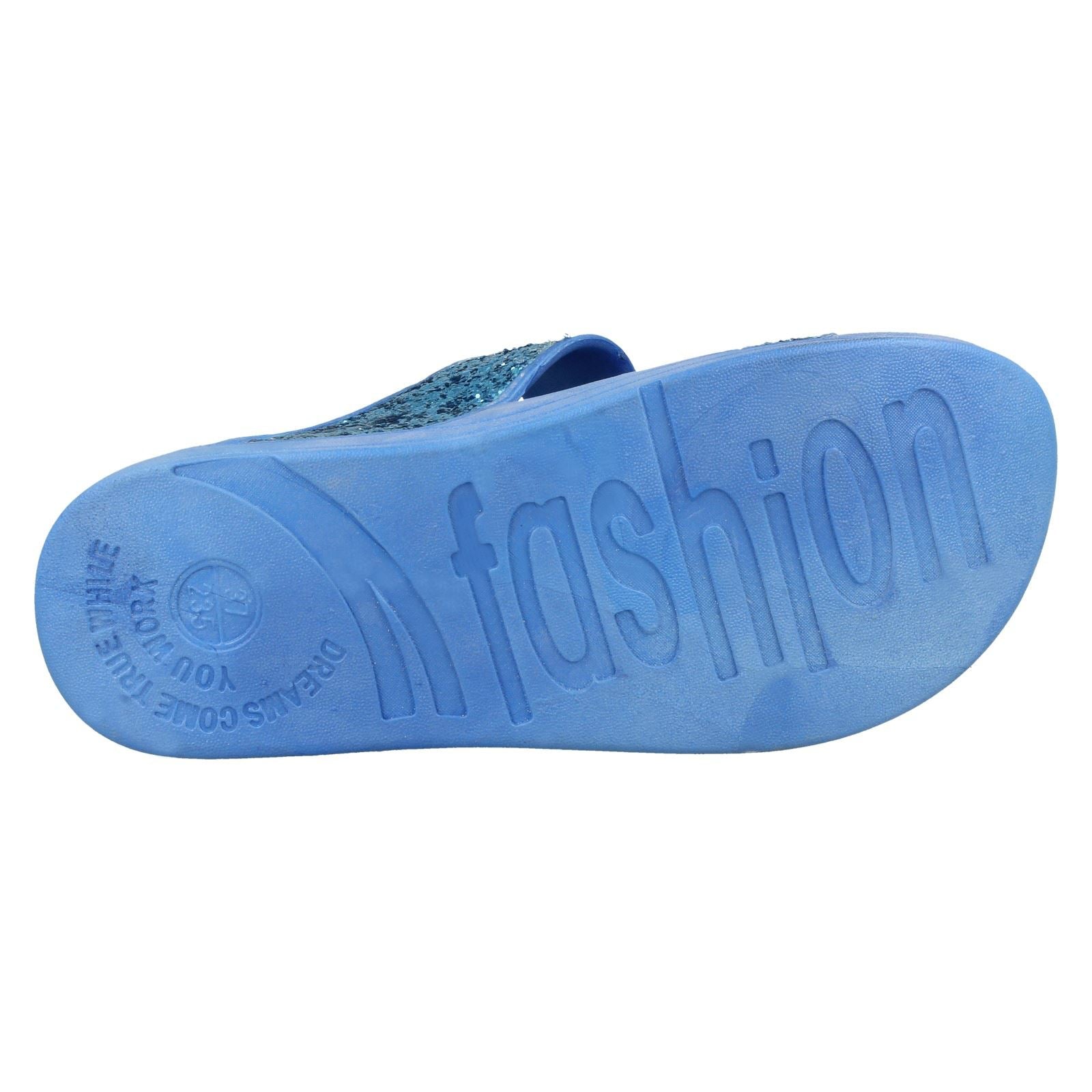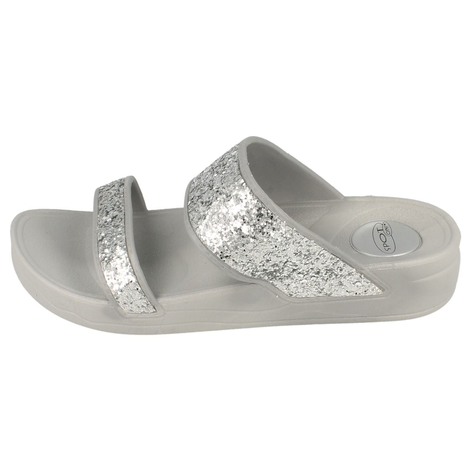 Ladies Spot On Mid Wedge Glitter 2 Bar Mule