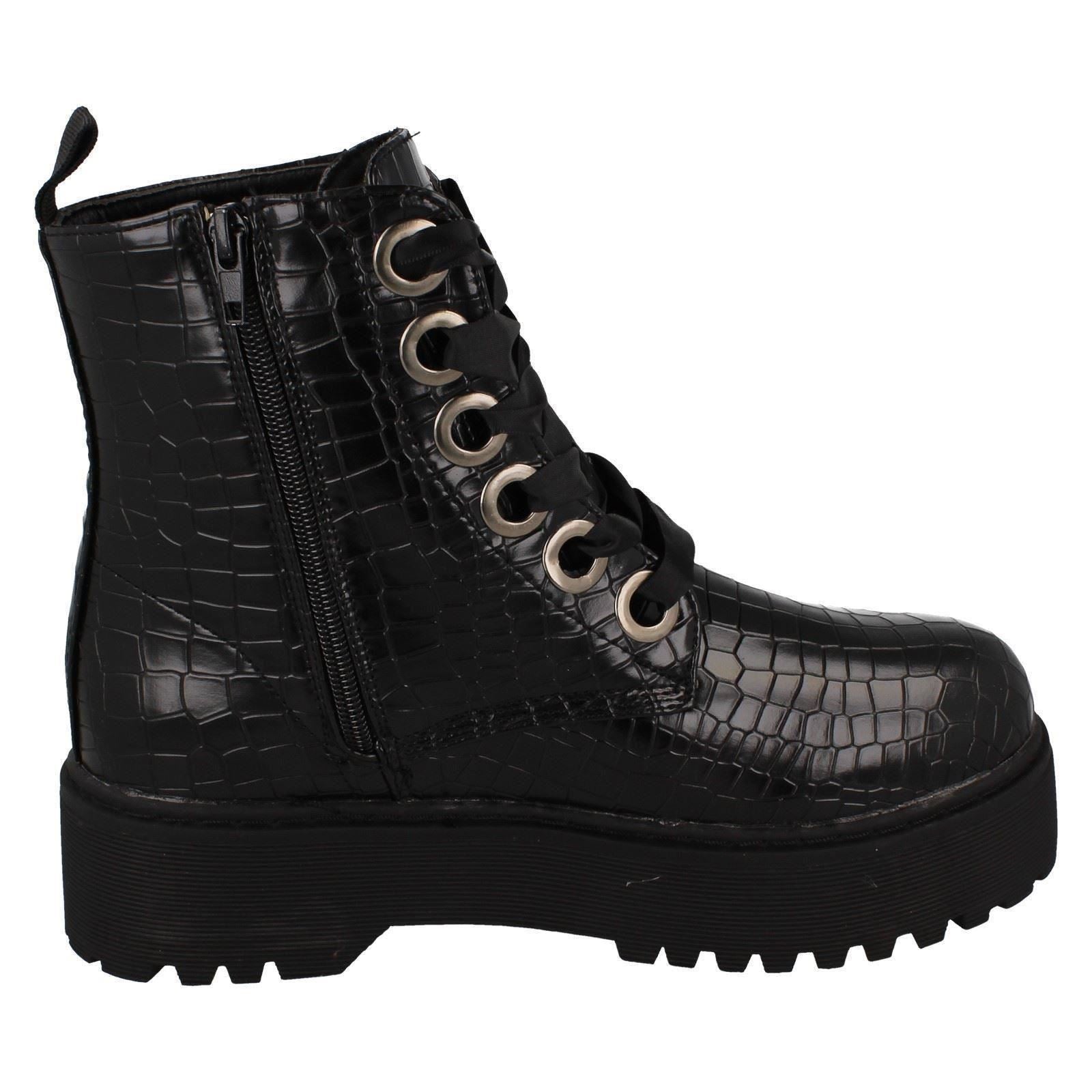 Spot On: Stride confidently in these rebellious platform ankle boots. Featuring a synthetic upper and robust lace-up fastening, these boots amplify your everyday look. Forget blending in; this boot demands attention and injects fierce attitude into every casual outing. Unleash your inner rock star and stomp into the season.