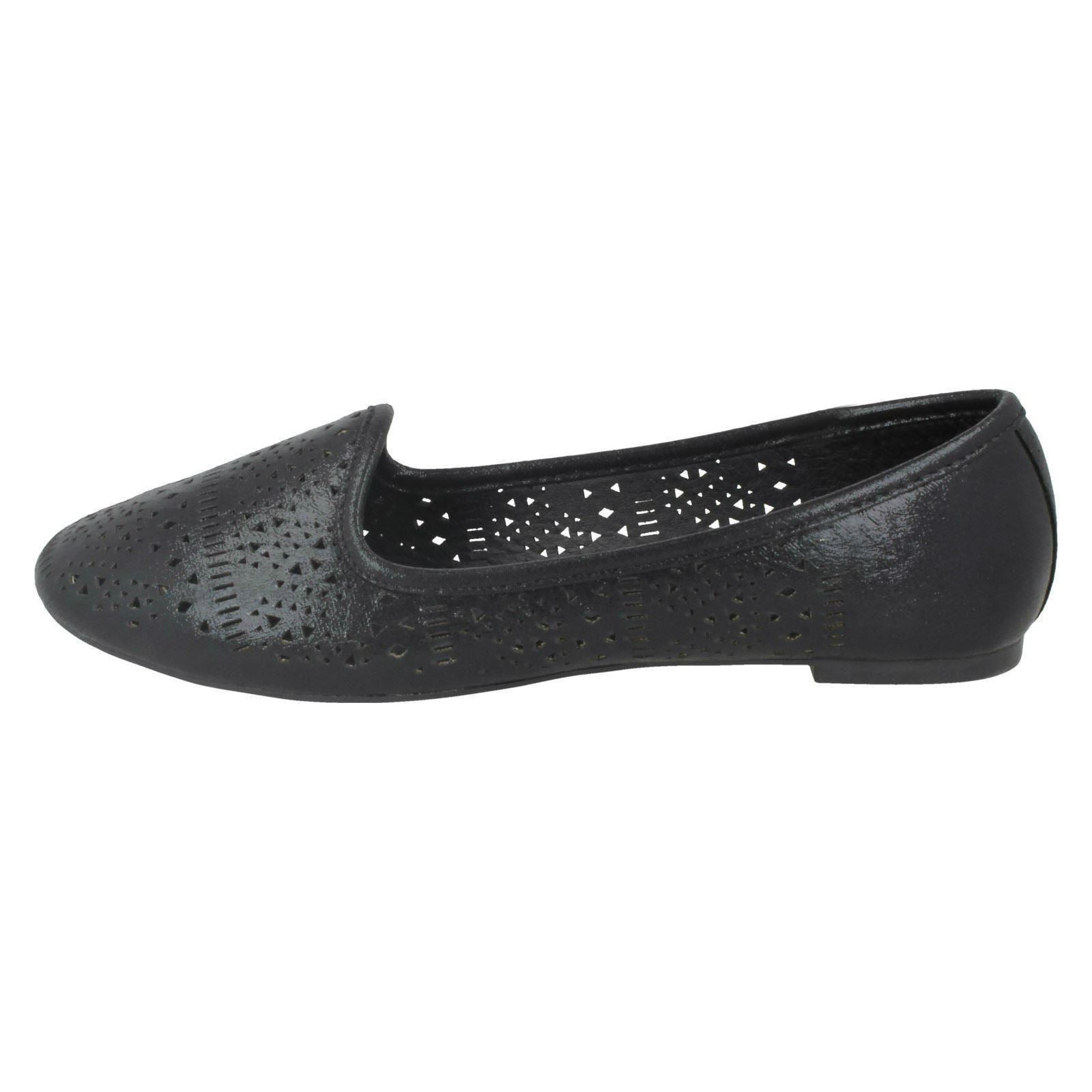 Ladies Spot On Punched Vamp Ballerinas