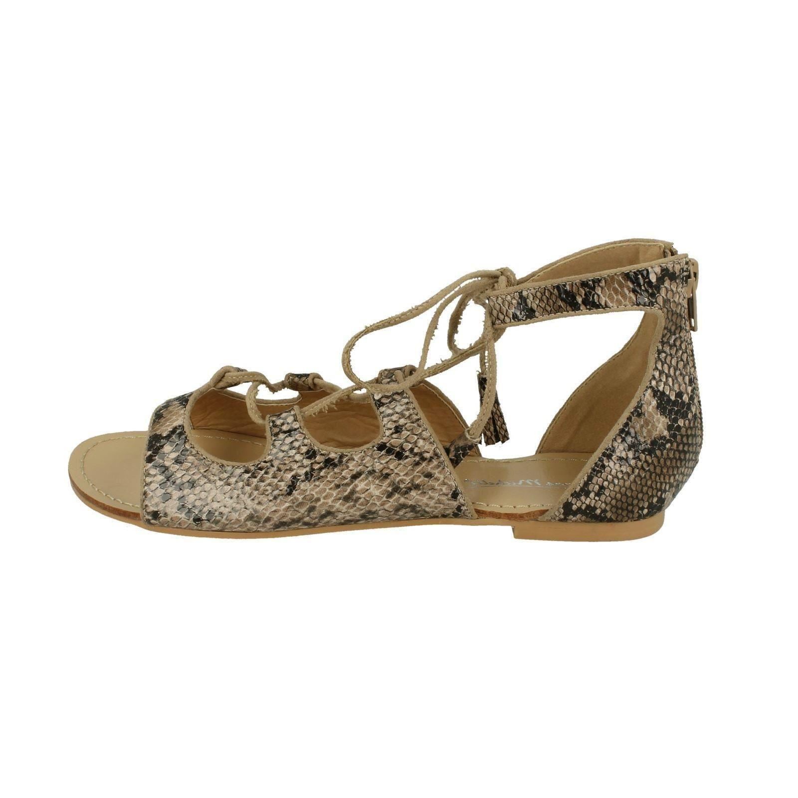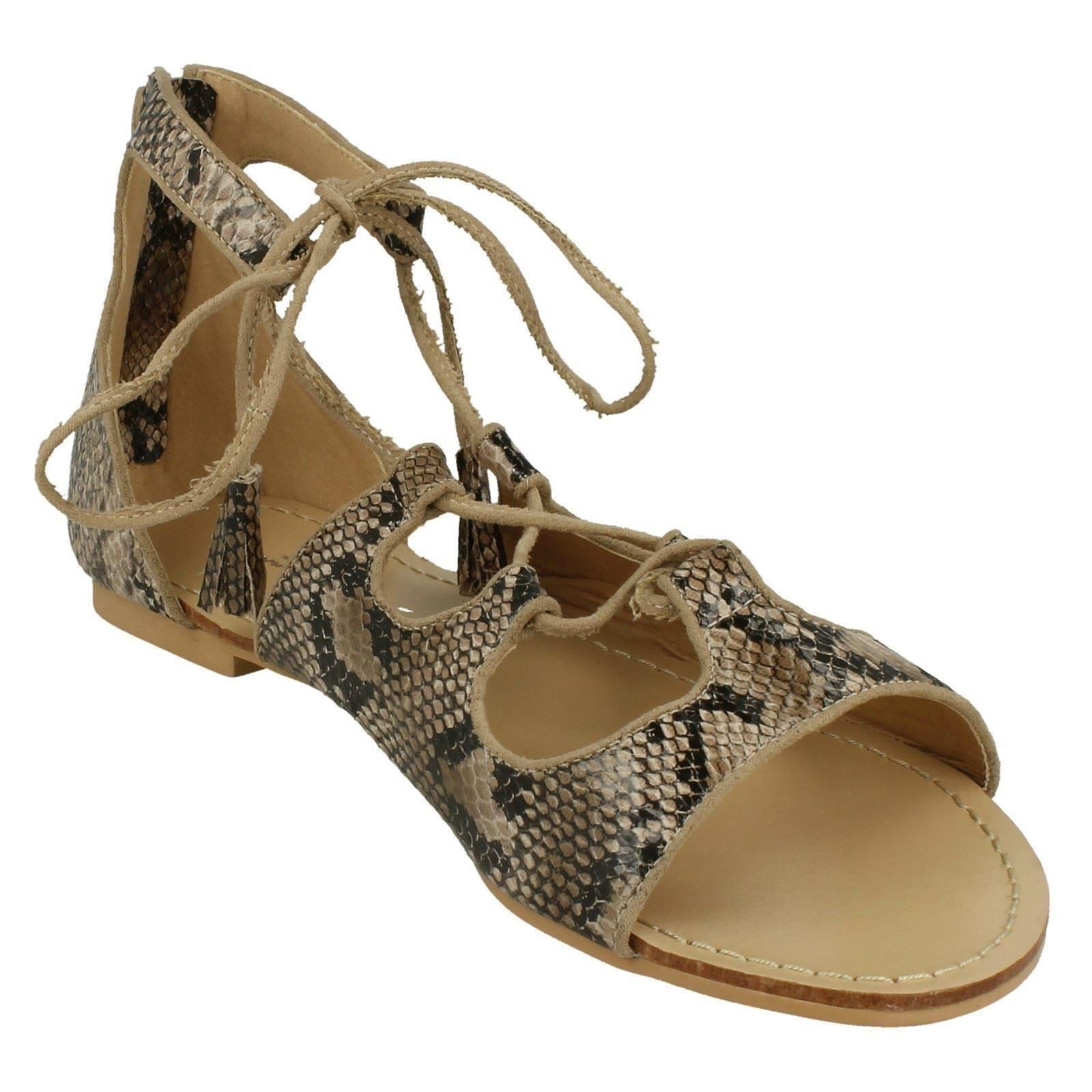Spot On Ladies Snake Print Flat Sandals are your new summer secret weapon. Ditch the boring footwear and unleash your inner fashion queen! These strappy lace-up sandals slither effortlessly from beach days to sun-soaked evenings. The snake print upper and synthetic sole/lining guarantee cool comfort while you conquer the heat. Command attention and feel utterly fabulous.