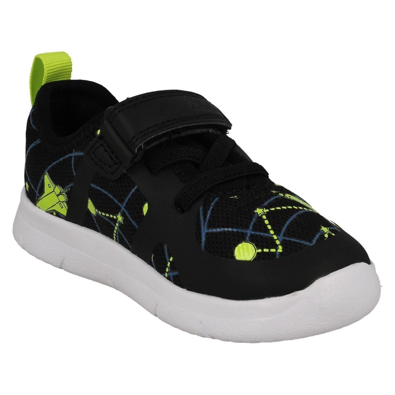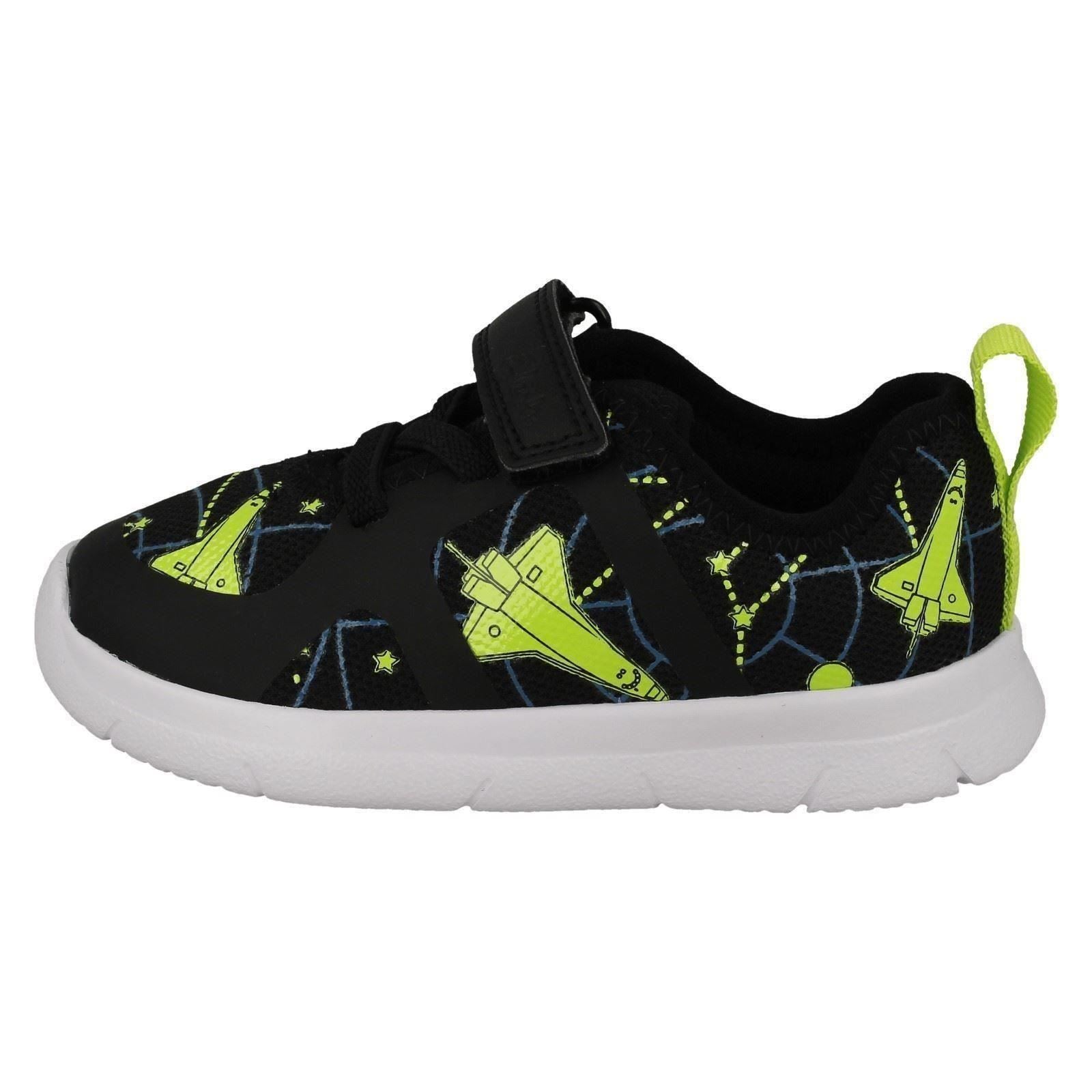 Clarks Boys Space Detailed Trainers Ath Cosmo launch little feet into action. Featuring a comfy textile and synthetic upper, textile lining, and tough synthetic sole, these trainers secure with hook and loop fastening. Watch him conquer the playground and explore new worlds in these durable, ready-for-anything kicks. Give him the freedom to play all day.
