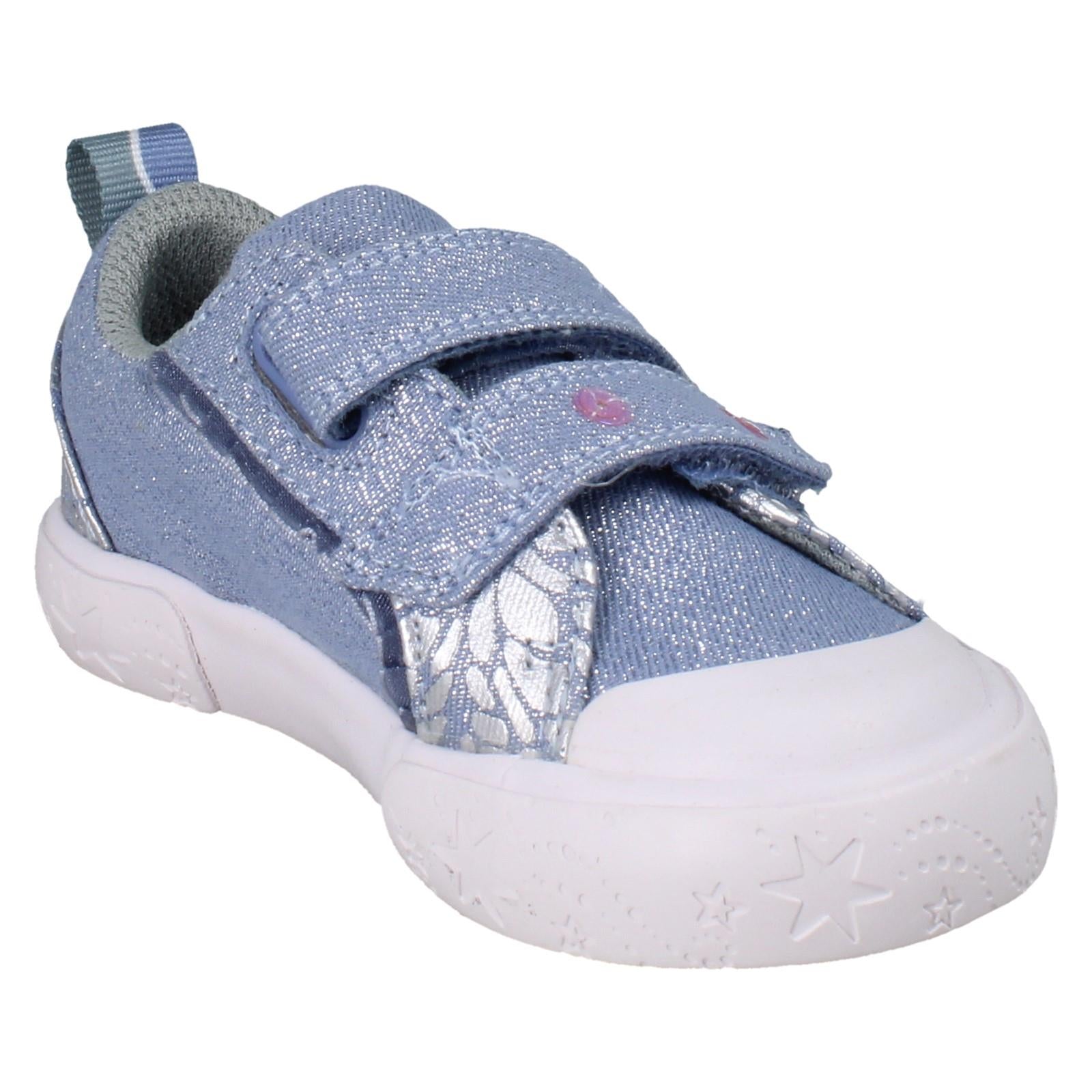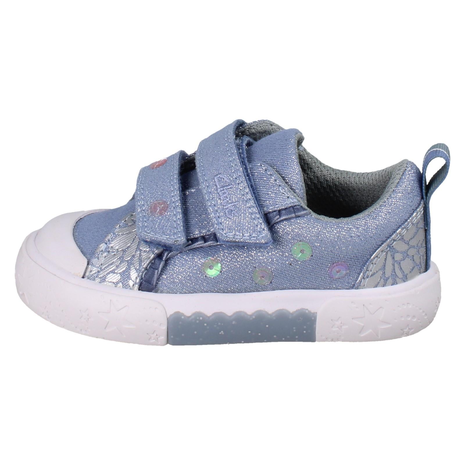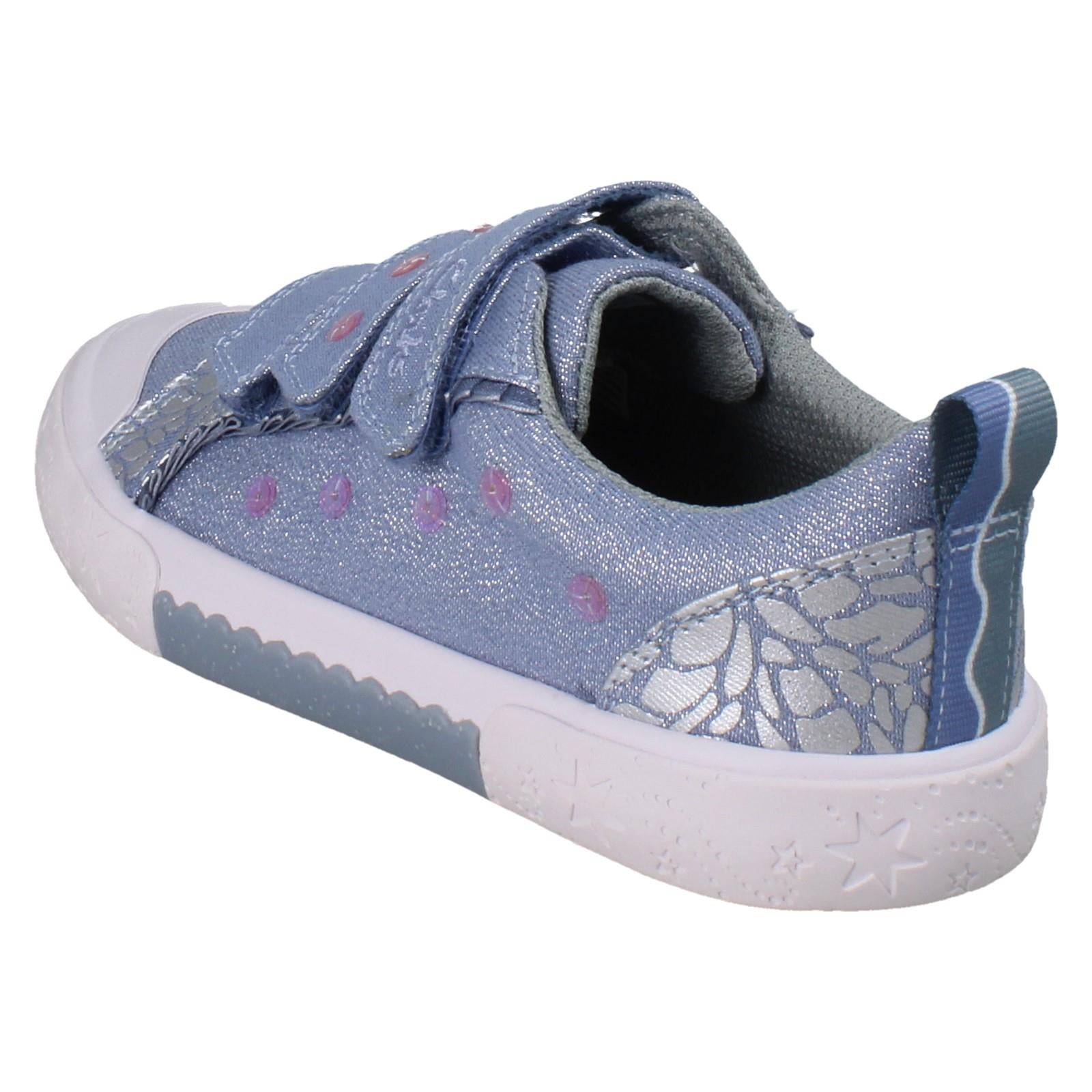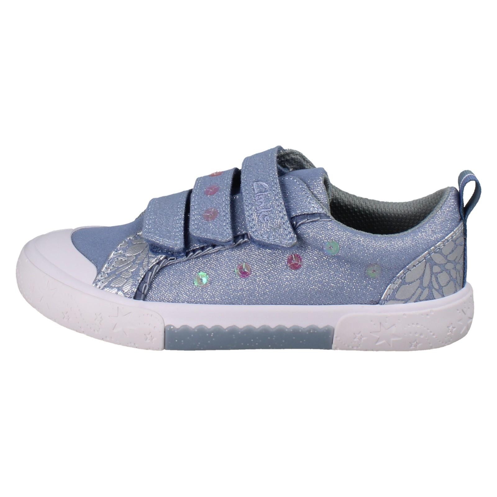 Step into summer with these Synthetic Upper Clarks Foxing Trim canvas shoes. Designed for girls who love to sparkle, they feature sequins and a glitter effect finish. The hook and loop fastening makes getting ready a breeze, while the textile sole ensures comfort for all-day adventures. Whether it's a park trip or a party, these durable canvases keep little feet looking bright and feeling light. Your go-to for effortless seasonal style.