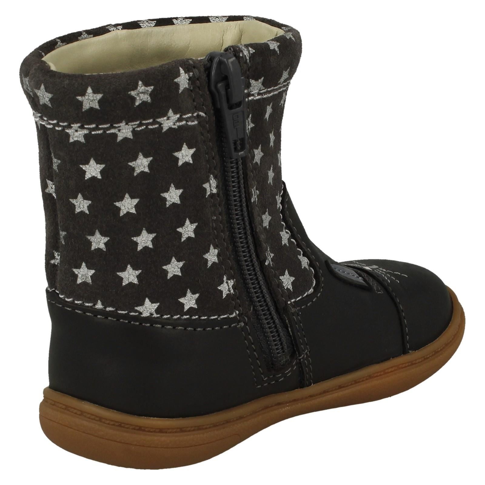 Clarks mid calf boots guarantee happy feet! Watch her hop into everyday adventures, secured by a zip fastening and cushioned by a soft textile lining. This Leather Upper boot has a durable synthetic sole and sweet rabbit detailing that sparks joy, making them the ideal casual footwear for busy little explorers.