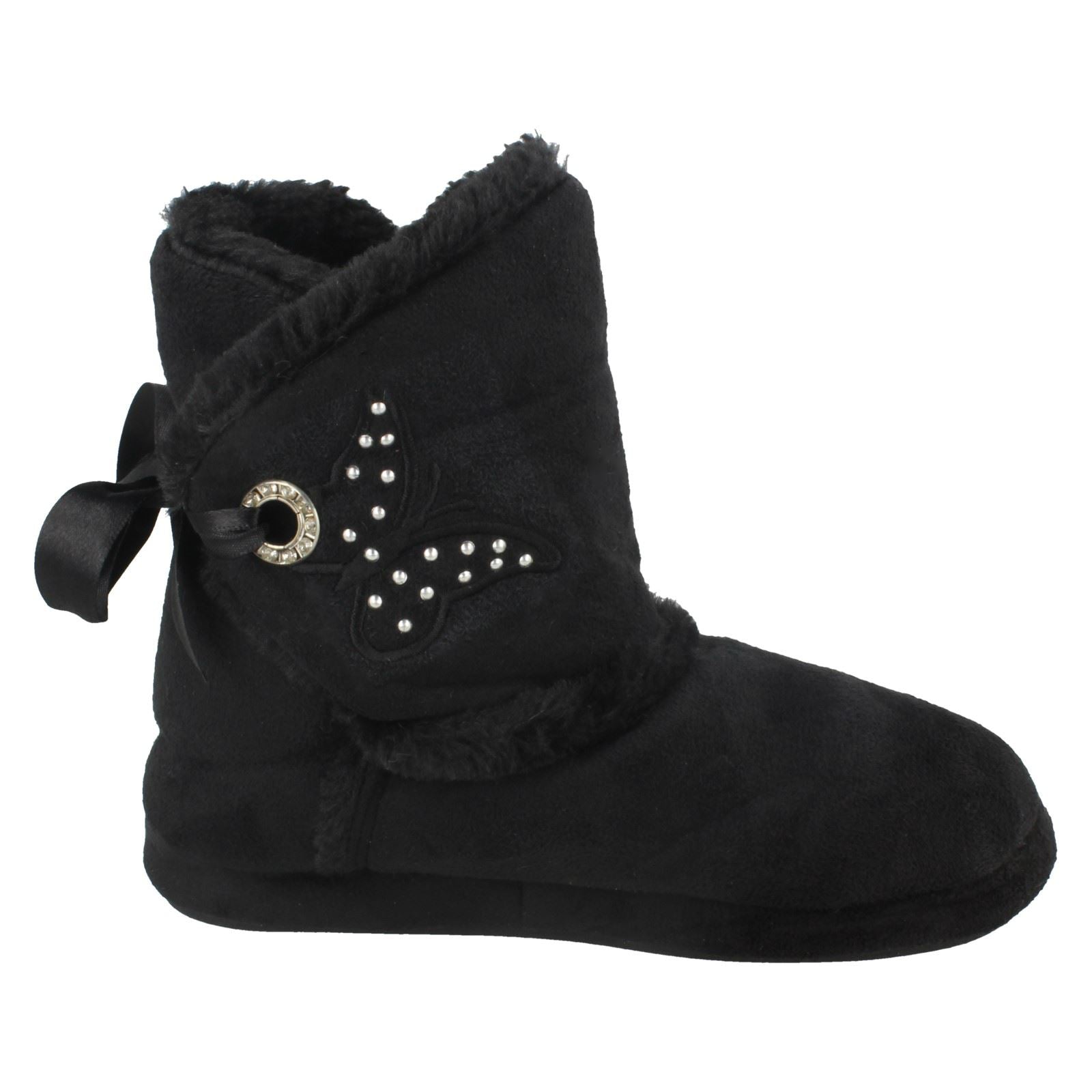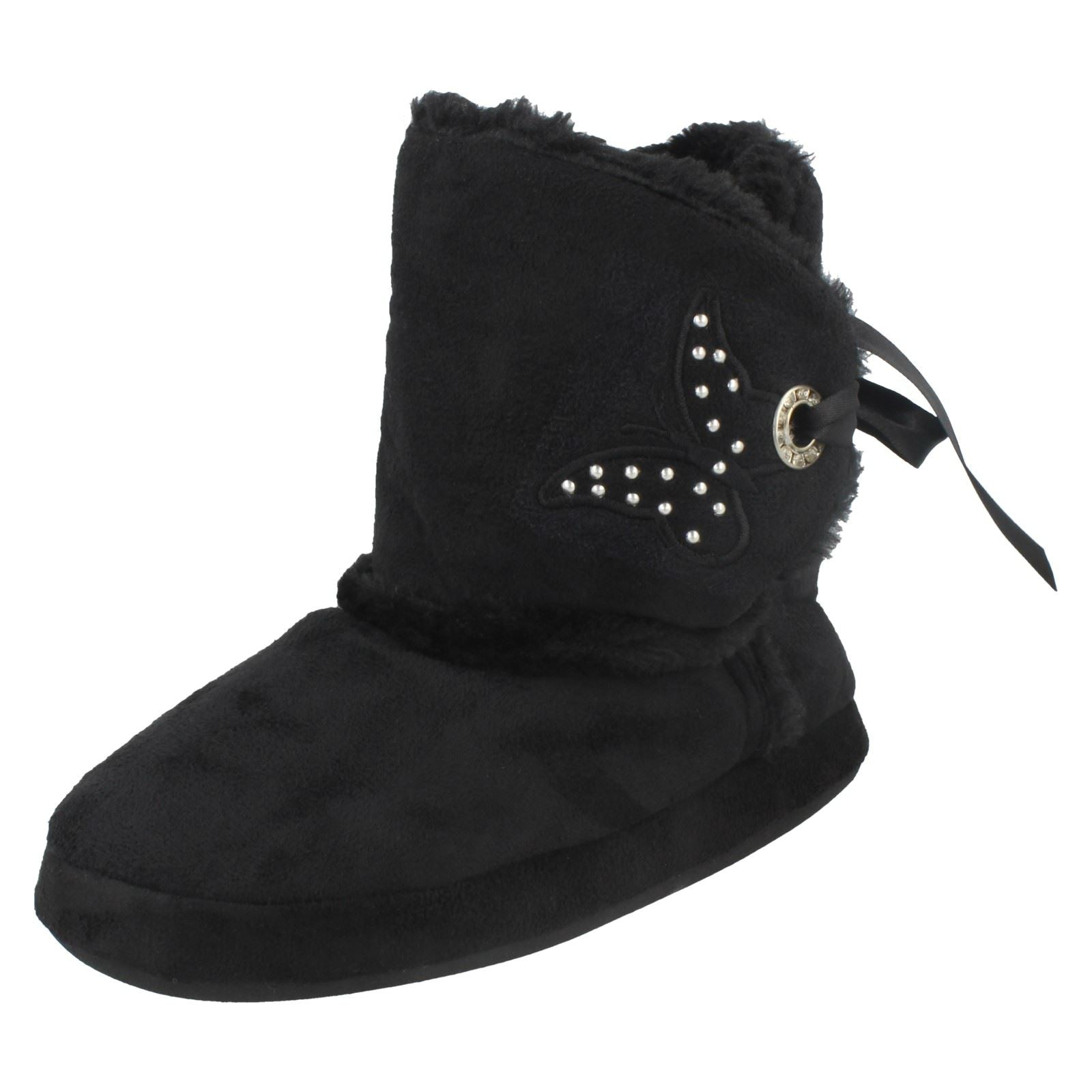 Spot On slippers let her drift into dreamland with supreme comfort. These adorable girls' slip-ons feature a plush microfibre upper and textile sole, wrapping little feet in cosiness after a long day of play. Watch her flutter around the house as the sweet butterfly motif and ribbon detail spark joy. Perfect for cosy evenings, just slide them on and let the relaxation commence!