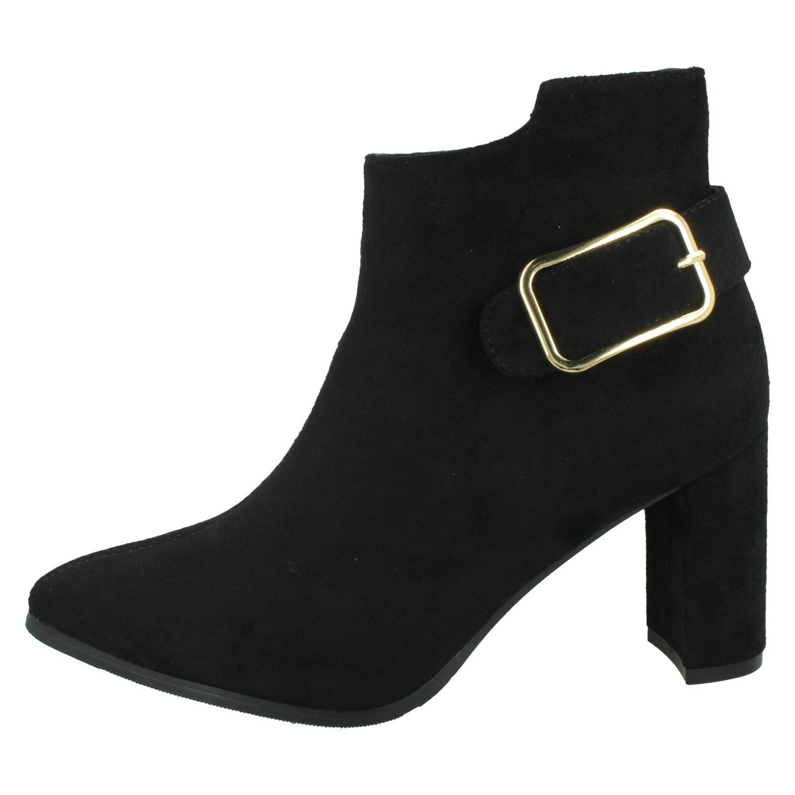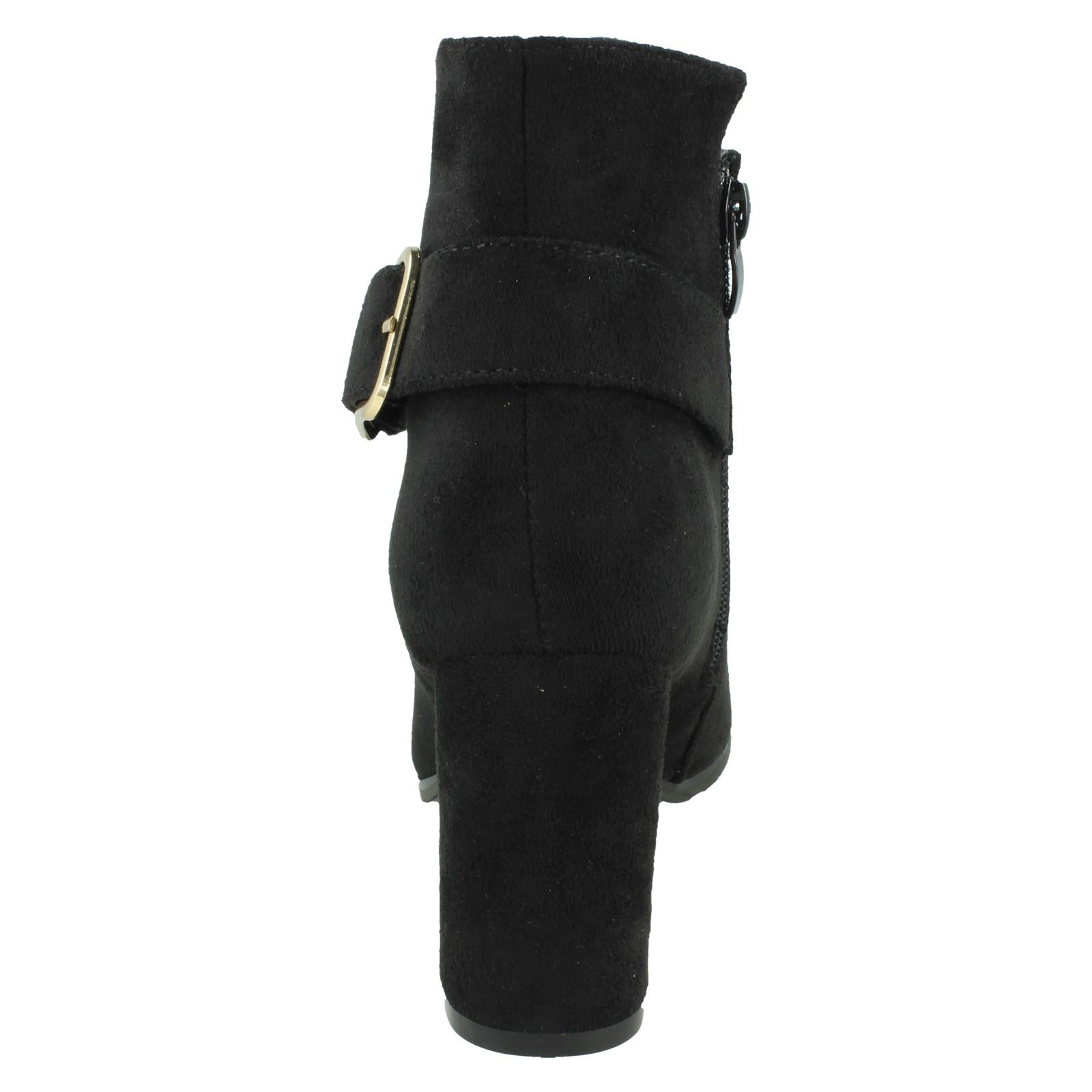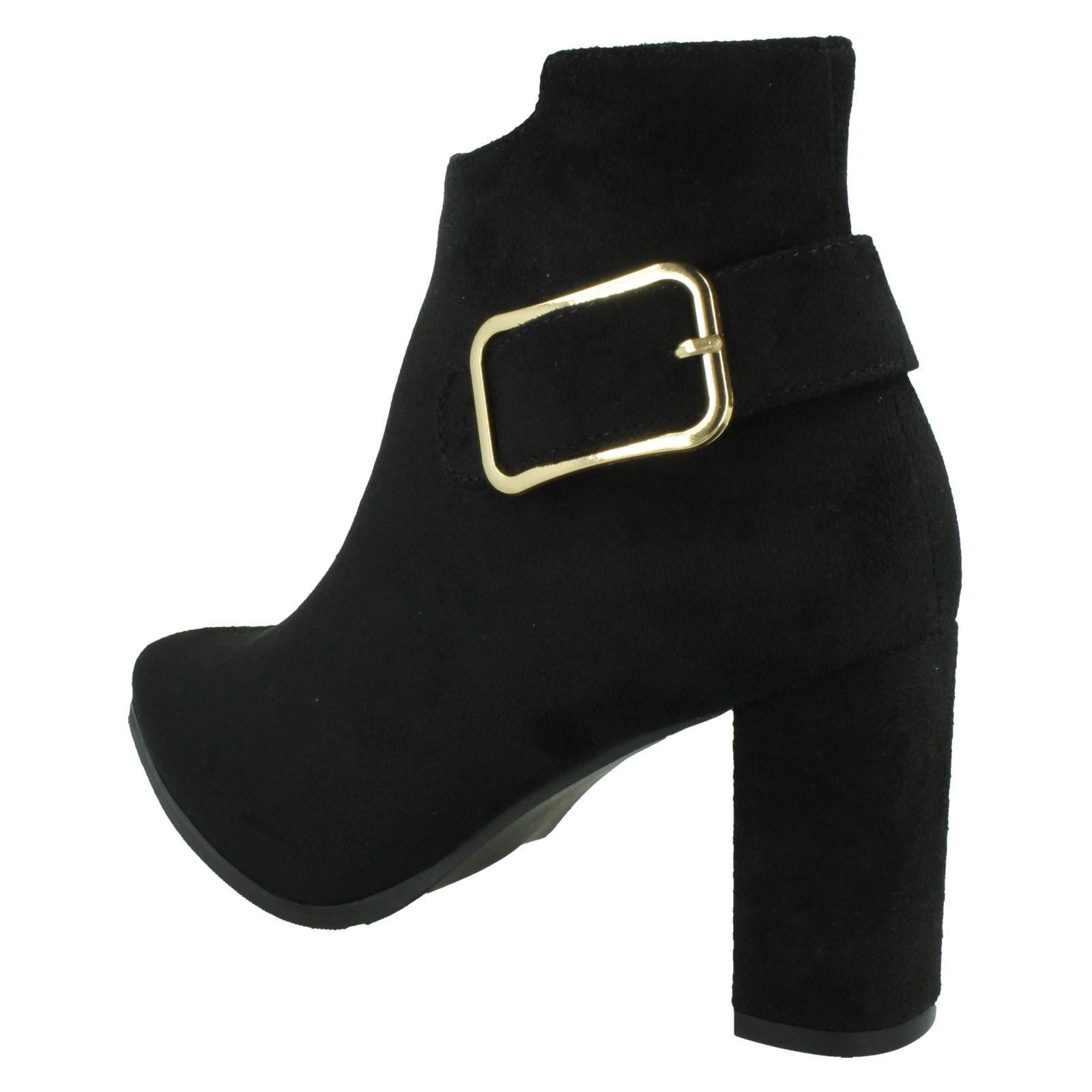 Ladies High Heel Ankle Boots with Inside Zip and Side Buckle F51205