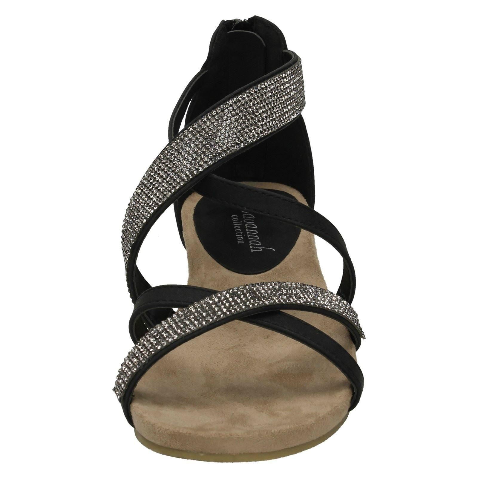 Ladies Savannah Low Wedge Diamante X Strap Sandals