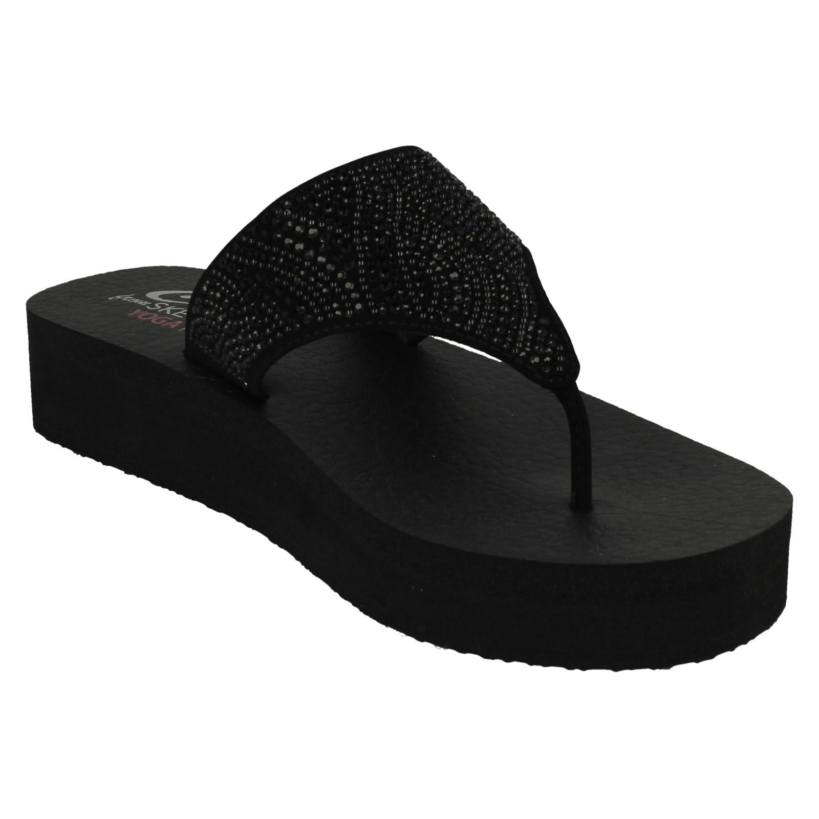 Ladies Skechers Toe Post Platform Wedge Sandals Stone Candy 31614