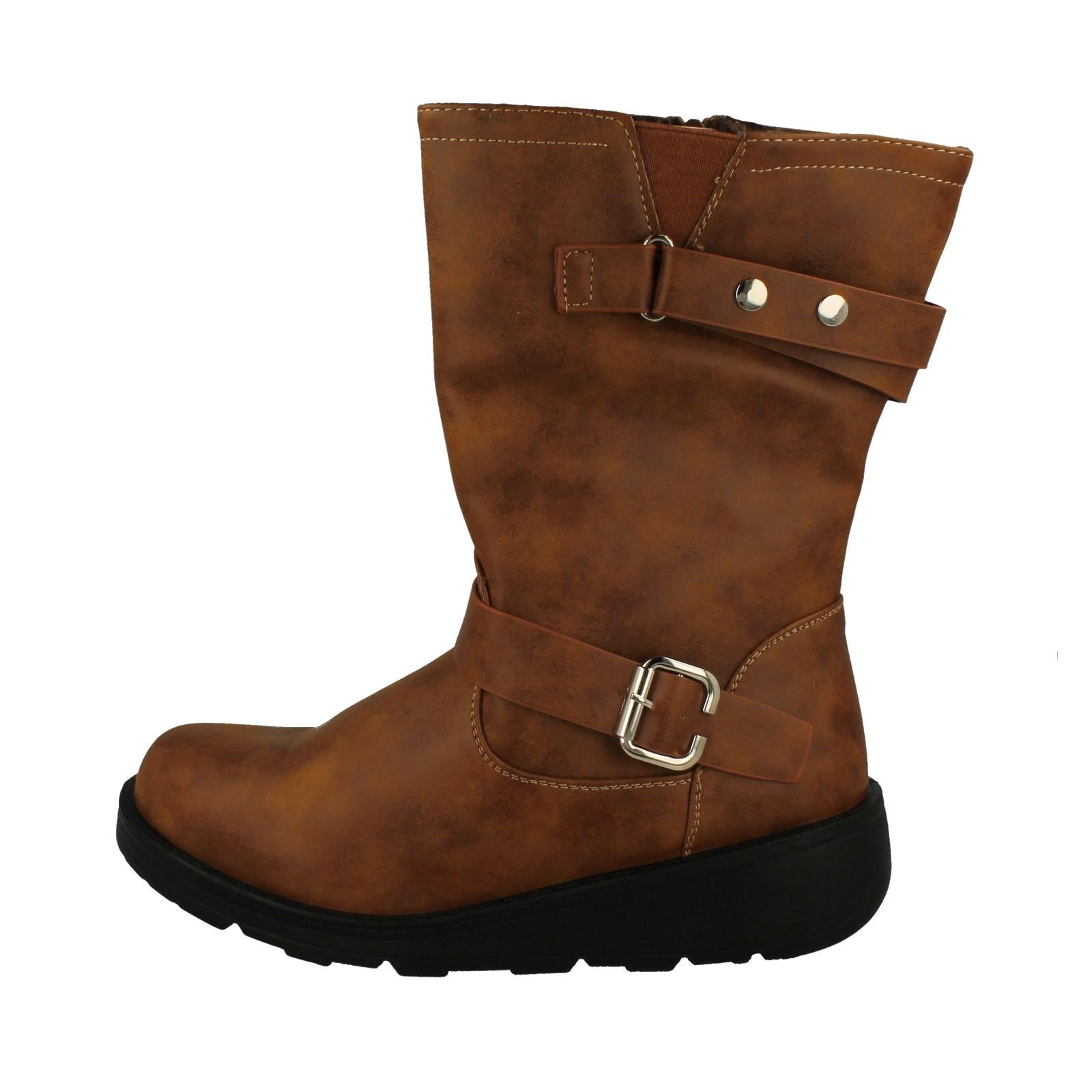 Ladies Spot On Buckle Detailed Wide Fit Mid-Calf Boots F51200