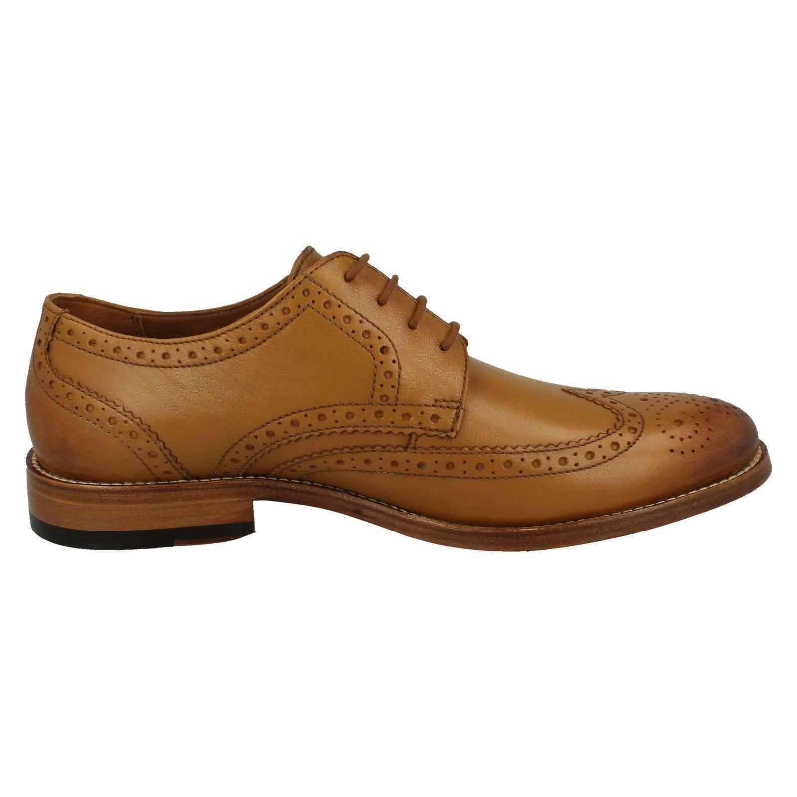 Clarks James Wing formal brogue shoes: Step into polished confidence. These detailed leather upper shoes, fully lined for comfort, anchor your formal or work wear look with timeless sophistication. Lace up and command the room. The durable leather and synthetic sole ensures every stride is sure-footed, propelling you from evening events to office successes. Own your impact.